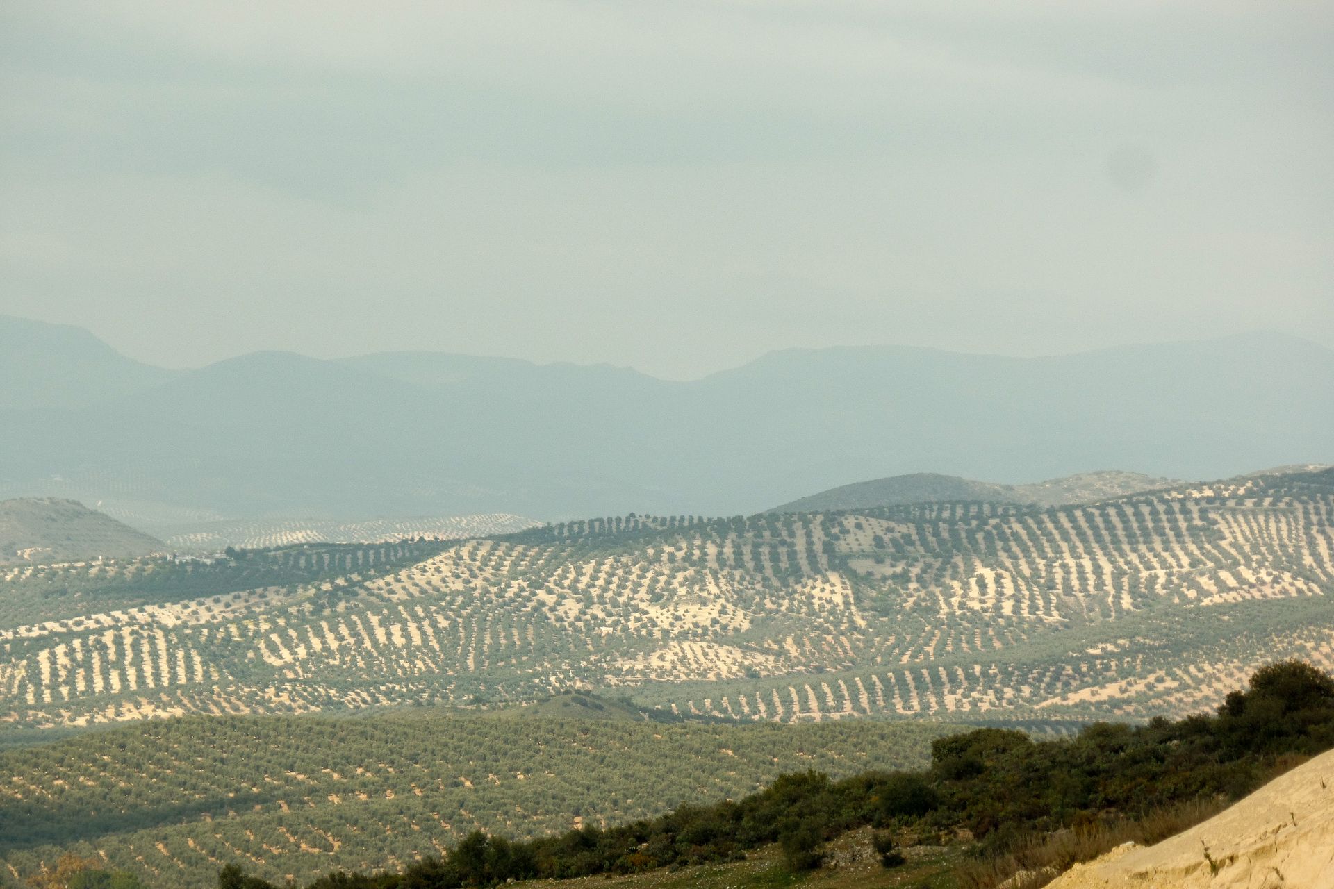 Ab Antequera führt die Route tagelang durch Olivenhaine. Die Ausblicke von den Hügeln lassen uns klein werden, angesichts der Millionen Olivenbäume, die in Reih und Glied, einem immer gleichen Muster folgend, das Landschaftsbild prägen.
