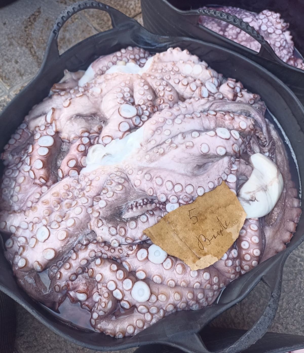 Nach der Brücke wenden wir uns erstmals nach rechts, weg vom Bahnhof. Der Weg aus der Stadt heraus führt zwangsläufig bergauf und wird immer steiler. Wir passieren viele Bars und Restaurants und überall stehen große, gasbetriebene Kochtöpfe vor der Tür, und Wannen, die mit Pulpos schier überquellen. An den ersten beiden Wochenenden im September ist Pulpo-Fest in Galizien. Schade, dass die Pulpos nicht vor zwei Uhr fertig gegart sind.