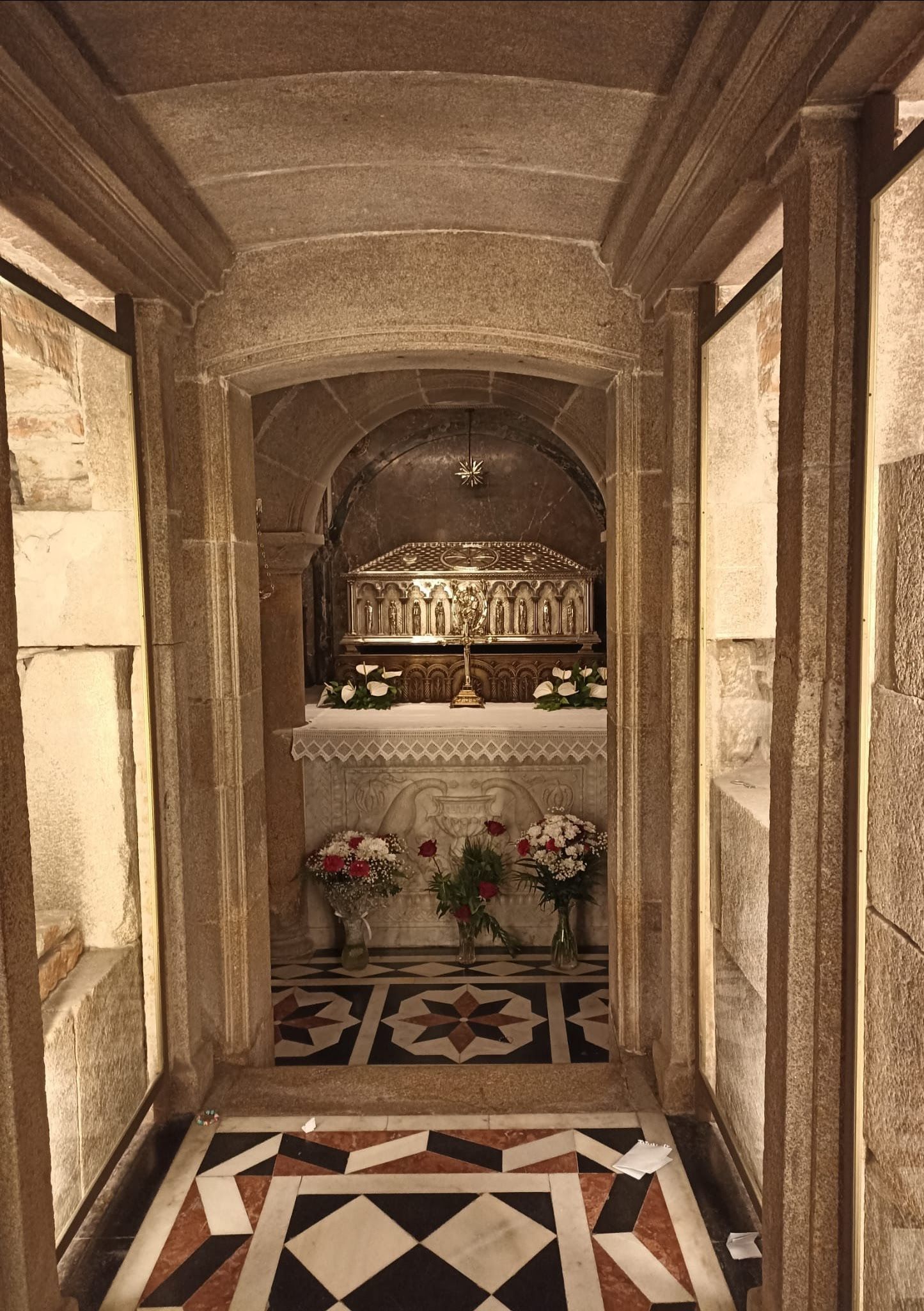 Wir besichtigen am Nachmittag die Kathedrale inklusive der Gruft des Hl. Jakobus, in der Uschi verbotenerweise ein Foto macht, quasi als Entschädigung für den fehlenden Eintrag im Credencial. Die Messe am Abend besuchen wir nicht, da man sich hierfür stundenlang anstellen muss. Die Schlange der wartenden Pilger reicht schon einmal um die Kathedrale herum. Dafür lassen wir den Nachmittag und den sehr langen Abend bei einer ausgiebigen Besichtigungstour durch Santiago ausklingen.