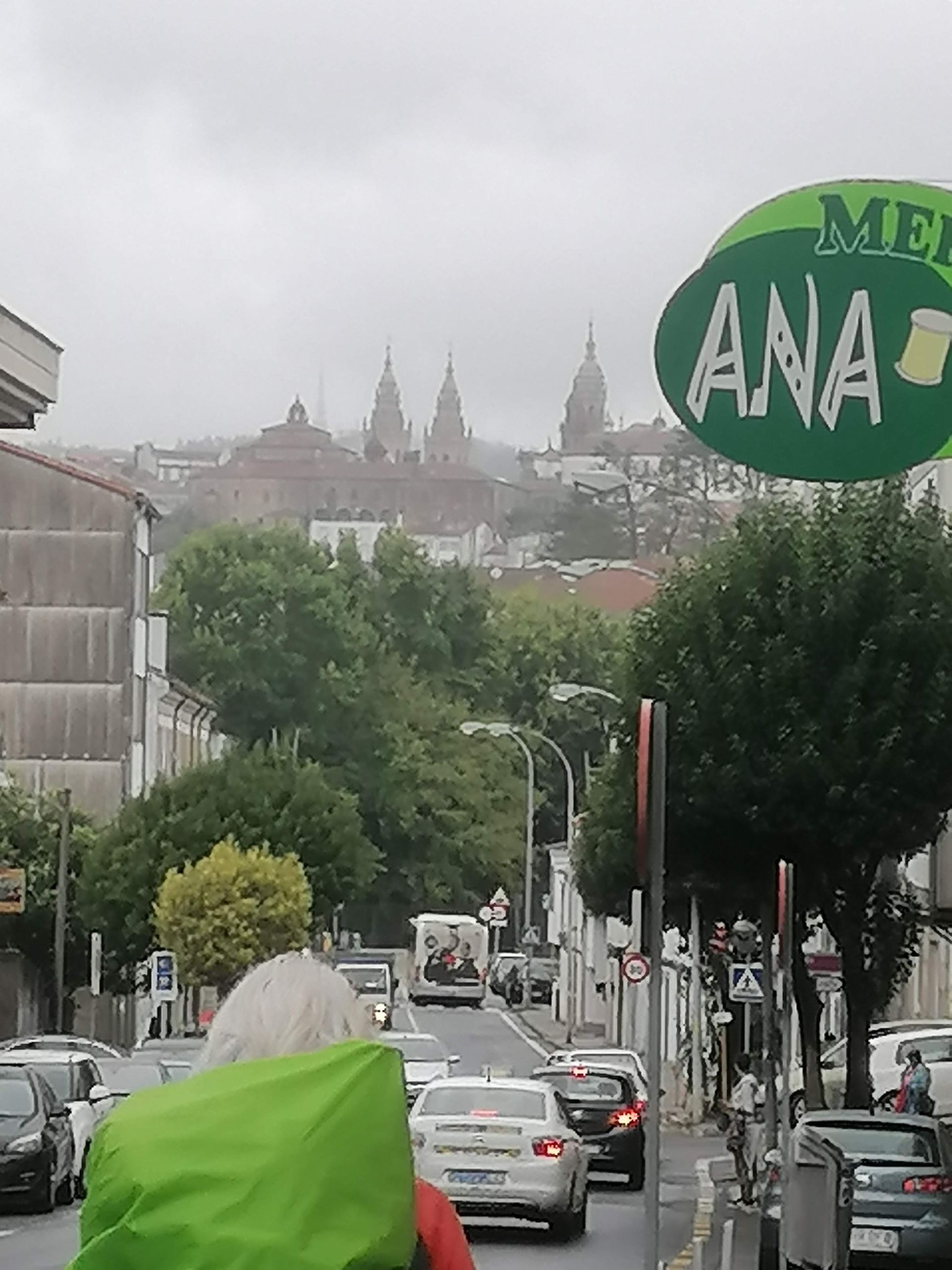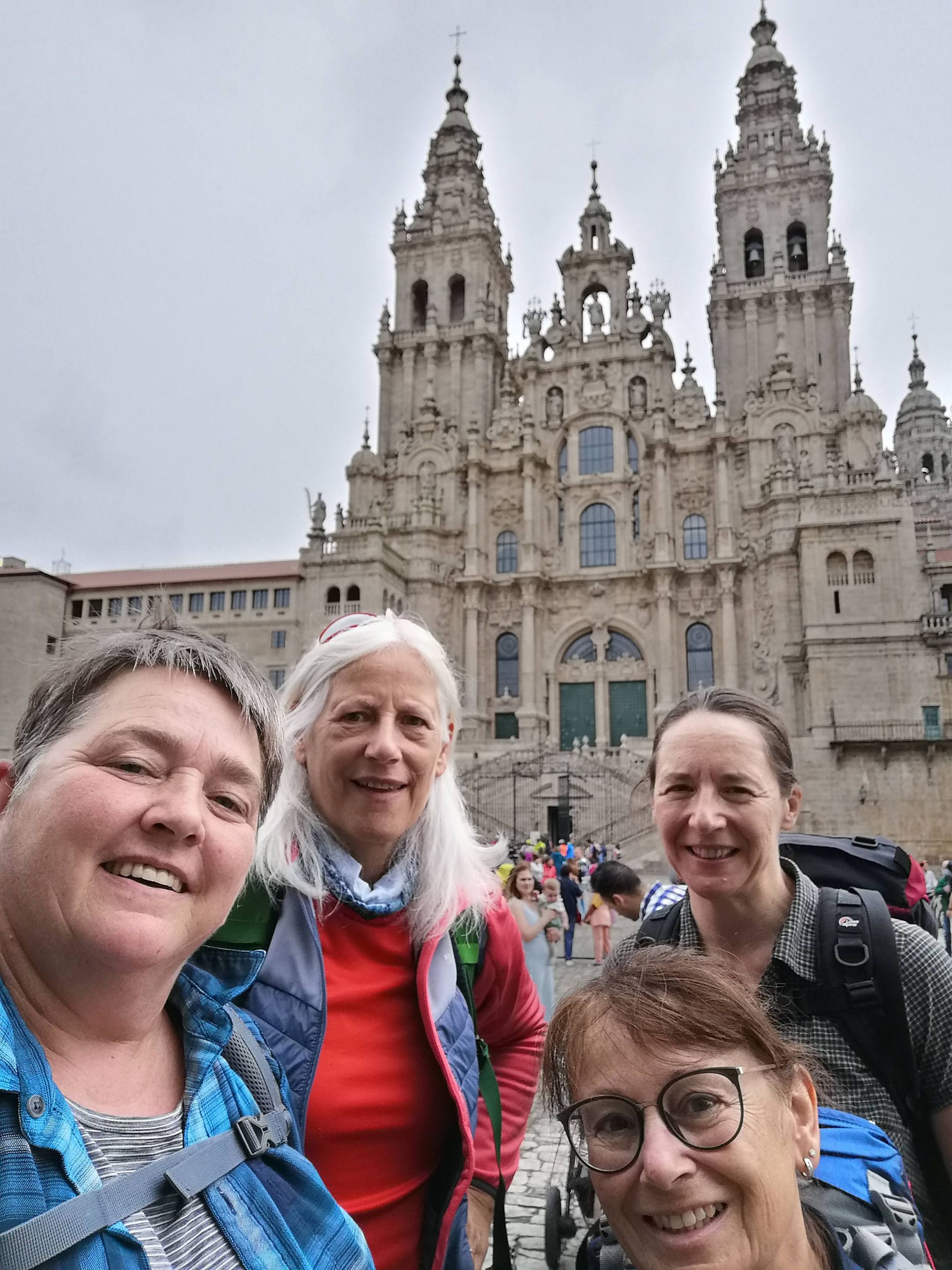 Santiago zieht uns magisch an. Mir scheint, wir kommen heute schneller vorwärts als in den letzten Tagen. Keine drei Stunden nach unserem Aufbruch erhaschen wir den ersten Blick auf die Kathedrale. Wir laufen auf Kopfsteinpflaster über den Camiño Real, den königlichen Weg, in die Stadt hinunter, da taucht sie auf dem gegenüberliegenden Hügel majestätisch aus dem Dunst auf. Durch verwinkelte Gassen wandern wir unserem Ziel entgegen. Plötzlich sind wir umgeben von Pilgern aus aller Herren Länder. Und alle scheinen das gleiche Leuchten im Gesicht zu haben.