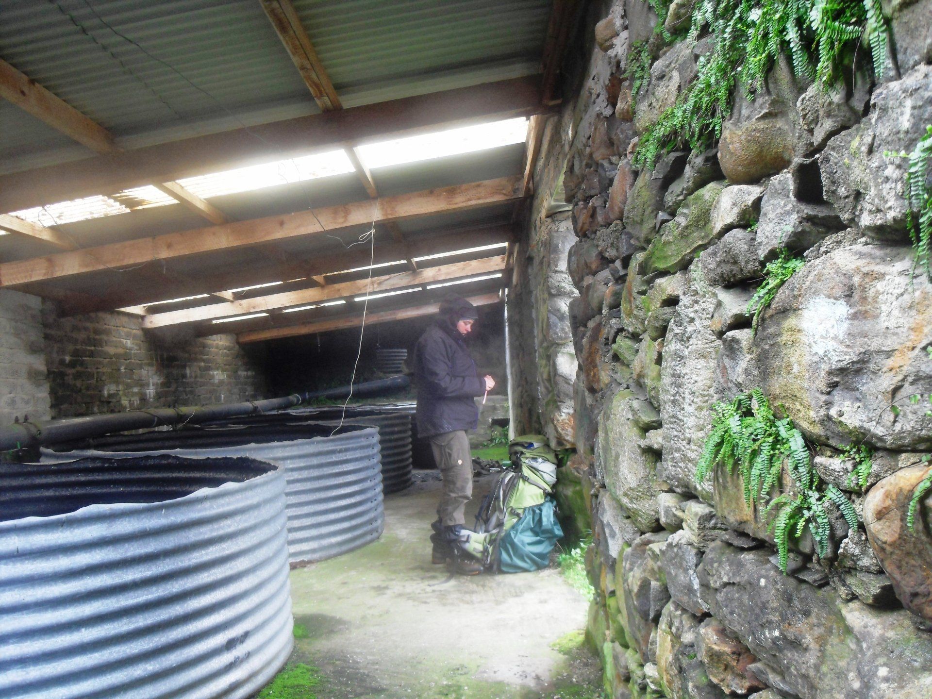 In der Nacht hatten der Franzose und ich noch für Aufruhr gesorgt. Wir hatten uns am Abend bei Kerzenschein recht angeregt unterhalten und waren auf die Idee gekommen den offenen Kamin einzuheizen. Ich hatte draußen Totholz gesammelt, mein Zimmerkollege hatte von den Nachbarn frisches Holz bekommen. Dieses brannte aber nicht und wir hatten es zum Trocknen rund ums Feuer gestellt. In der Nacht muss es sich wohl entzündet haben und das Feuer im Kamin brannte lichterloh. Dadurch wurden die Steine so heiß, dass einige mit lautem Knall zersprangen. Schlagartig waren alle Übernachtungsgäste wach und wir kippten Wasser ins Feuer. Danach hielten wir alle zusammen in unserem Schlafraum, in der Unterwäsche, Feuerwache und ließen die Whiskyflasche reihum gehen. Das hätte ich am Nachmittag an der Sourlies Bothy so auch schon haben können!