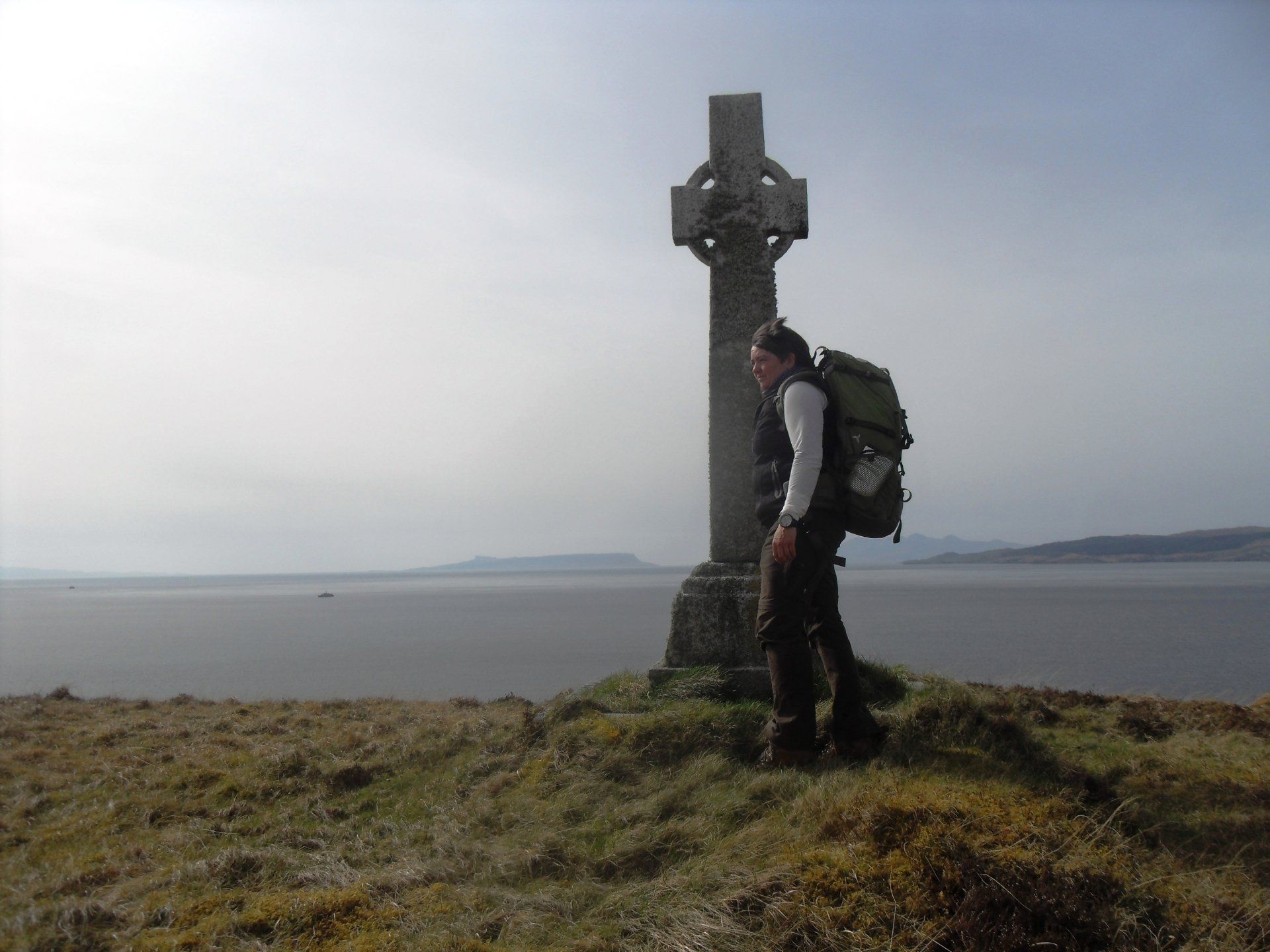 Bei meiner Abkürzung kämpfte ich mich also Hügel rauf und runter, sprang über Bogholes oder auch mal hinein, wurde nass und schlammig bis an die Knie, entdeckte ein keltisches Kreuz, das hoch über einer Steilküste stand, traf einen Hirsch, der mich genauso wenig gesehen hatte, wie ich ihn und der genauso erschrocken war wie ich, als wir voreinander standen, und der mir dann sogar seinen letzten Geweih-Ast vor die Füße warf, und ich brauchte für meine Abkürzung kaum eine halbe Stunde länger als ich bei der regulären Wegführung die Straße entlang gebraucht hätte.
