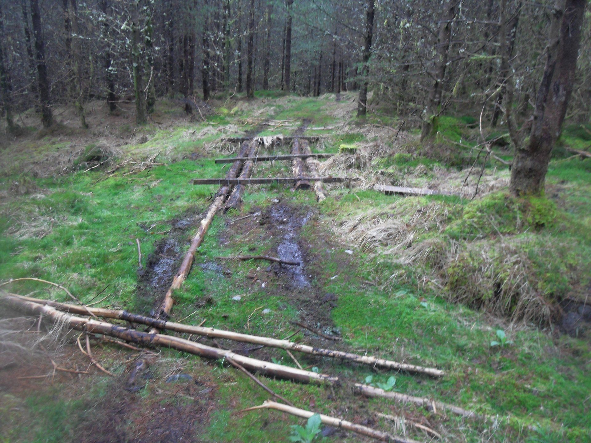 So schnell ich konnte, brachte ich den Abstieg hinter mich. Dabei stieß ich auf zwei weitere Wanderer, die zur Sourlies Bothy unterwegs waren. Sie waren am Vormittag an der A´Chuil Bothy im Glen Dessary aufgebrochen - meinem Ziel für heute - und etwa so lange unterwegs wie ich auch. Das machte mir nicht gerade viel Mut. Allerdings schienen die beiden sehr langsam unterwegs zu sein. Der Pfad war jetzt wieder deutlicher zu erkennen und kurz vor 19 Uhr hatte ich die Wahl zwischen dem Pfad durch den Wald und der Fahrspur über Wiesen. Ich entschied mich für die Wiesen und erhöhte mein Marschtempo. Schlitternd und rutschend bewältigte ich einen kleinen Abhang, dabei passte ich nicht mehr so auf meine Schritte auf, rutschte aus und viel rücklings in ein Sumpfloch. Ich verschwand quasi ebenerdig im Loch. Ich muss ausgesehen haben, wie festgefahren und war froh, dass mich niemand so sehen konnte. Ich konnte weder aufstehen, noch mich auf den Bauch wälzen. Ich musste den Rucksack abschnallen, ihn ausziehen und konnte mich dann seitlich wegdrehen. Nur mit Mühe und Not bekam ich den Rucksack aus dem Schlamm. In etwas gemäßigterem Tempo setzte ich meinen Weg fort.