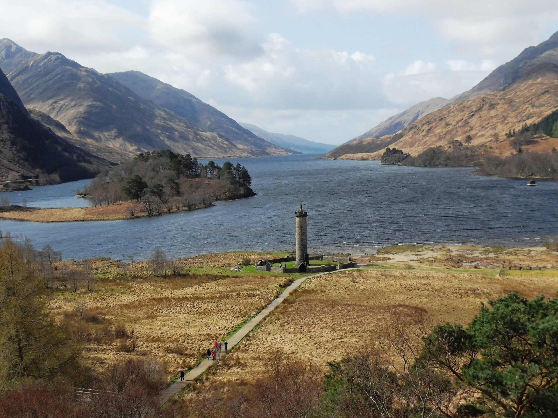 Gegen Mittag kam ich am Brocket-Monument vorbei, das weithin sichtbar auf einem Hügel thront. Ich las später, dass dieses Monument nach der Vertreibung der Seven Men of Knoydart von Lord Brocket errichtet worden war. Die Seven Men of Knoydart hatten nicht genutztes Land für sich in Anspruch genommen, Getreide angebaut und Whisky gebraut. Wohl in der Destille, in der ich gefrühstückt hatte. Lange war dies vom rechtmäßigen Besitzer unbemerkt geblieben. Doch dann ließ er sie durch Gerichtsbeschluss vertreiben. Überhaupt hat die ganze Gegend dort eine wechselhafte Geschichte von Vertreibung, Verschleppung und sinnloser Abholzung der caledonischen Wälder.