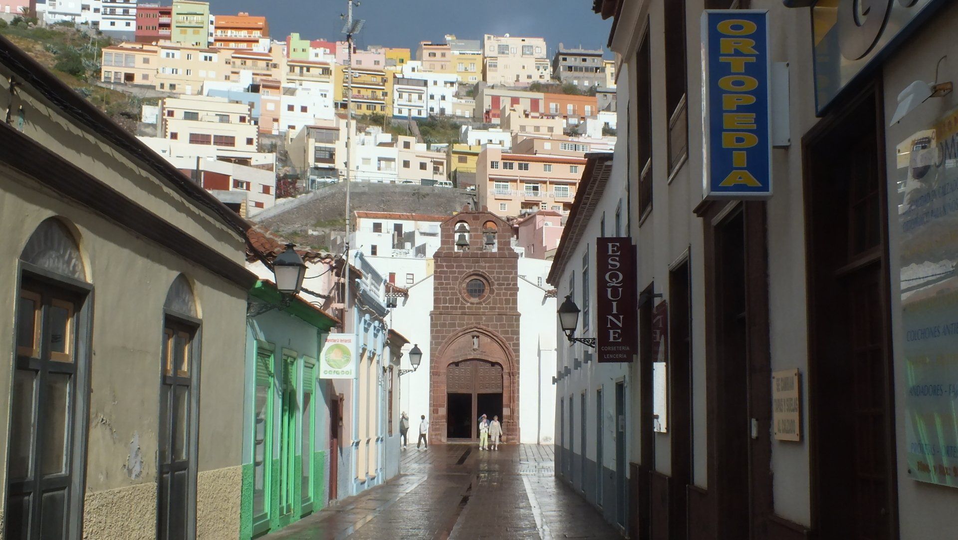Nun fahren wir also nach Las Rosas in der Nähe von Agulo, welches als das schönste Dorf La Gomeras gilt. Wir sollen uns mit José Carlos treffen, der mir ein Ferienhäuschen vermietet hat. Ich habe gestern mit ihm telefoniert und Ort und Uhrzeit für unser Treffen ausgemacht. Wir sind bereits zwei Stunden früher in Agulo und nutzen die Zeit, um uns das Dorf genauer anzusehen. Agulo besteht aus drei Ortsteilen, jeweils mit eigenem Zentrum: La Montañeta, Las Casas und El Charco. Die Besonderheit des Ortes ist der Sombre del Risco de La Zula - der Schatten, den der Berg Risco de La Zula den ganzen Winter über auf La Montañeta wirft. Erst am 3. Februar jeden Jahres trifft wieder ein Sonnenstrahl auf den Ort.