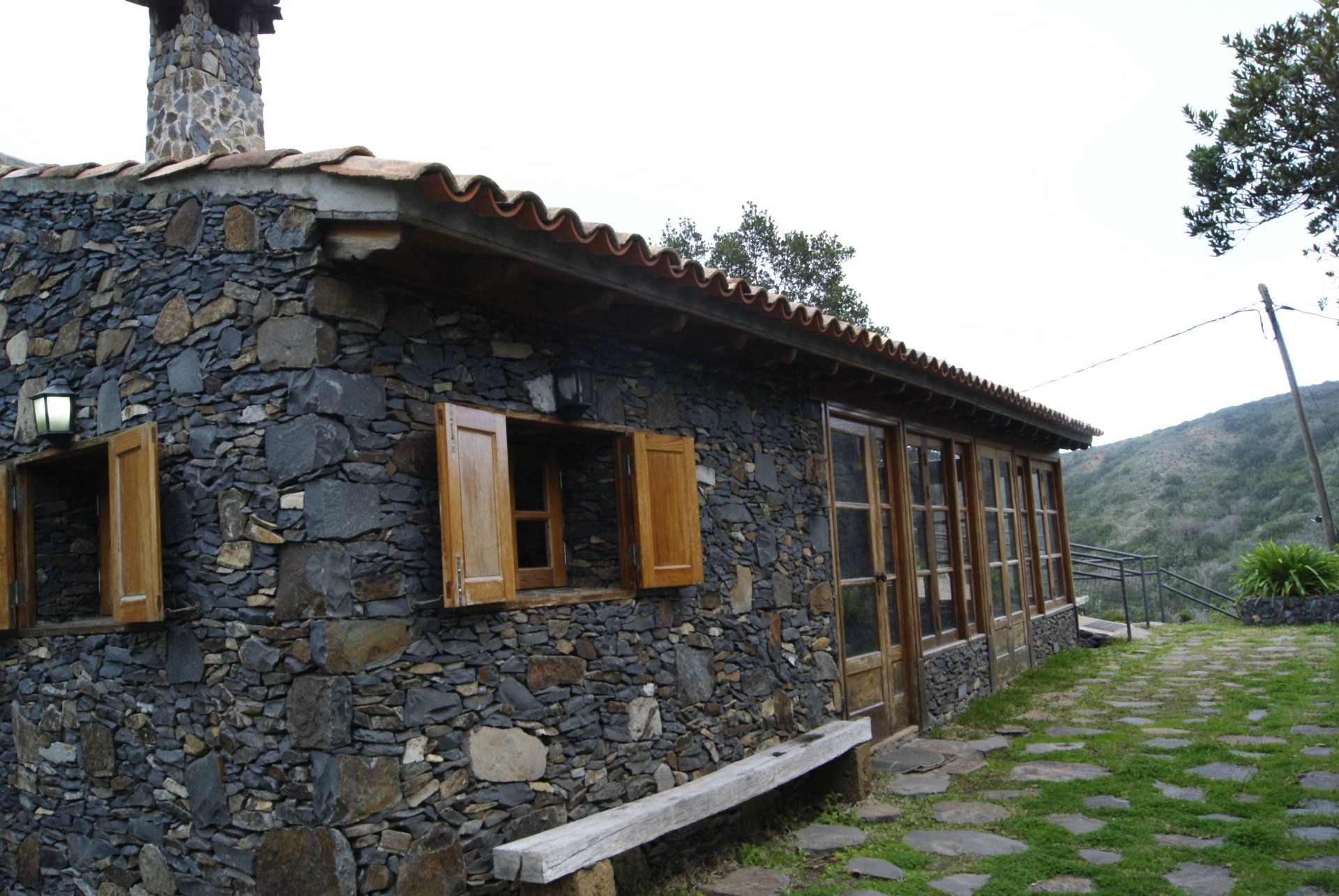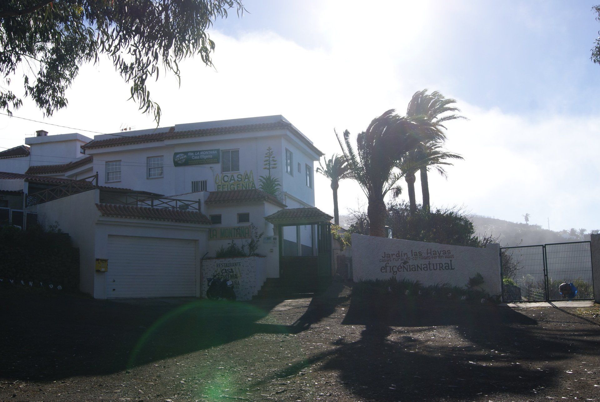 Eine Stunde später treffe ich kurz vor Las Hayas auf eine große Ziege, die mir den Weg versperrt. Was ich auch versuche, das Vieh lässt mich nicht vorbei, sondern senkt angriffslustig den Kopf und präsentiert ihre riesigen Hörner. Erst als ich ihr einen meiner Trekkingstöcke auf ihr Hinterteil schlage, verzieht sie sich. Der Wind nähert sich inzwischen deutlich der Grenze zum Sturm und ich weiß jetzt, wie es sich "in den Wolken" anfühlt. Ich suche Zuflucht in der erstbesten Kneipe und registriere im Hineingehen, dass man hier auch FeWos vermietet. Als ich an der Hauswand in großen Lettern lese, wie das Restaurant heißt, klingelt´s bei mir und ich stelle erstaunt fest, dass ich mich im traditionsträchtigsten Haus Gomeras befinde. Casa Efigenia wird in nahezu allen Reiseführern erwähnt. Beim Eintreten empfängt mich zu allererst ein Blumenmeer. Dann entdecke ich Doña Efigenia an einem Tisch im Hintergrund. Die alte Dame steht dort auf ihren Stock gestützt und redet mit brüchiger Stimme auf zwei Frauen ein, die etwas verständnislos aus der Wäsche schauen. Als ich merke, dass die beiden Frauen deutsch reden, mische ich mich in das Gespräch ein und versuche zu helfen. Durch meine Vermittlung kann Doña Efigenia einige Gläser Palmenhonig und ein paar Tüten Gofio (Mais-Mehl) verkaufen und wir werden alle drei von ihr auf eine Tasse Kaffee eingeladen. Mein großer Rucksack macht die beiden Frauen neugierig und es entsteht eine nette Plauderei, ehe die zwei zu ihrem Bus in den Sturm hinaus müssen.