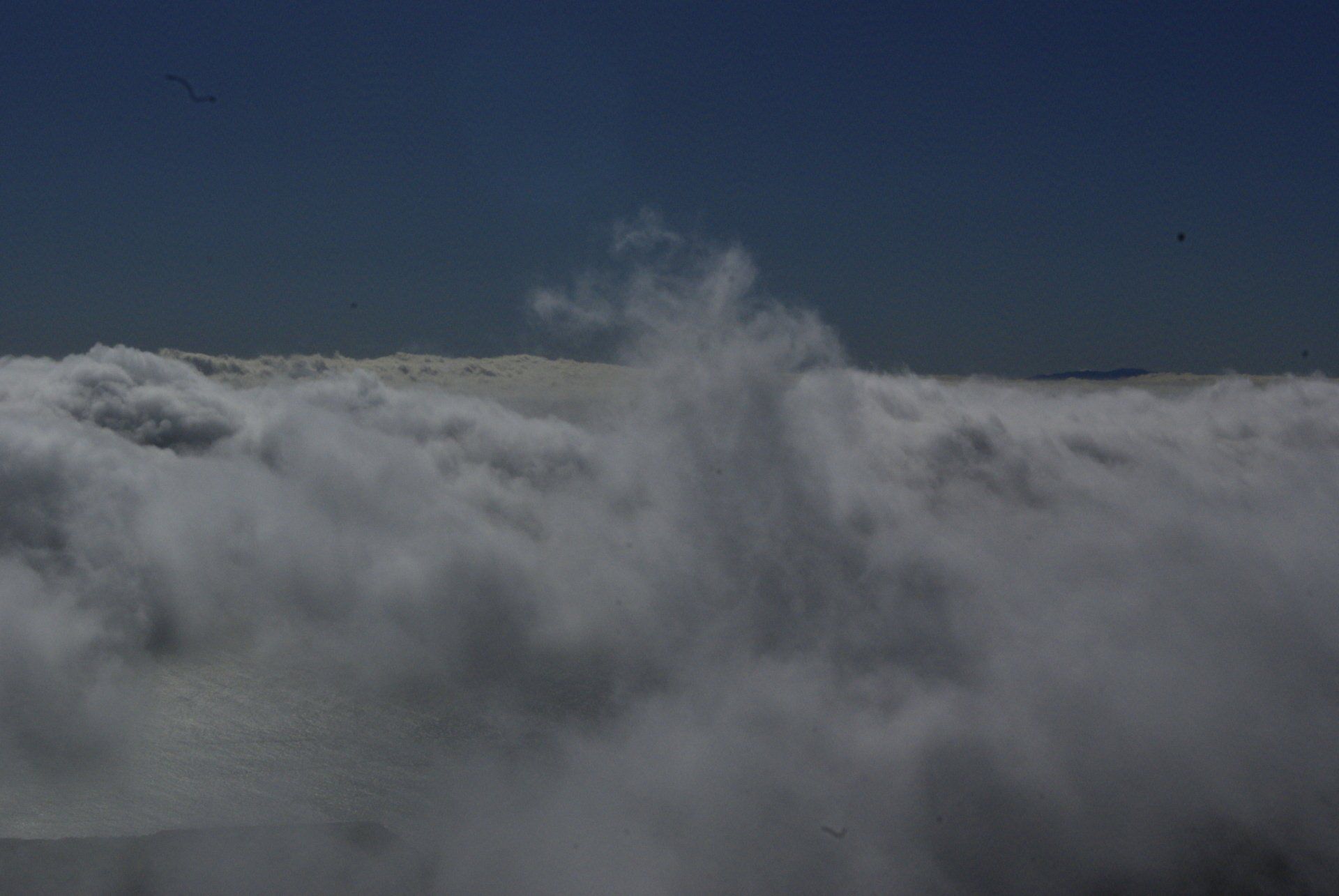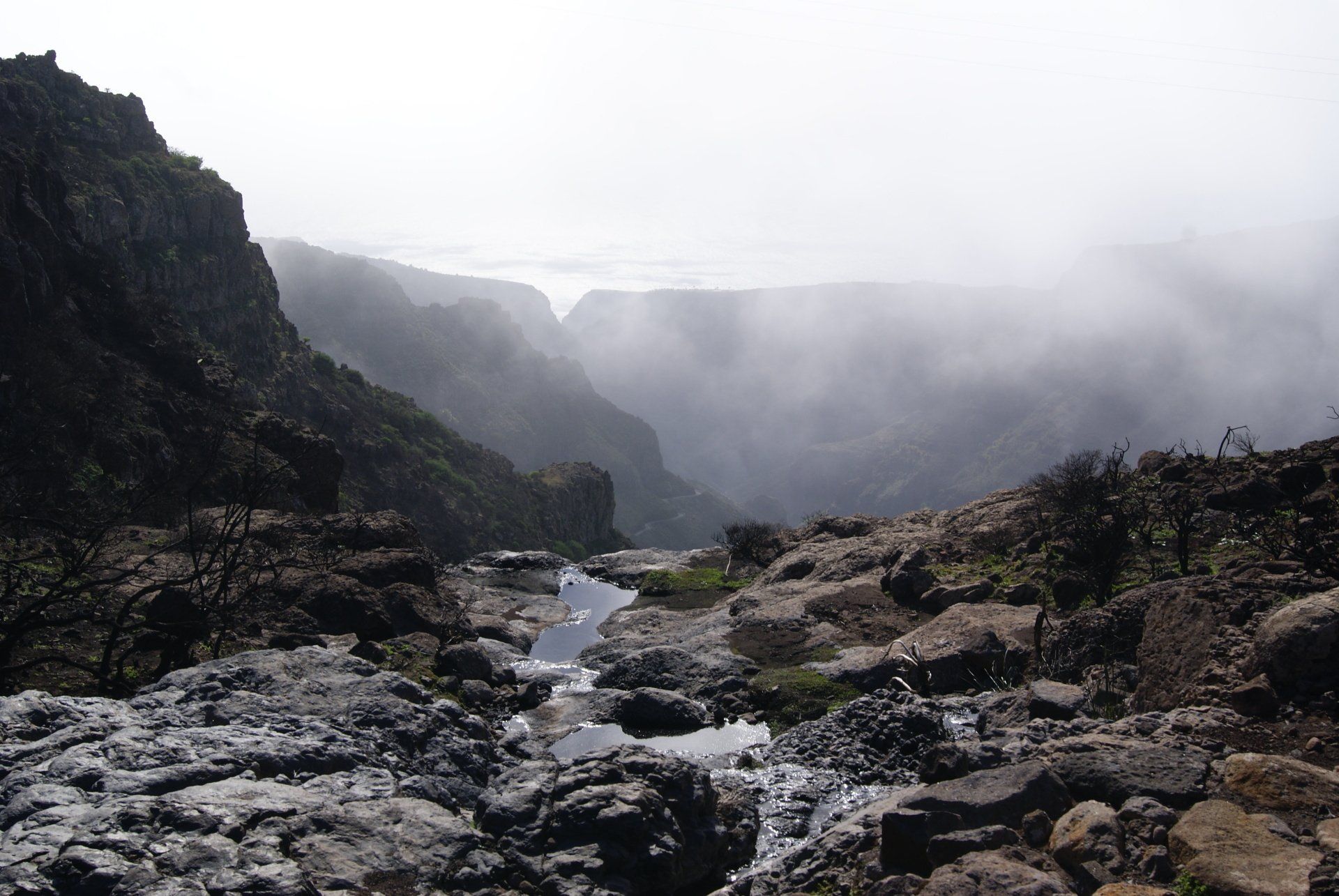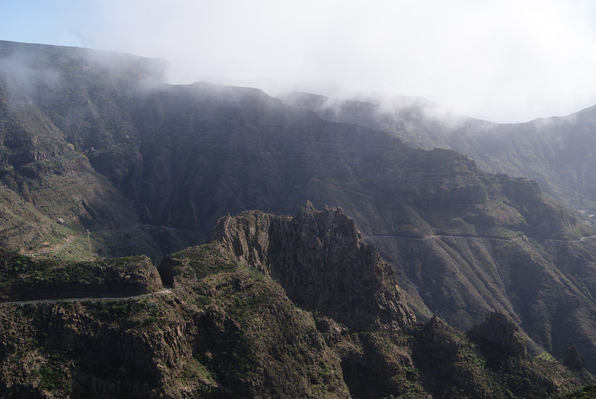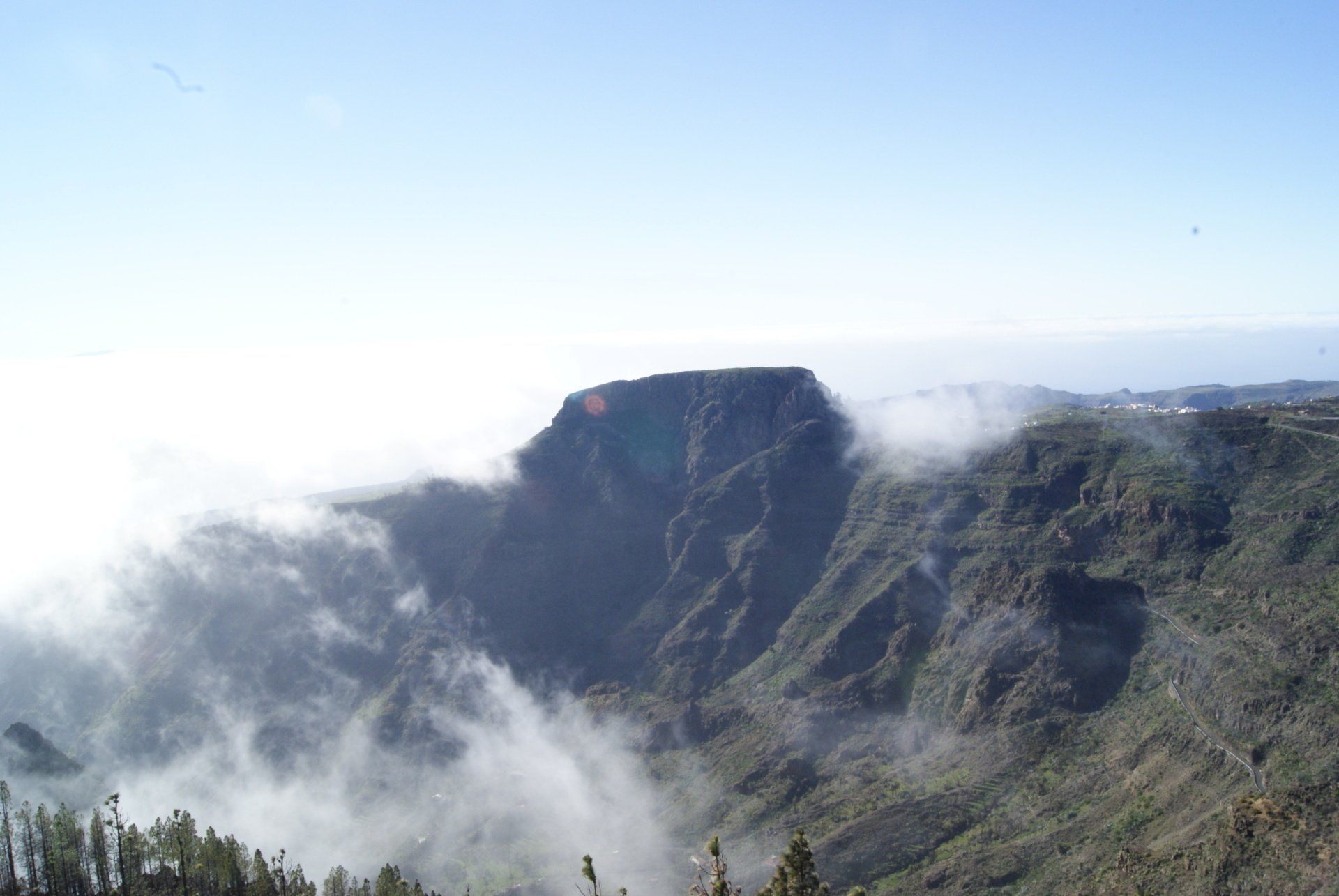 Die Landschaft ist karg aber grandios! Unvermutet komme ich in den Genuss eines unvergleichlichen Naturschauspiels. Ich hatte es mir zwar gewünscht, aber nicht zu hoffen gewagt, es wirklich zu erleben: La Fortaleza wird in Minutenschnelle von dicken Passatwolken eingehüllt, die dann wie ein Wasserfall über die Bergflanke fallen und sich genauso schnell wieder auflösen, wie sie sich gebildet hatten.