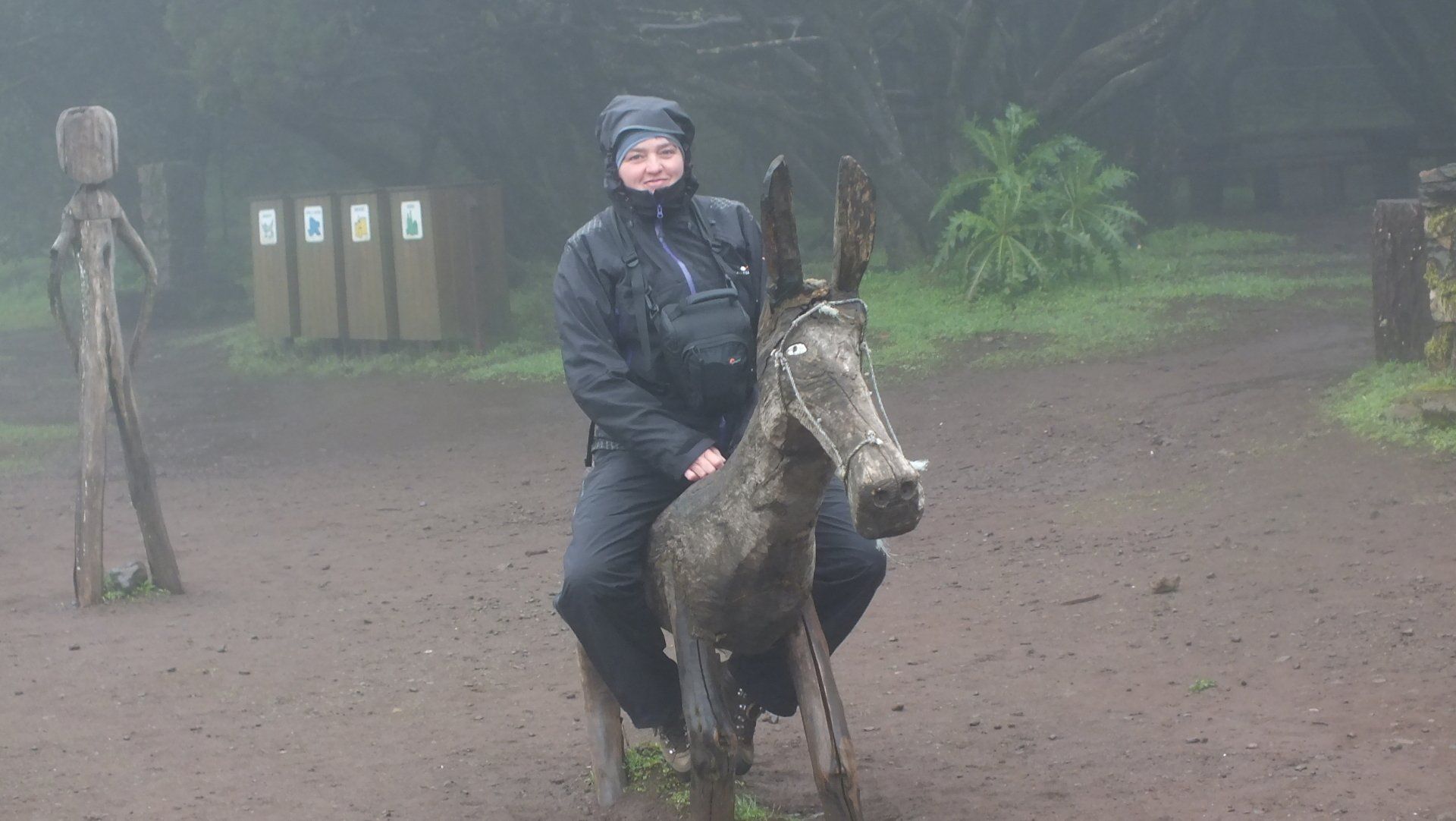 Apropos Besucherzentrum: Wir wohnen ja nur 800 m davon entfernt, haben es aber noch nicht geschafft, es einmal zu besuchen. Dabei soll man dort viele Infos zu Flora und Fauna usw. erhalten. Wir werden es wohl auch heute nicht schaffen, denn wir haben eine Führung durch den Nebelwald gebucht. Treffpunkt ist das Info-Häuschen am Parkplatz von La Laguna Grande. Dank meiner Abkürzung sparen wir eine ganze Stunde Fahrt und treffen viel zu früh am Treffpunkt ein. Wie erwartet, ist es im Nebelwald neblig und kalt, doch wir sind darauf vorbereitet und gut ausgerüstet. Gestern noch ein Bad im Meer, heute Winterklamotten. Pro 100 Höhenmetern fällt die Temperatur hier um gut 1°C.