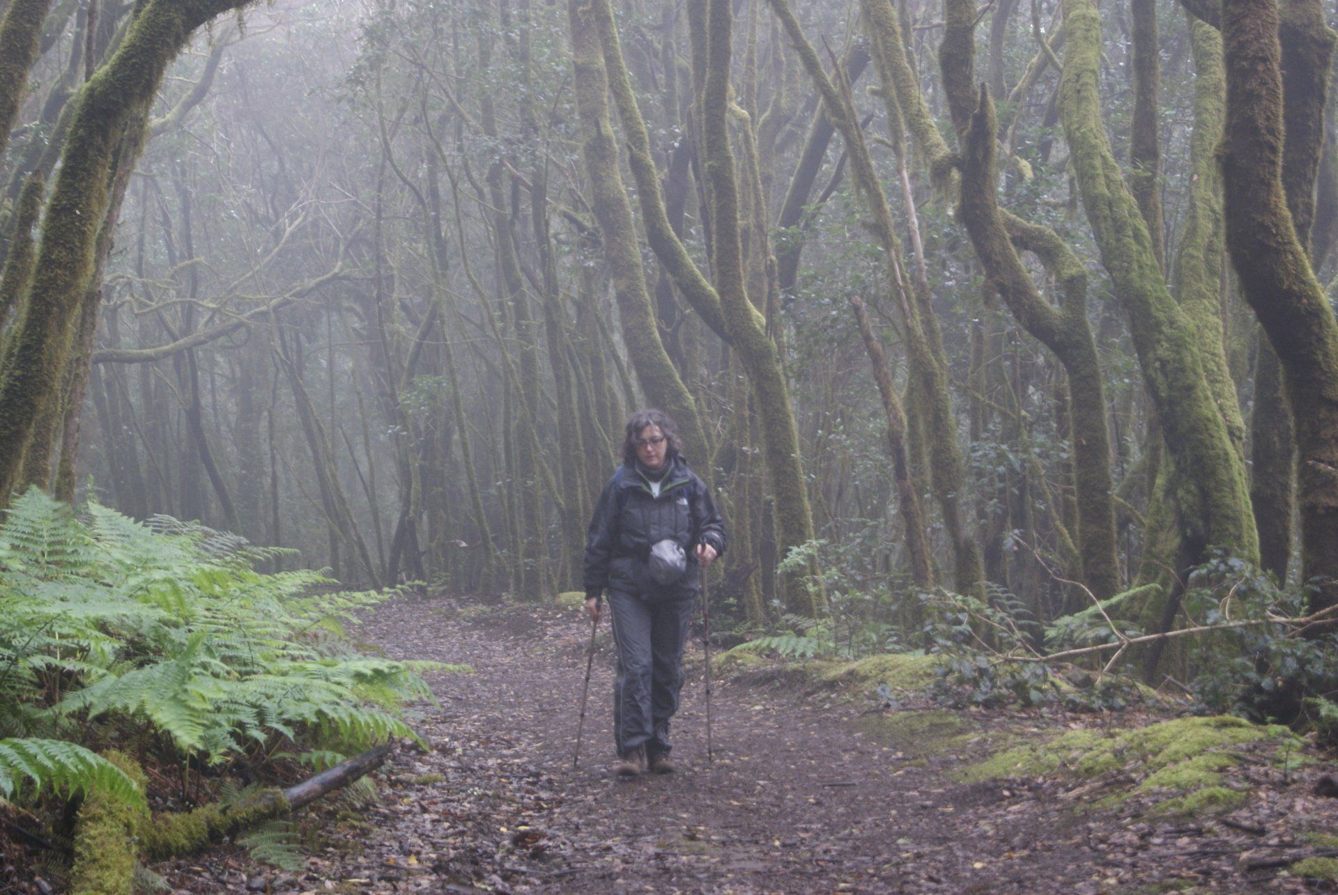 Wir buchen für den nächsten Tag eine Whale-Whatching-Tour und verlassen das Valle Gran Rey wieder, um noch ein bis zwei Stunden spazieren zu gehen. Wir fahren über Las Hayas zum Parkplatz Las Creces und nehmen uns den dortigen Rundweg vor, der an der Info-Tafel mit 2,5 Stunden ausgeschrieben ist. Irgendwas machen wir aber falsch, denn wir sind nach einer guten Stunde schon wieder am Parkplatz. Es ist kalt und feucht, war aber dennoch eine schöne Wanderung durch mystisch anmutenden Nebelwald.