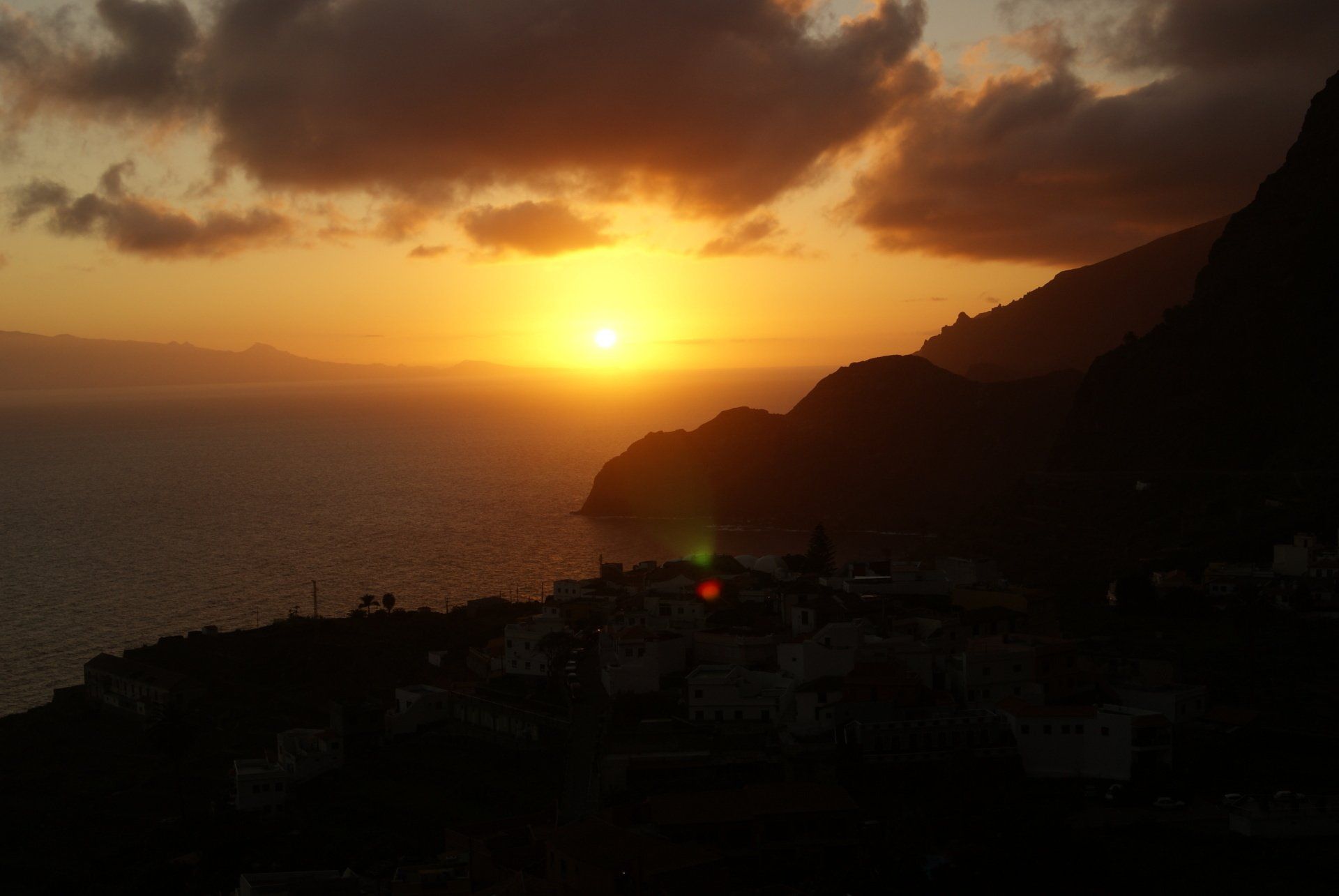 Unser letzter Tag auf La Gomera. Wir wollen heute noch einmal Sonne pur und haben uns die Top-Wanderung der Insel ausgesucht: Die Guarimiar-Schlucht im Süden. Dazu müssen wir wieder die halbe Insel umrunden und starten um 7:30 Uhr. Dadurch kommen wir erstmals in den Genuss eines unvergleichlichen Sonnenaufgangs über Agulo.