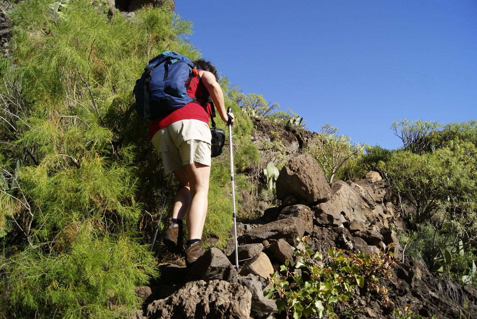 Der Weg zum Hotel Torre del Conde in San Sebastián ist kurz, die Leute dort sind nett und das Essen gut. Nach einem kurzen Stadtrundgang, bei dem ich schon gehörig ins Schwitzen komme, ergebe ich mich der Müdigkeit. Schließlich leide ich an einem Mini-Jetlag von immerhin einer Stunde. Bevor ich aber in die Federn sinken kann, muss ich noch mein Gepäck umpacken. Der große Trekking-Rucksack wird mit Zelt, Isomatte, Schlafsack, Kochgeschirr, Trekking-Mahlzeiten, Regenzeug, Fleecejacke, Erste-Hilfe-Set, Zahnbürste und drei Litern Wasser beladen, wodurch er wieder einmal auf ein Gewicht von 12 kg kommt. Im kleinen Rucksack und in einem zusätzlichen Packsack verschwindet die restliche Kleidung, die für die Tage nach der großen Inseldurchquerung vorgesehen ist. Diese beiden Gepäckstücke kann ich im Hotel deponieren.