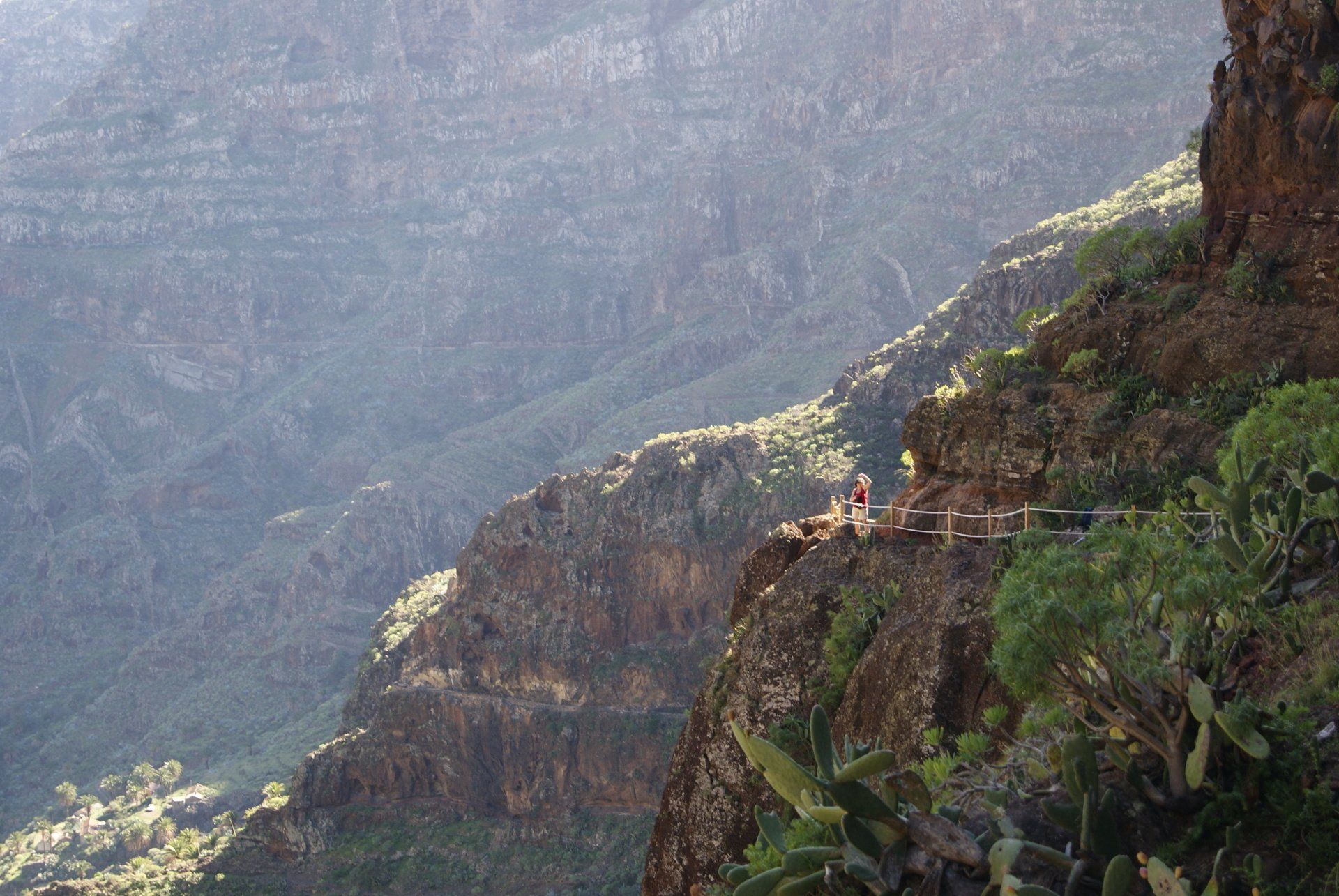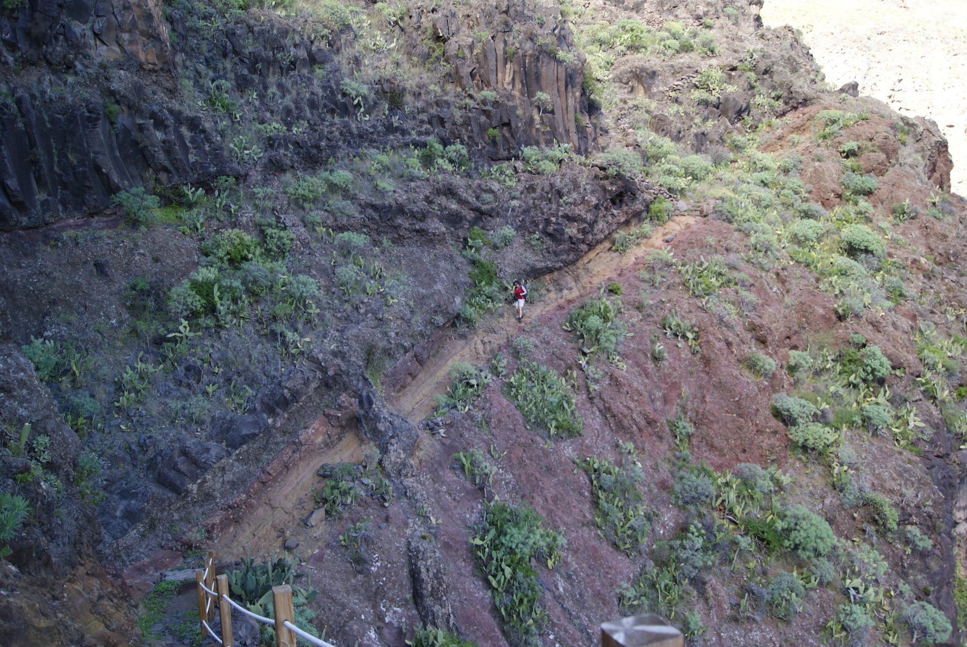 Wir wandern noch ein Stück in Richtung Rote Wand und ich spiele kurz mit dem Gedanken, wirklich noch durch die Rote Wand nach Agulo abzusteigen, dort zu Abend zu essen und dann mit dem Taxi zurückzufahren. Immerhin haben wir noch etwa zwei Stunden Sonnenlicht. Aber ich weiß nicht, wie lange man für den Abstieg braucht und wir würden ja fast die ganze Zeit über im Schatten des Risco de la Zula laufen. Da wird es sicher eher dunkel.