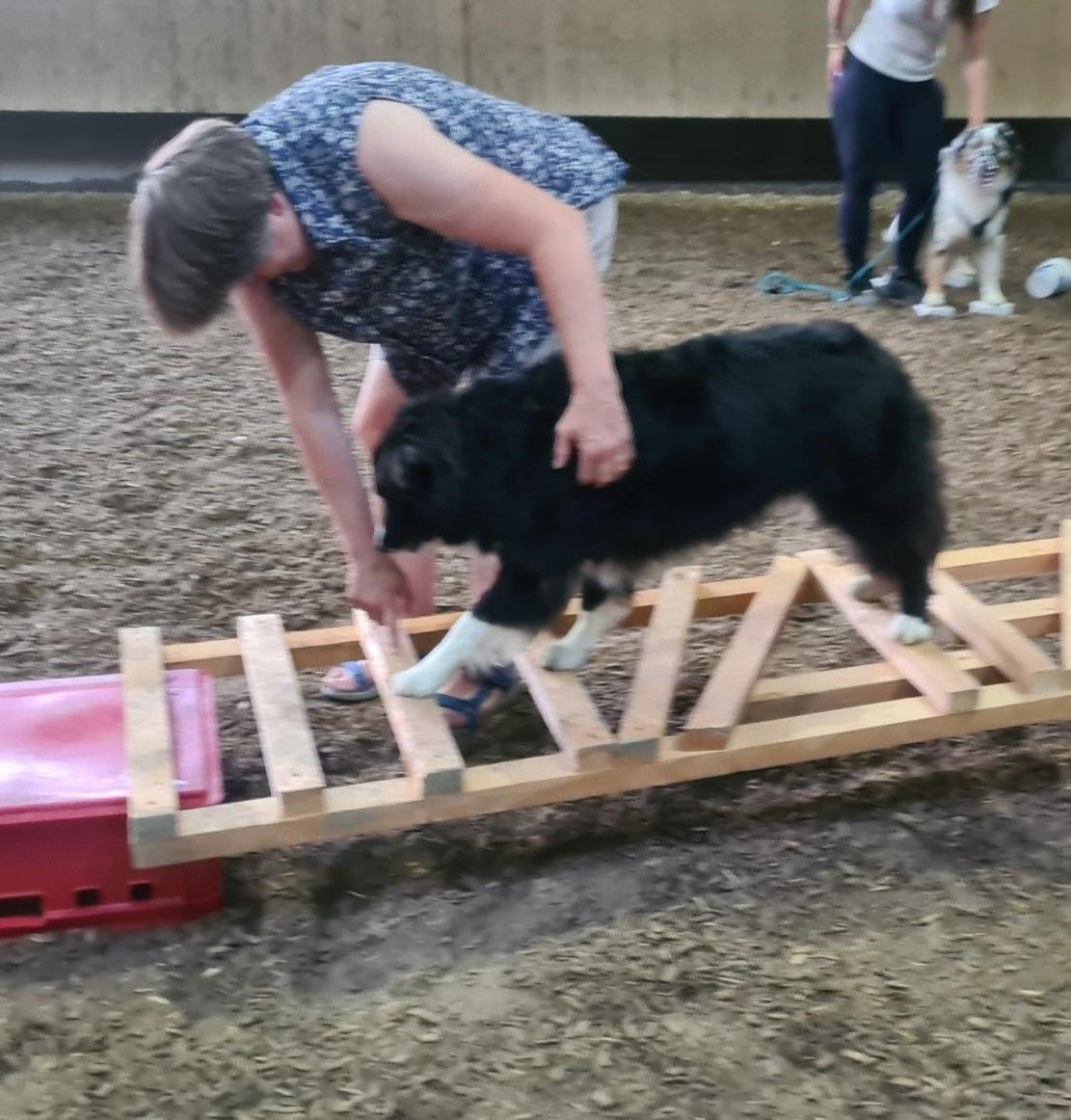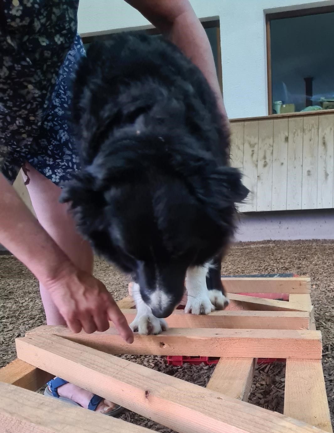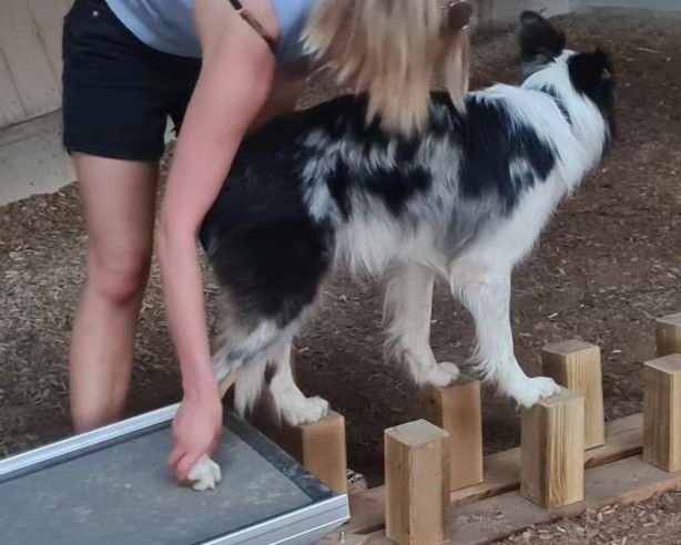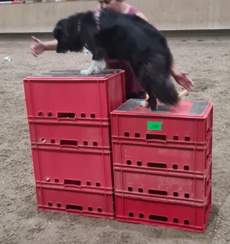 Inzwischen war Regina zwar nochmal mit mir dort in der Reithalle, aber es waren andere Hunde mit ihren Frauchen dabei. Hat aber trotzdem viel Spaß gemacht und ich hoffe, dass wir ab und zu wieder hinfahren und weiterhin auf Leitern steigen, Türme aus Kisten bauen oder mit unseren Frauchen auf dem Wackelbrett wackeln.