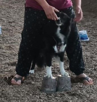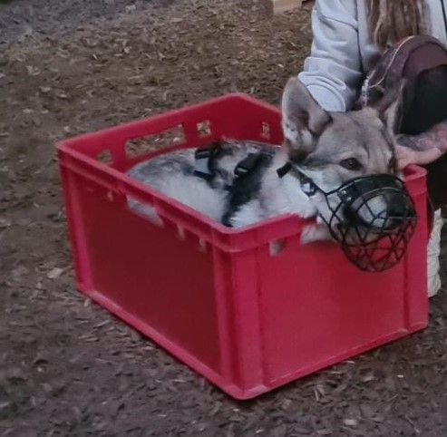 Es gab noch einen Aussie, dessen Namen ich vergessen habe. Der bellte immer sehr viel und konnte sich anfangs nicht so gut konzentrieren. Und er musste während des ganzen Kurses einen Maulkorb tragen.