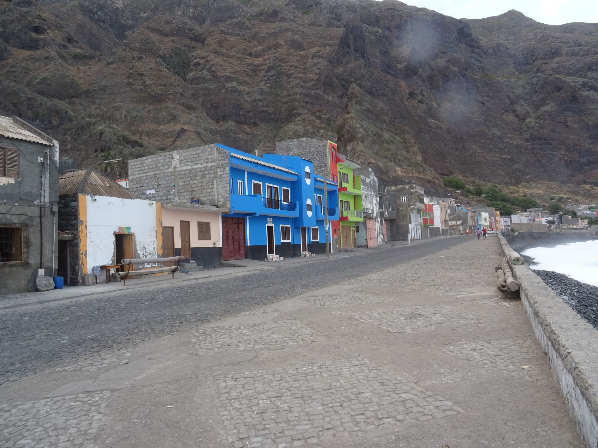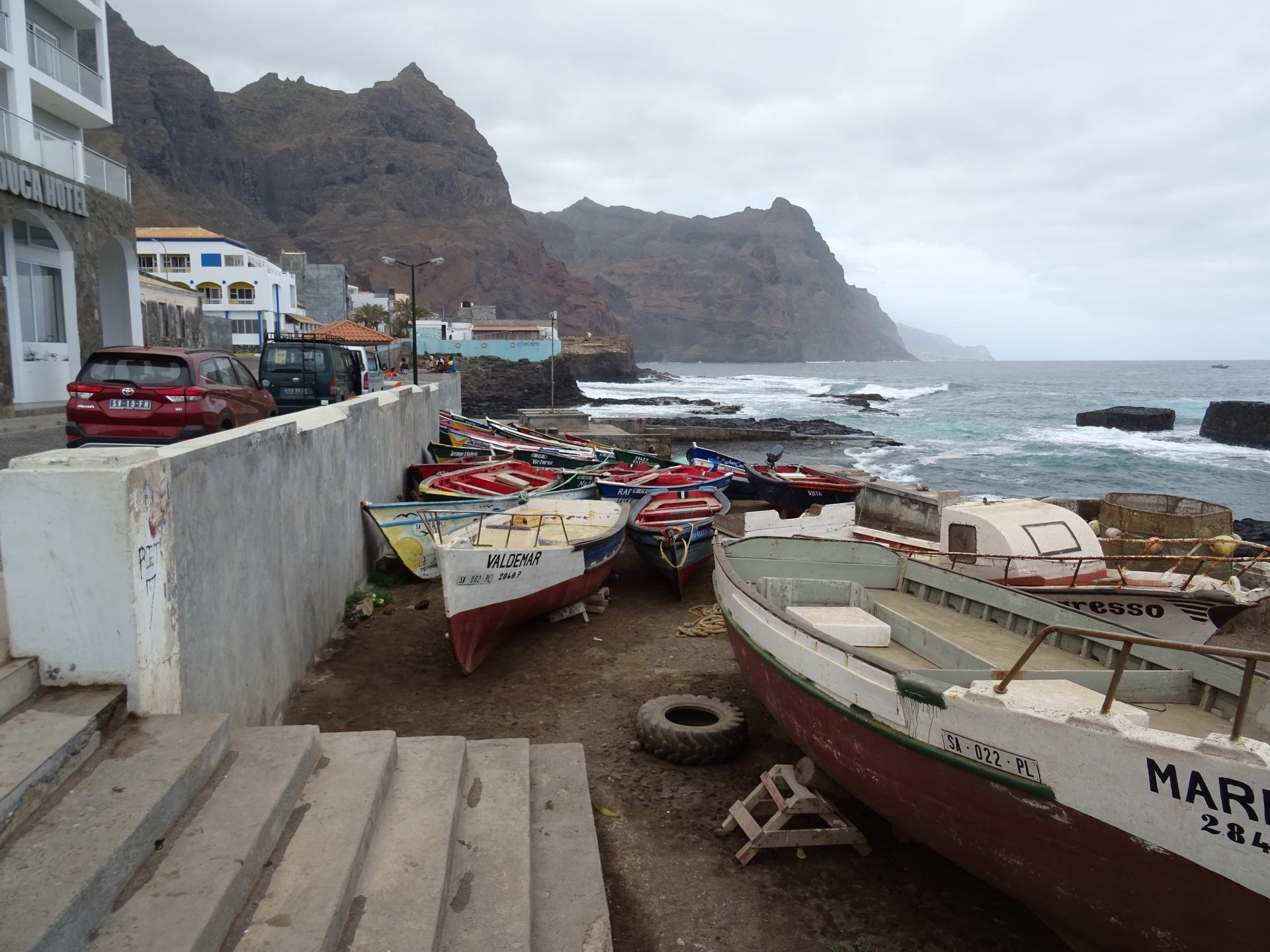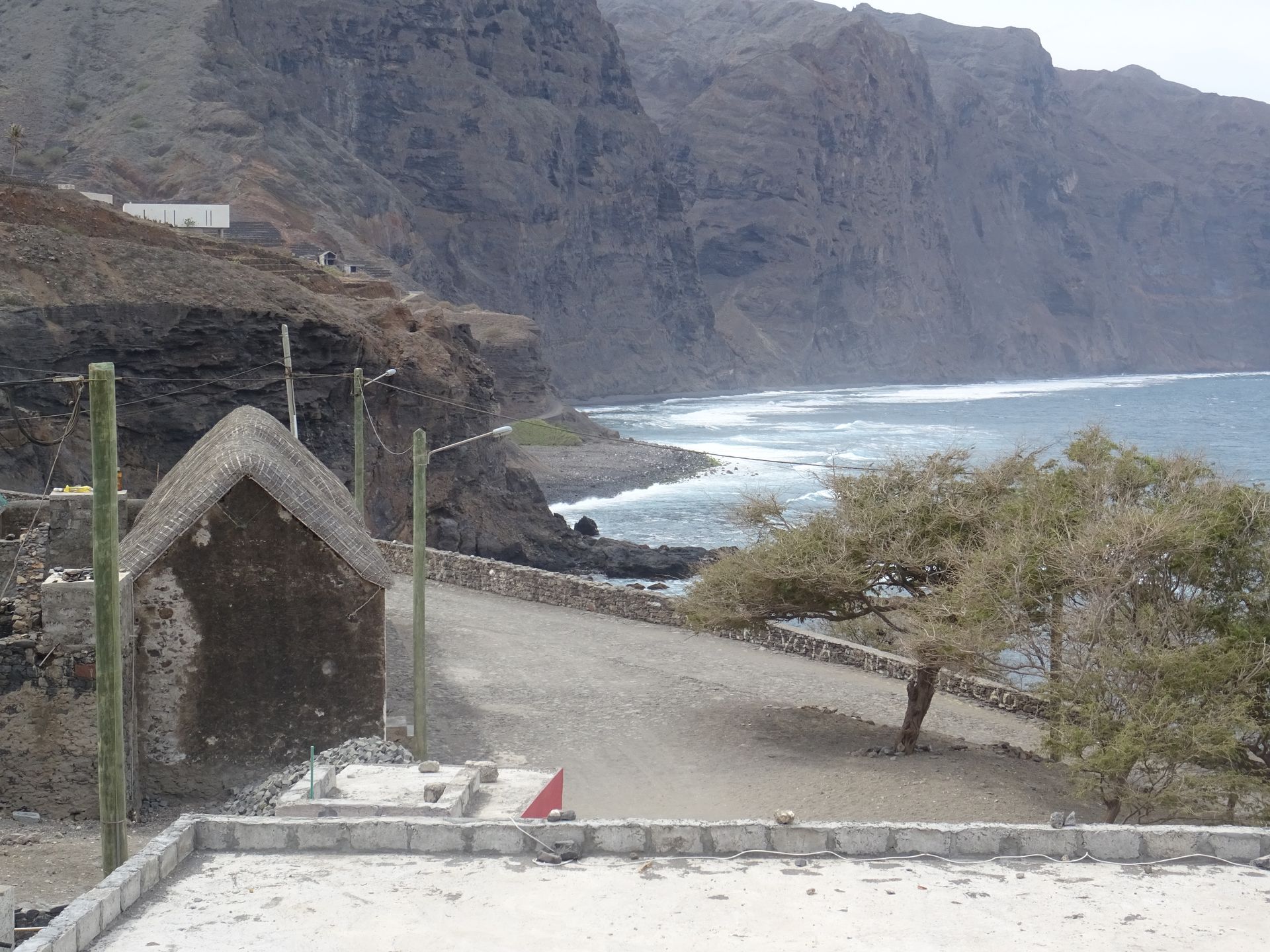 Am späteren Nachmittag machen wir noch einen kleinen Rundgang bis zur Mitte des unteren Dorfes, wo sich die Schule befindet. Die Häuser sind nicht im allerbesten Zustand. Die Bevölkerung scheint vorwiegend von Landwirtschaft und Fischfang zu leben. Man ist hier nur etwa 40 km von Mindelo auf São Vicente entfernt und die Waren werden per Schiff hinübergebracht und dort auf dem Markt verkauft. Es gibt auch ein paar weitere touristische Unterkünfte und eine Tauchschule. Hier vor der Westküste Santo Antãos ist der einzige Küstenabschnitt des westlichen Archipels, an dem man gefahrlos Baden und Tauchen kann. Also, wenn man sich nicht so blöd anstellt wie ich!