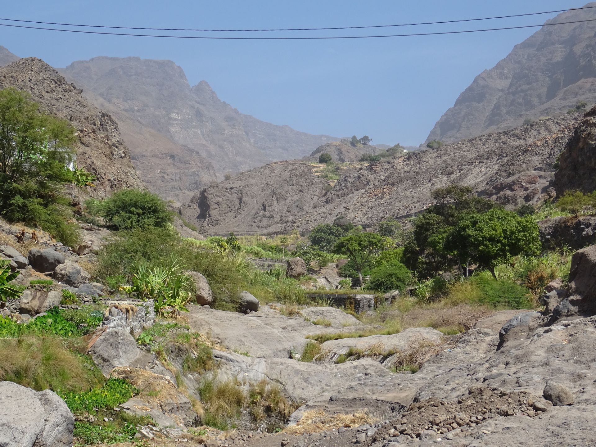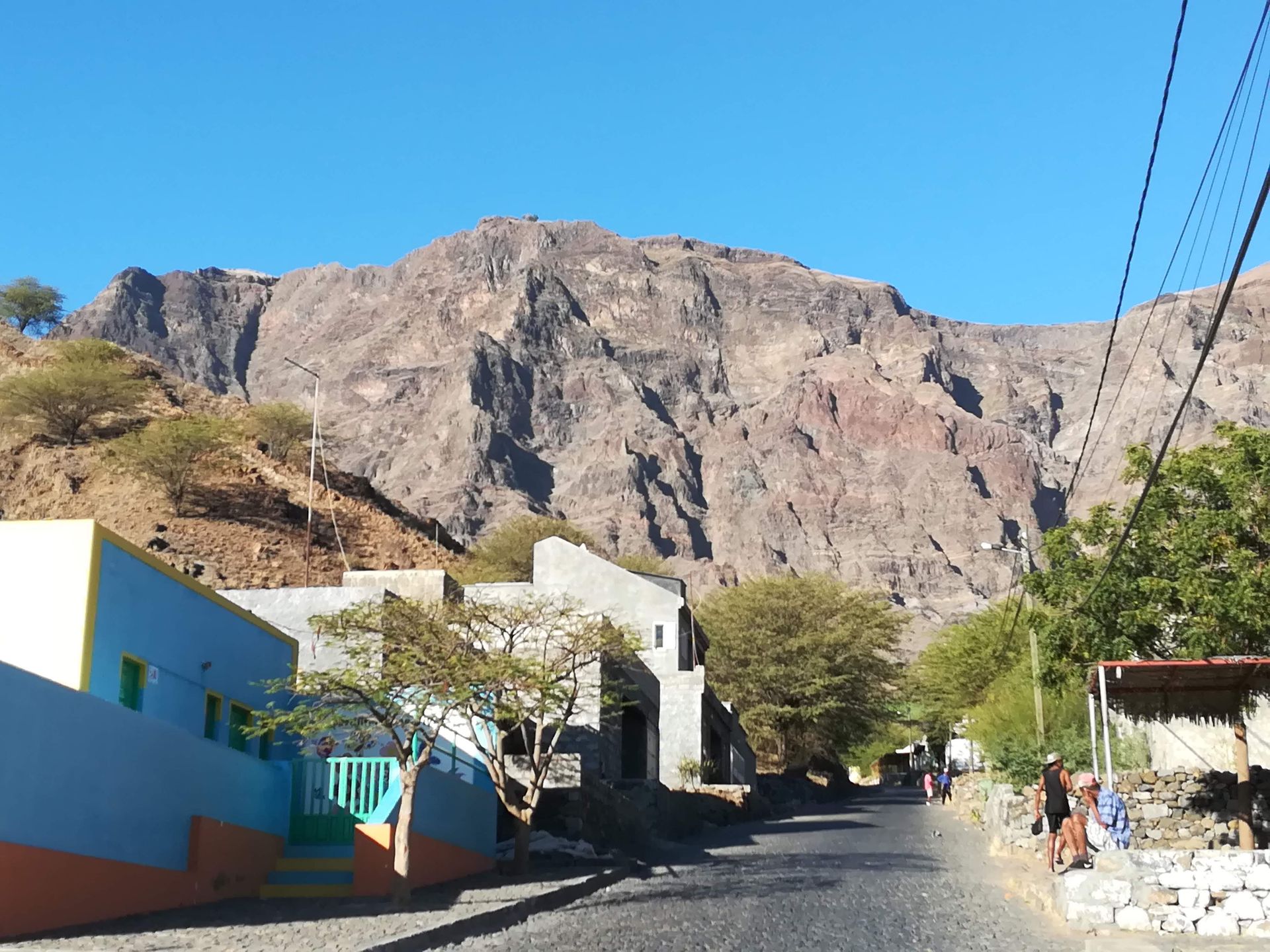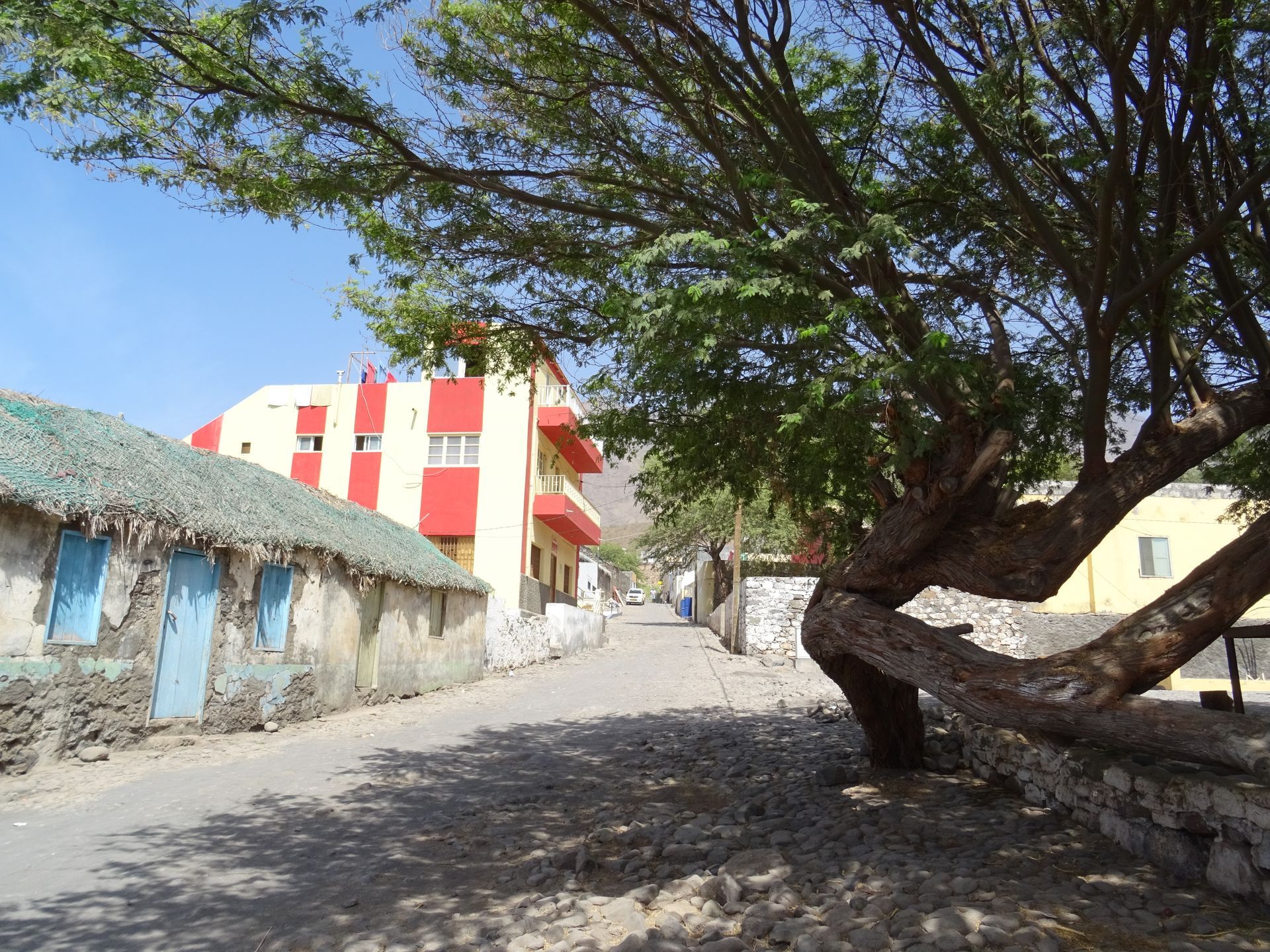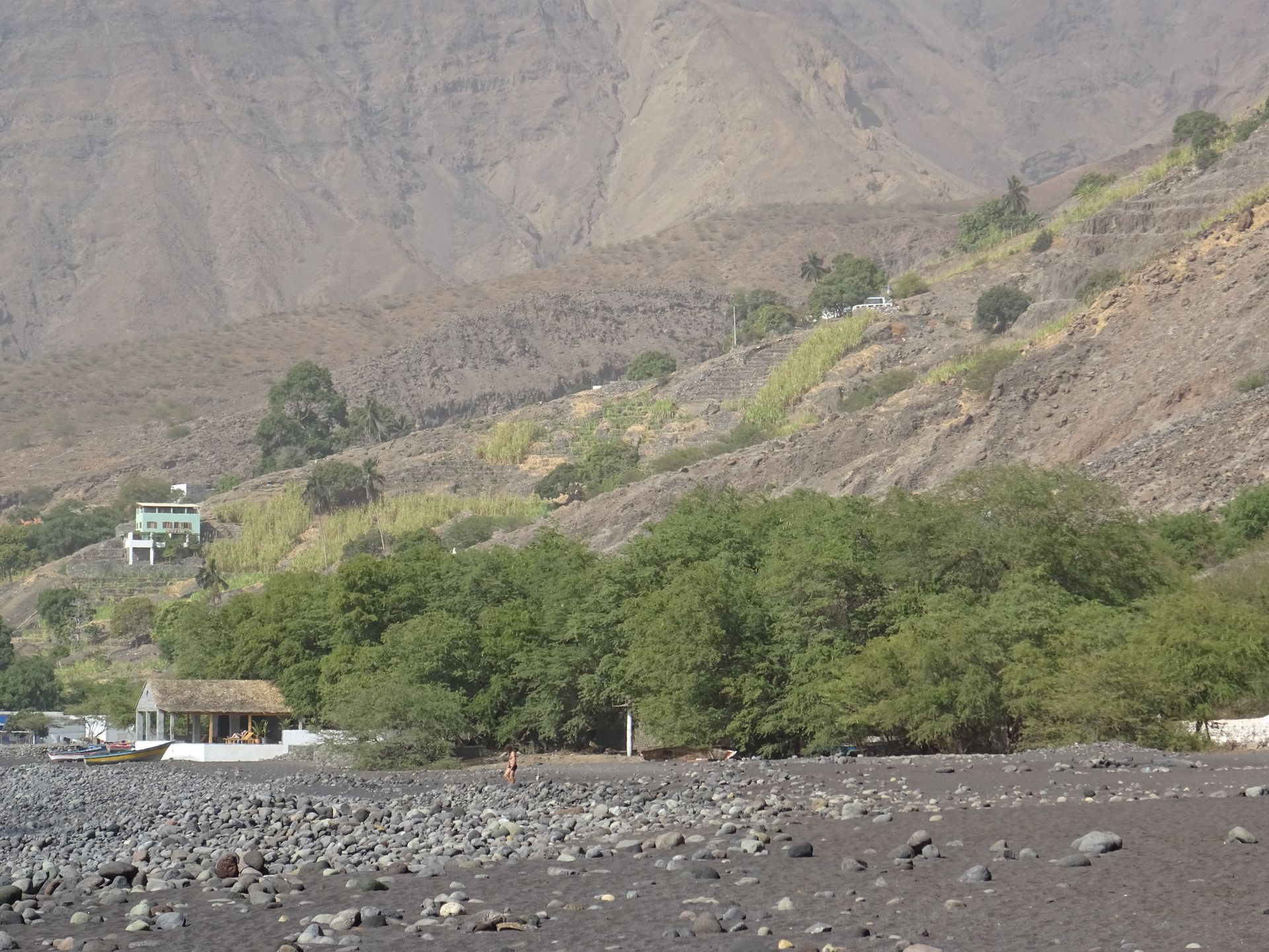 Der letzte Aufstieg ist noch einmal heftig, aber schließlich stehen wir oben auf der Hochebene und sehen Ribeira da Cruz in nicht mehr allzu weiter Entfernung. Noch eine Stunde, dann sind wir am Ziel unserer Wanderung angekommen. Dabei konnten wir den Ort gestern vom Chupador aus schon sehen. So spektakulär wie die gestrige, war die heutige Strecke nicht mehr. Und obwohl es heute nicht ganz so anstrengend war, sind wir doch froh, als wir gegen 13 Uhr in Ribeira da Cruz bei dem bereits auf uns wartenden Taxi eintreffen. Die Fahrt geht auch sofort los und führt durch eine herrliche Bergwelt nach Chã de Morte, das „Dorf des Todes“, wo wir für drei Nächte im Hotel von Senhor Nelson und seiner Frau Suzette wohnen werden. Wir bekommen ein schönes Zimmer, duschen uns erst einmal Staub und Schweiß vom Körper und sitzen dann den Rest des Tages auf der Terrasse vor dem Hotel in der Sonne und sehen dem Treiben auf der Straße zu.