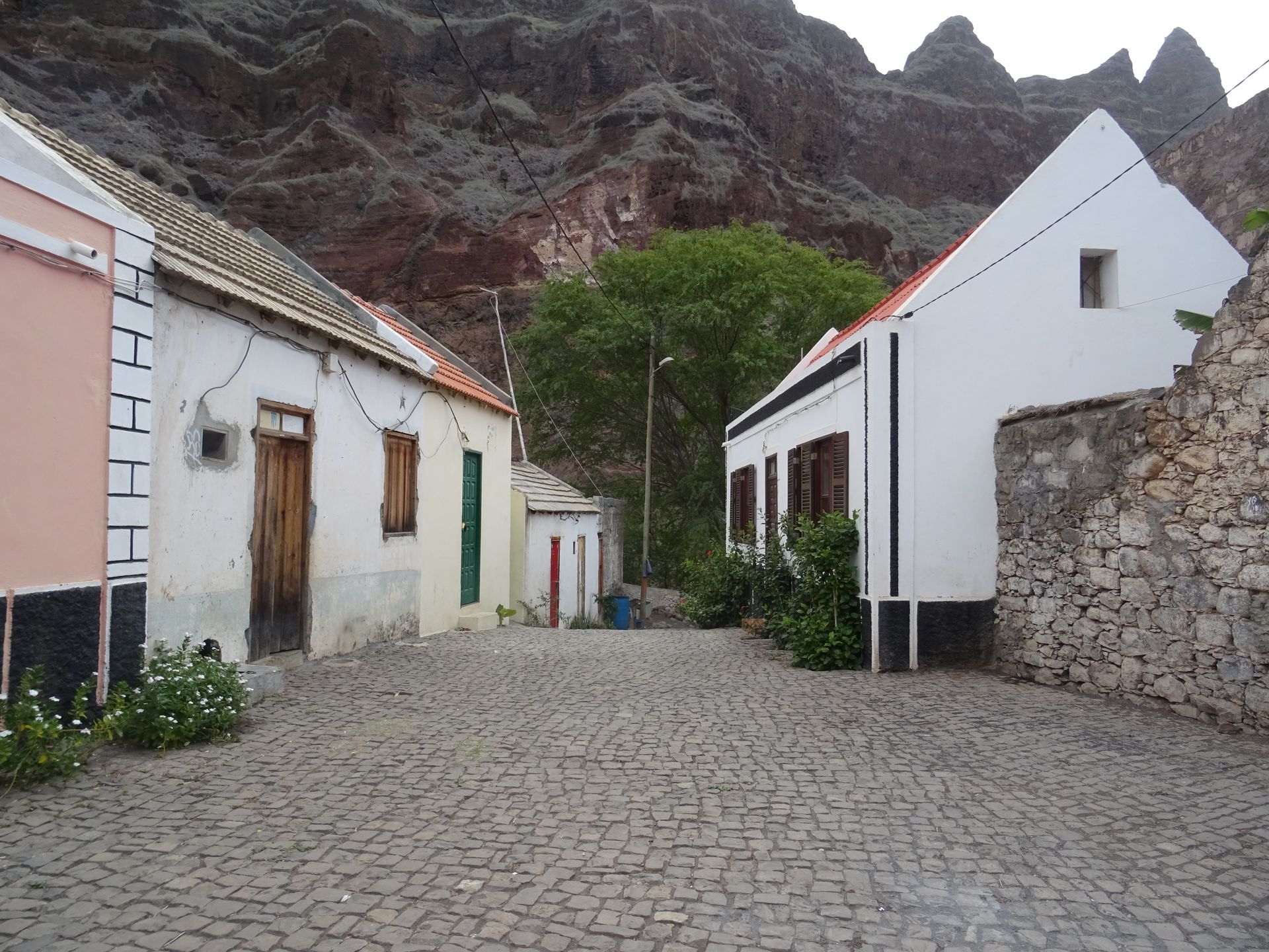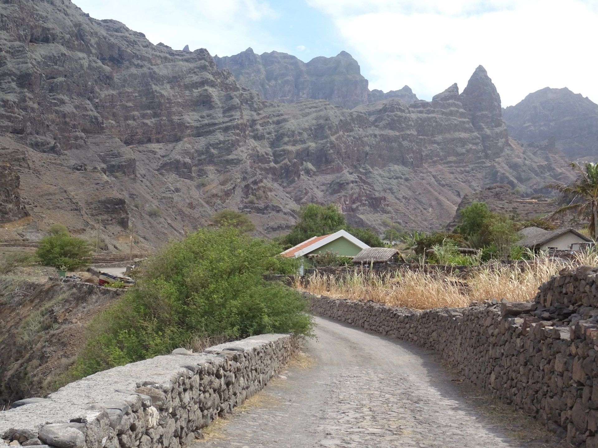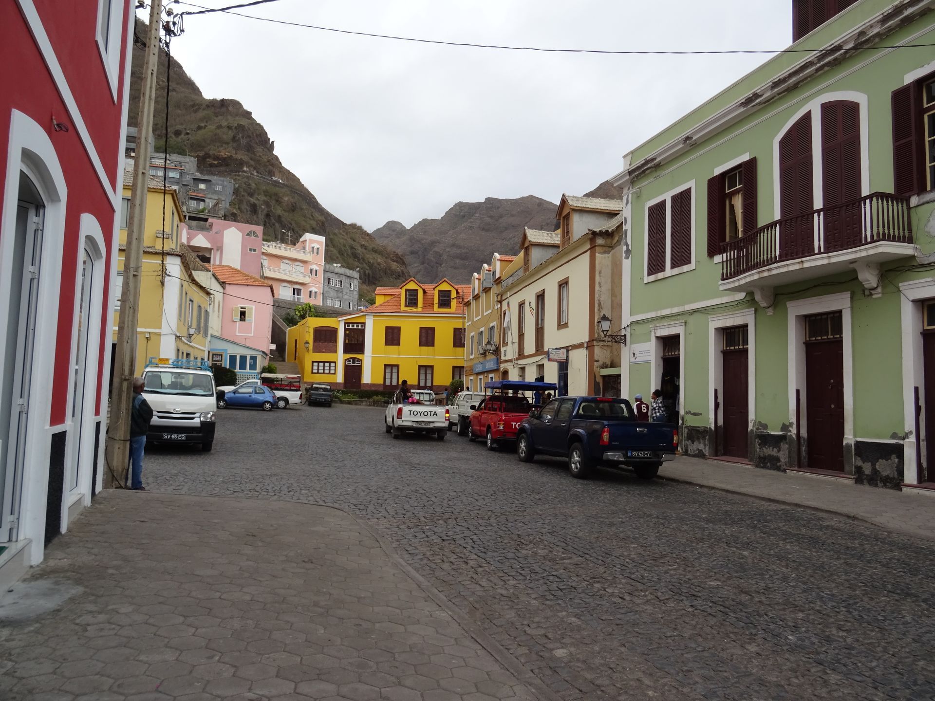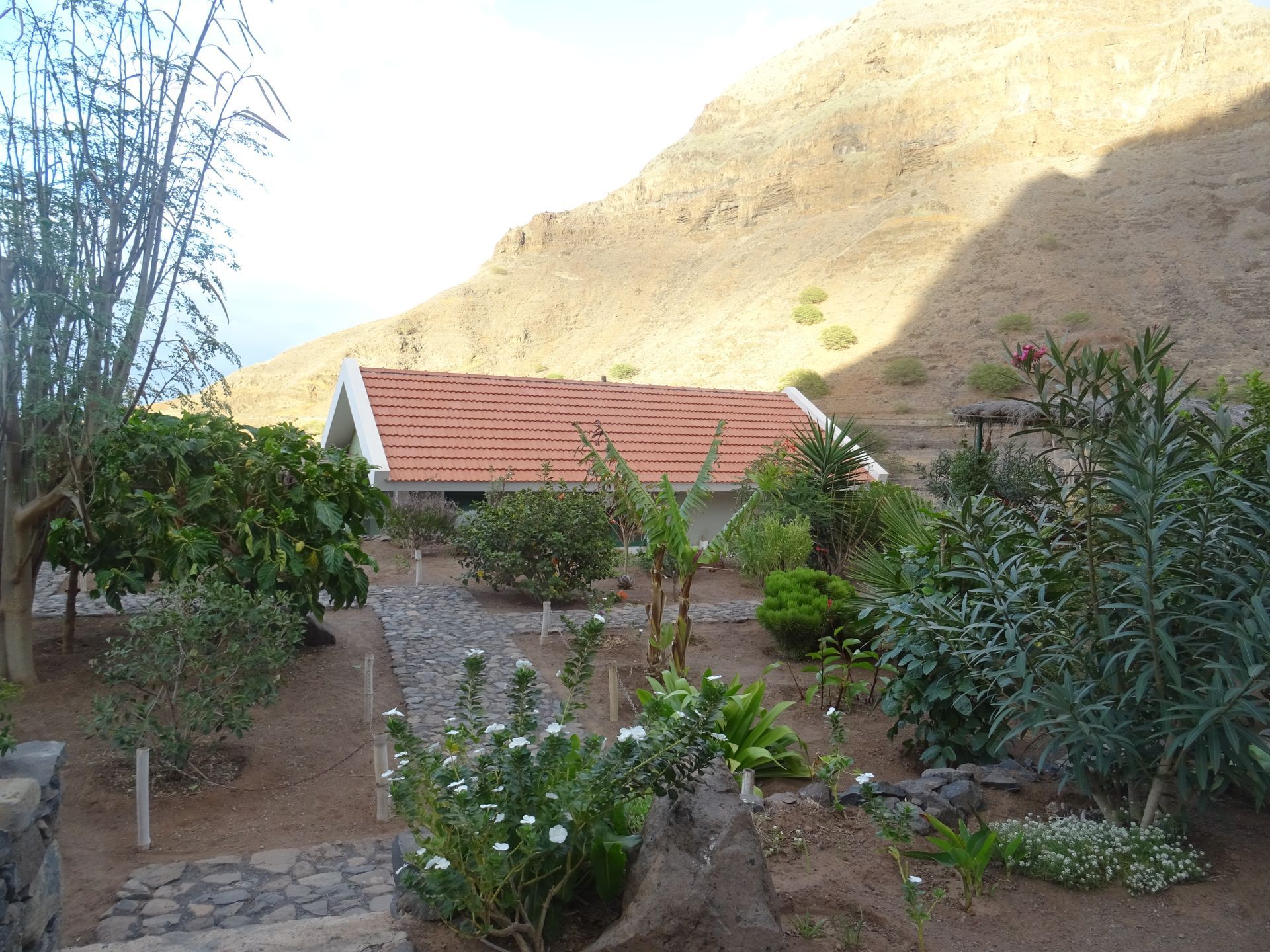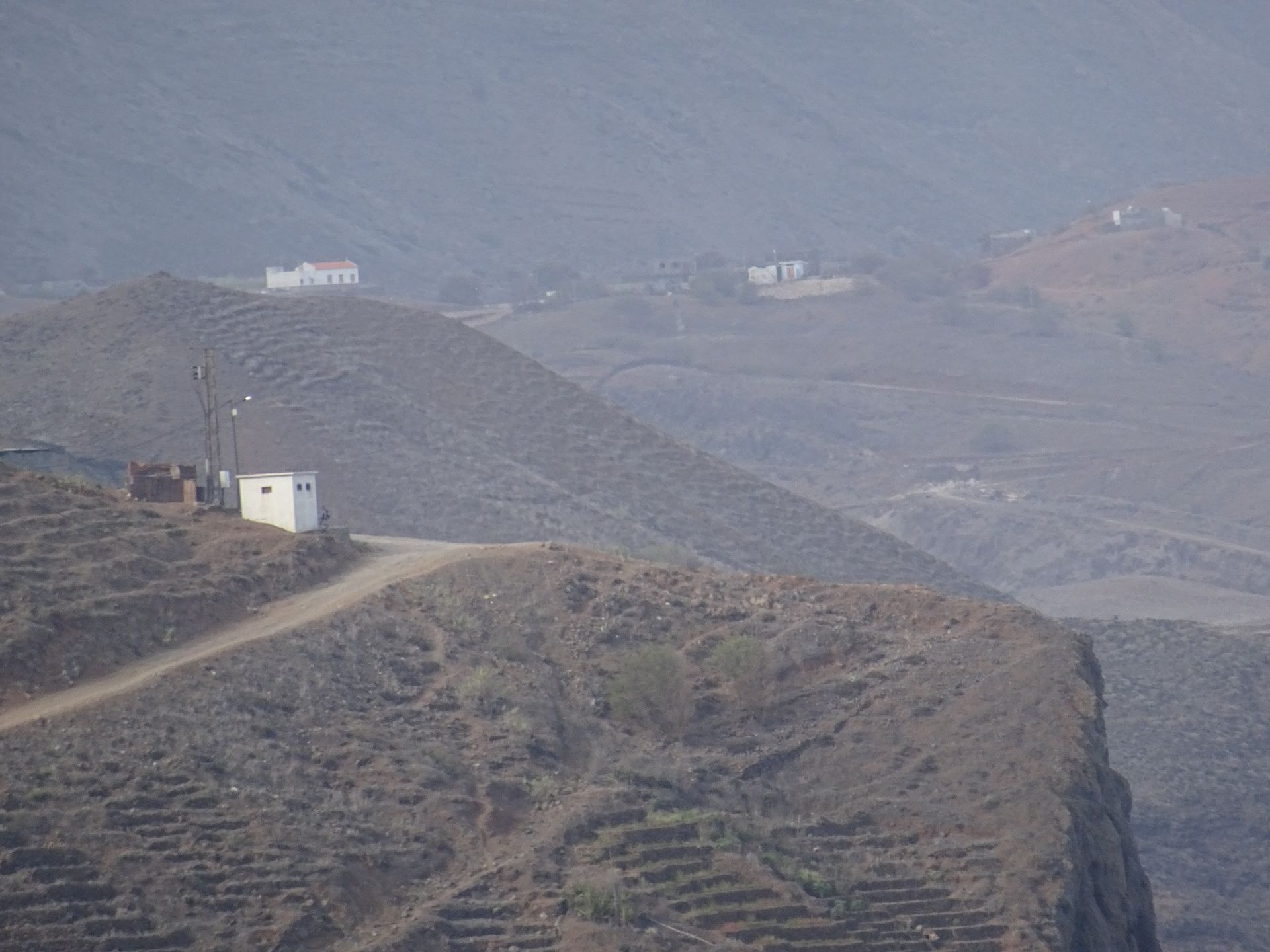 Der letzte Aufstieg ist noch einmal heftig, aber schließlich stehen wir oben auf der Hochebene und sehen Ribeira da Cruz in nicht mehr allzu weiter Entfernung. Noch eine Stunde, dann sind wir am Ziel unserer Wanderung angekommen. Dabei konnten wir den Ort gestern vom Chupador aus schon sehen. So spektakulär wie die gestrige, war die heutige Strecke nicht mehr. Und obwohl es heute nicht ganz so anstrengend war, sind wir doch froh, als wir gegen 13 Uhr in Ribeira da Cruz bei dem bereits auf uns wartenden Taxi eintreffen. Die Fahrt geht auch sofort los und führt durch eine herrliche Bergwelt nach Chã de Morte, das „Dorf des Todes“, wo wir für drei Nächte im Hotel von Senhor Nelson und seiner Frau Suzette wohnen werden. Wir bekommen ein schönes Zimmer, duschen uns erst einmal Staub und Schweiß vom Körper und sitzen dann den Rest des Tages auf der Terrasse vor dem Hotel in der Sonne und sehen dem Treiben auf der Straße zu.