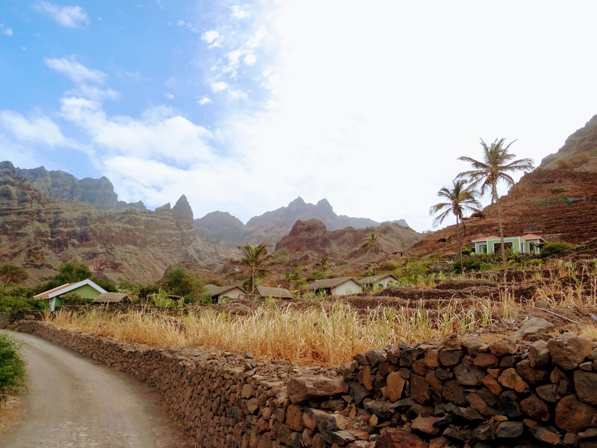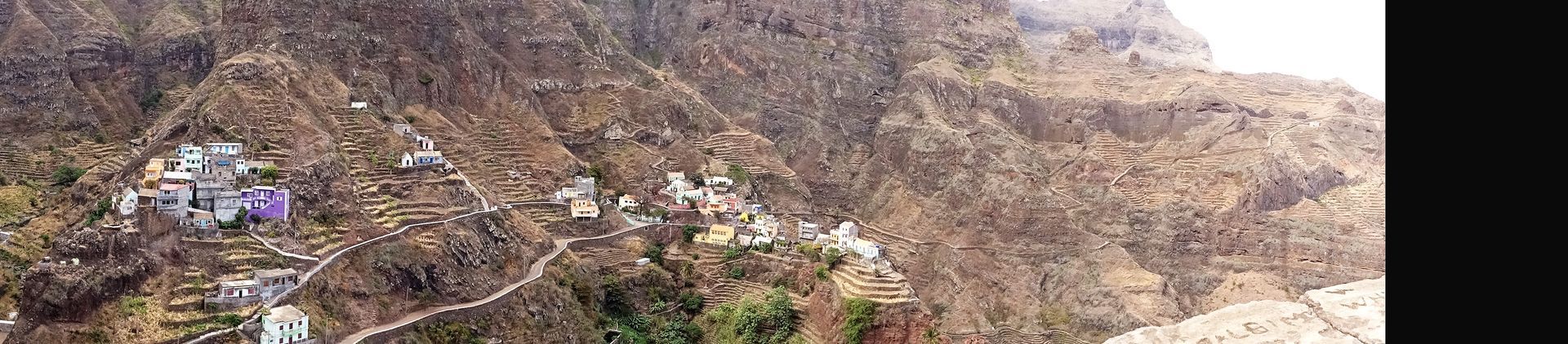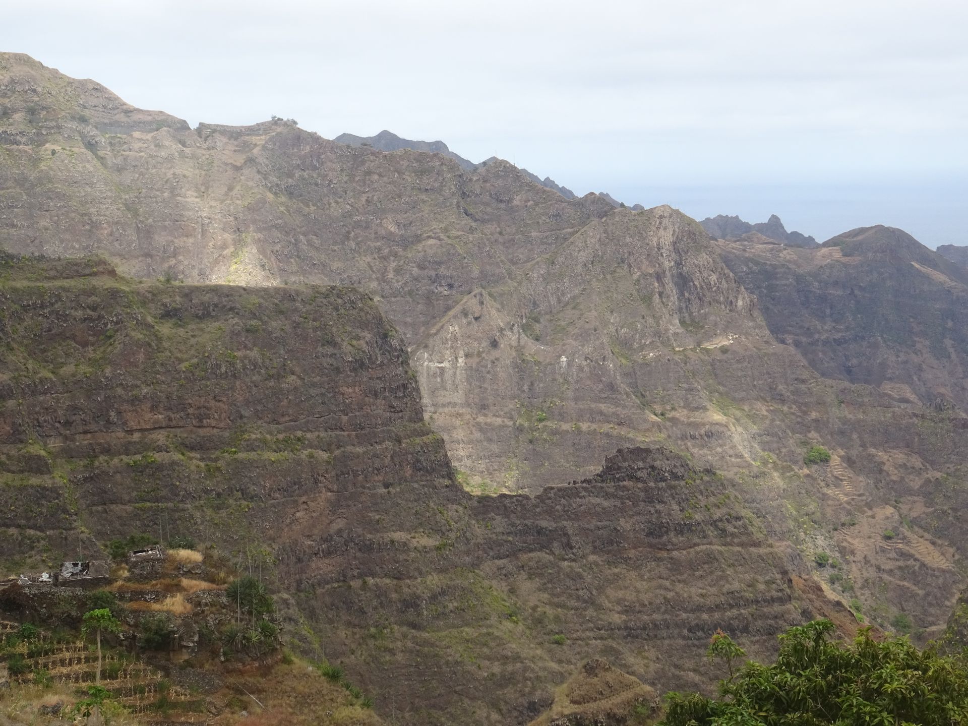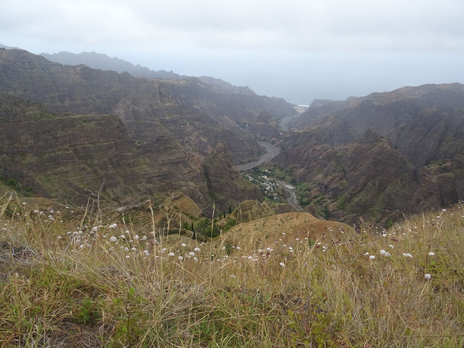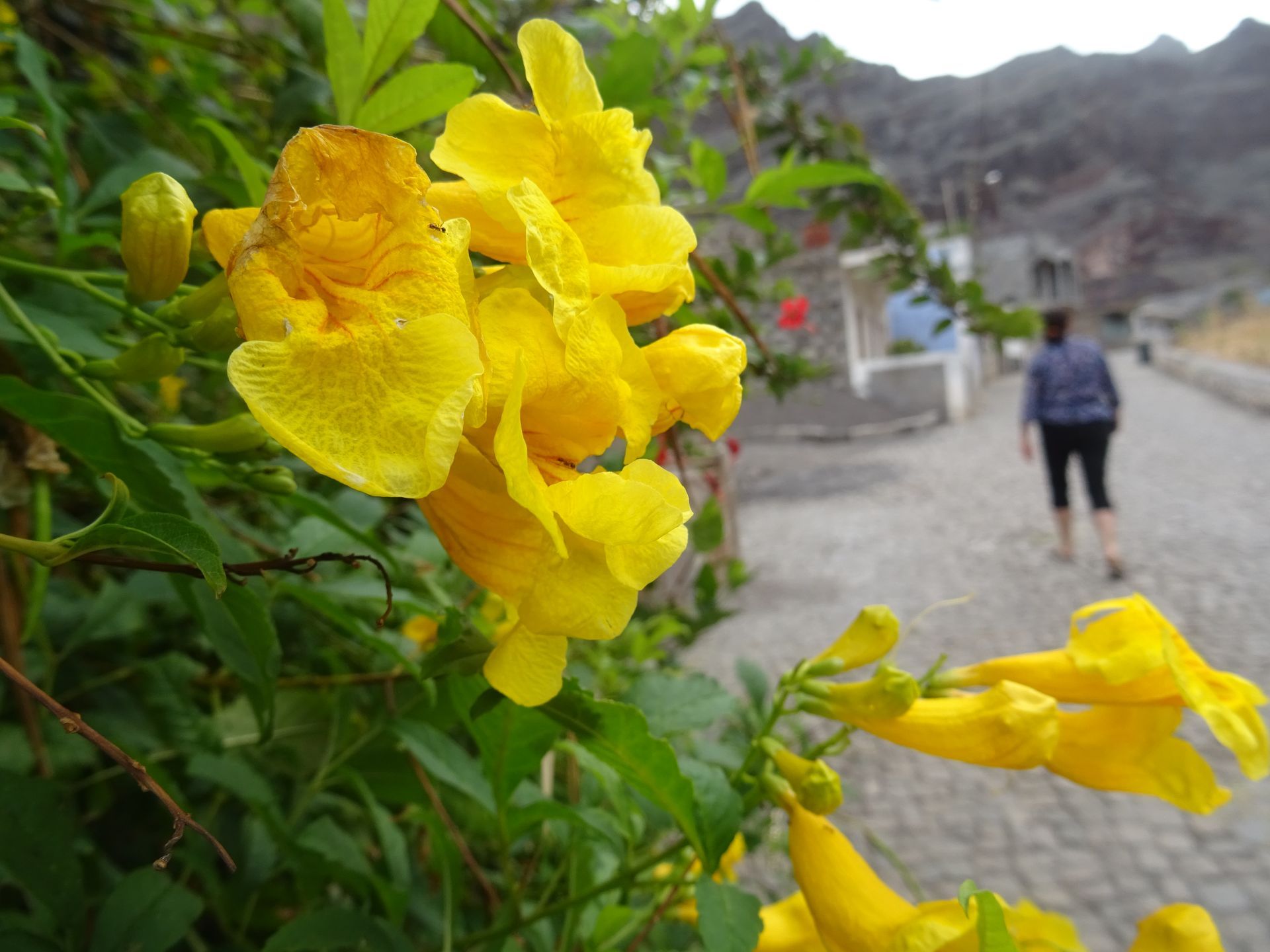 Der letzte Aufstieg ist noch einmal heftig, aber schließlich stehen wir oben auf der Hochebene und sehen Ribeira da Cruz in nicht mehr allzu weiter Entfernung. Noch eine Stunde, dann sind wir am Ziel unserer Wanderung angekommen. Dabei konnten wir den Ort gestern vom Chupador aus schon sehen. So spektakulär wie die gestrige, war die heutige Strecke nicht mehr. Und obwohl es heute nicht ganz so anstrengend war, sind wir doch froh, als wir gegen 13 Uhr in Ribeira da Cruz bei dem bereits auf uns wartenden Taxi eintreffen. Die Fahrt geht auch sofort los und führt durch eine herrliche Bergwelt nach Chã de Morte, das „Dorf des Todes“, wo wir für drei Nächte im Hotel von Senhor Nelson und seiner Frau Suzette wohnen werden. Wir bekommen ein schönes Zimmer, duschen uns erst einmal Staub und Schweiß vom Körper und sitzen dann den Rest des Tages auf der Terrasse vor dem Hotel in der Sonne und sehen dem Treiben auf der Straße zu.