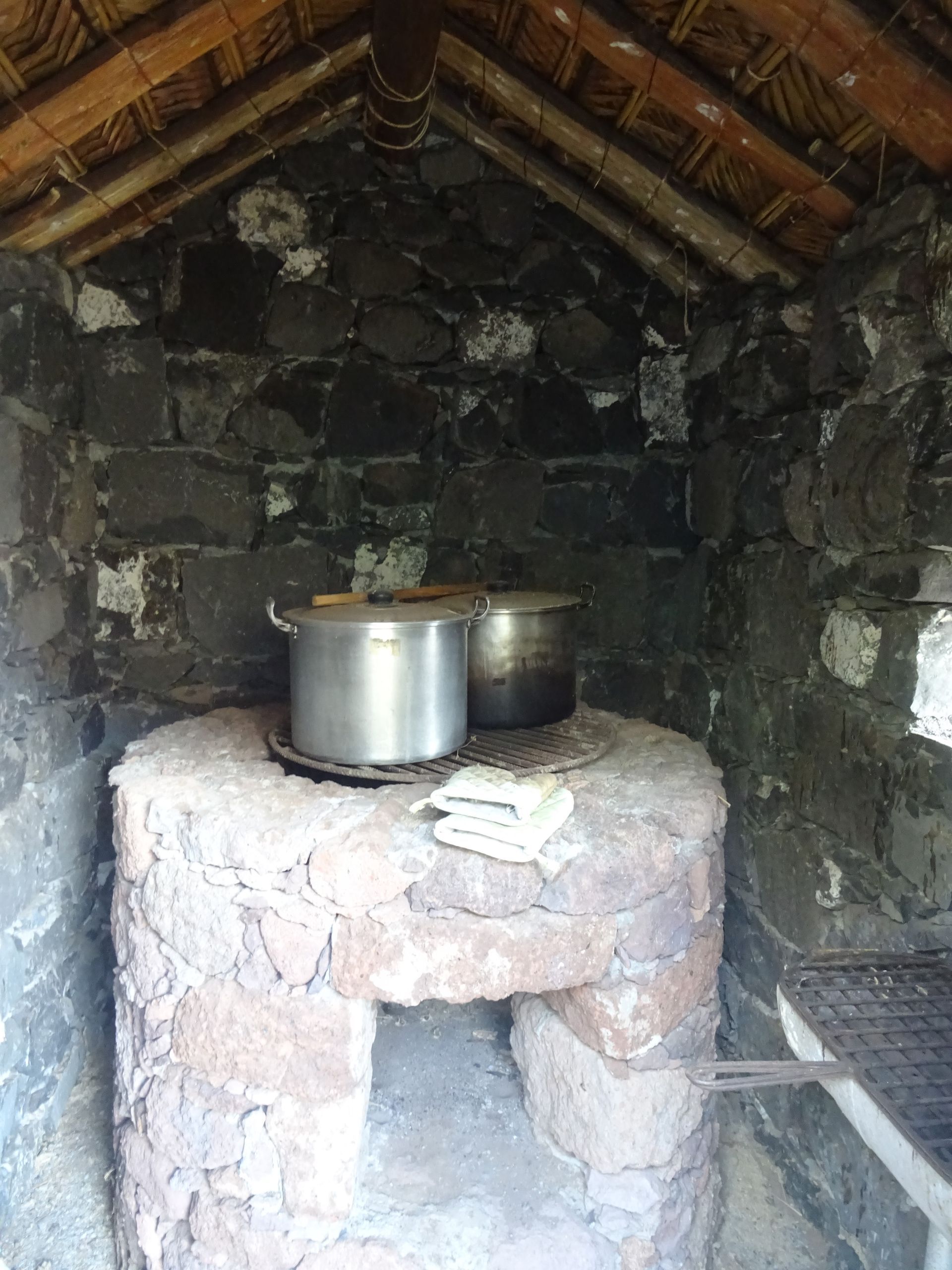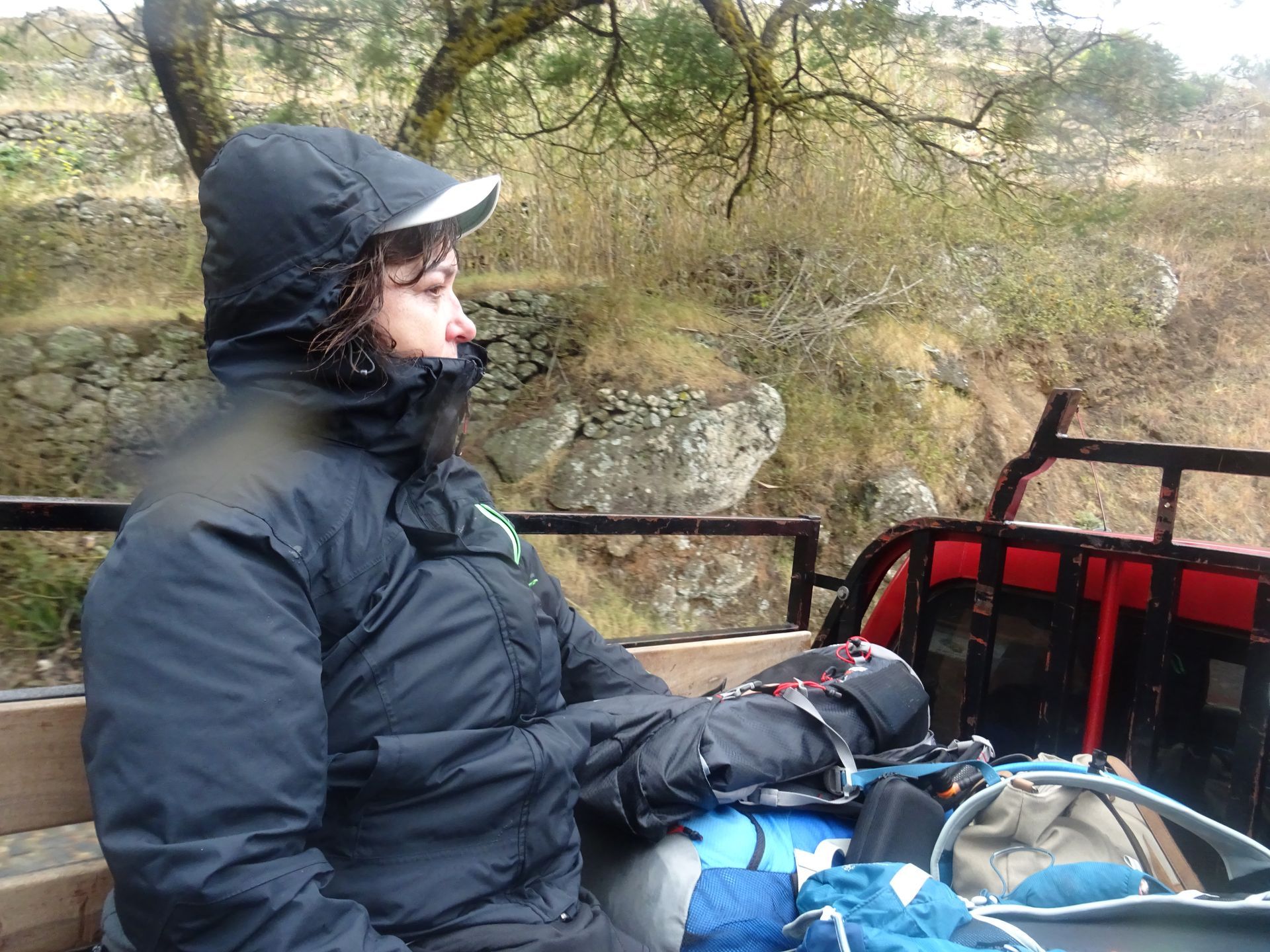 Die Fahrt hinunter nach Ribera Grande, der Hauptstadt der Insel, ist abenteuerlich. Vor jeder Kurve hupt der Fahrer und fährt, wenn kein Gegenhupen ertönt, mit unverminderter Geschwindigkeit weiter. Es ist kalt, der Wind weht uns um die Ohren und wir werden nass. Zum Glück hat uns Diane vor der Abfahrt darauf hingewiesen, dass es besser ist, die Regenjacken anzuziehen. In Ribera Grande halten wir zur Pinkelpause an der Tankstelle. Der Fahrer lässt uns aussteigen und fährt weg, um Zement zu besorgen, wie uns Diane mitteilt. Danach holt er uns wieder ab und wir fahren weiter zu unserem Domizil für die nächsten Tage, dem "Haus am Weg“ im Garça-Tal. Unsere Füße ruhen jetzt auf Zementsäcken. In Coculí müssen wir anhalten, um eine Trauergesellschaft durchzulassen und eine alte Frau spricht Diane an und bittet um eine Mitfahrgelegenheit. Sie steigt vorn zum Fahrer und weiter geht die Fahrt.