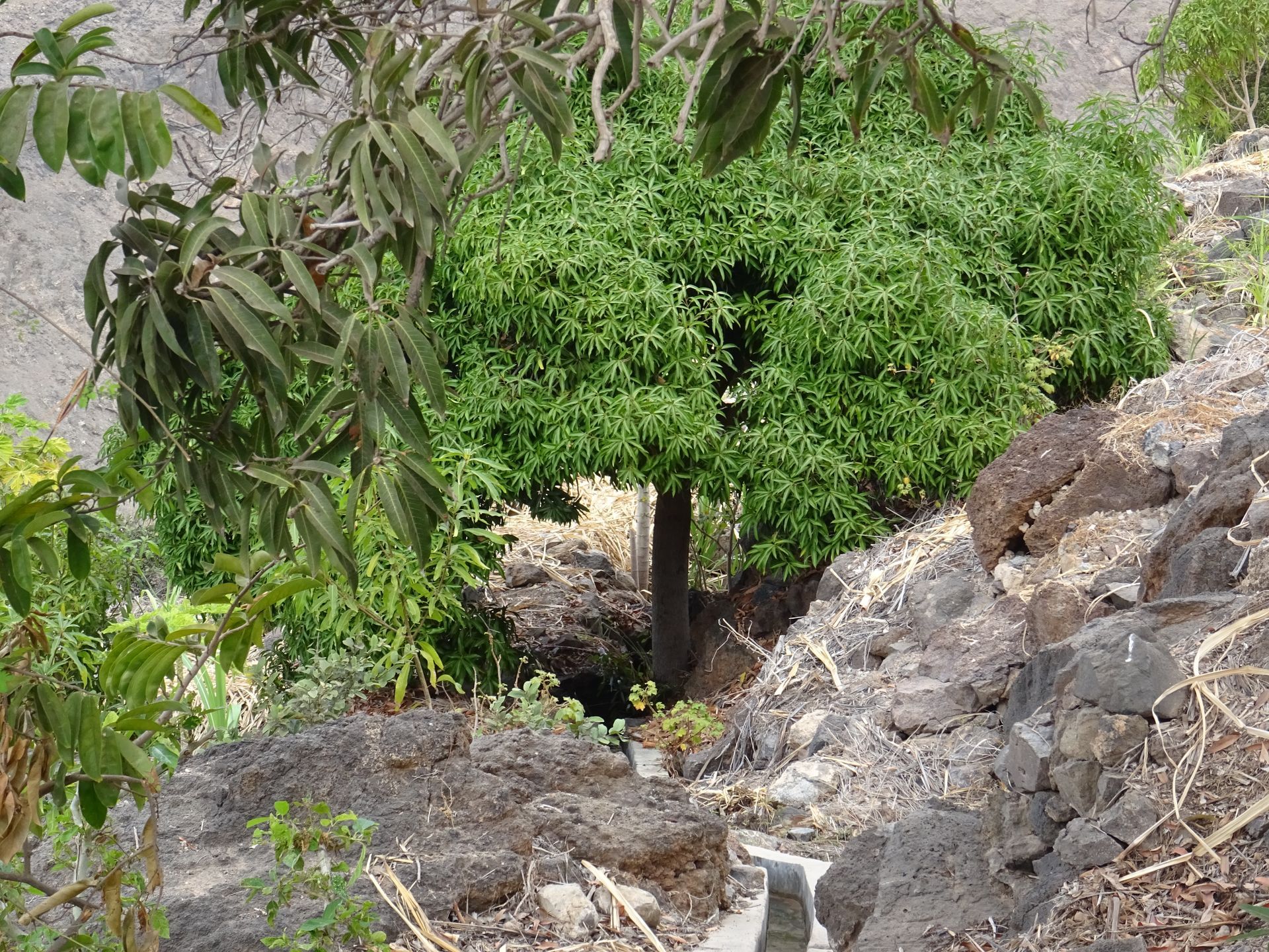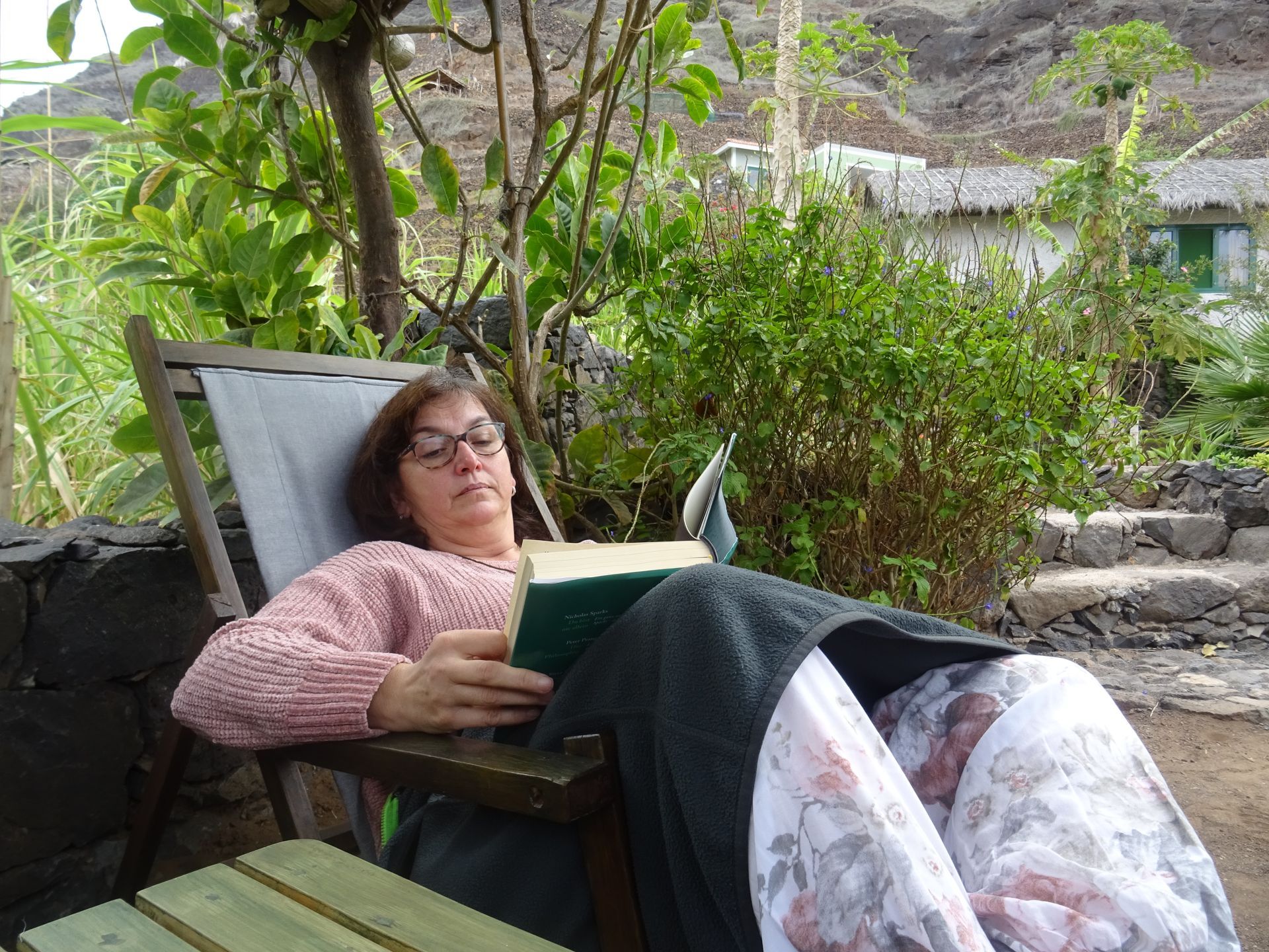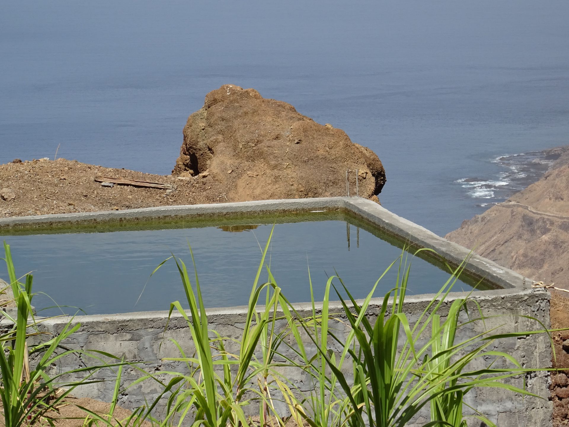 Diane und Marcus bewässern gerade den Garten und wir sehen ihnen eine Weile zu. Offenbar war heute auch Großwaschtag. Einmal in der Woche erhalten sie ihr Trink- und Brauchwasser zugeteilt und das ist wohl heute. Jeden Tag wird eine andere Region, die nicht mit Quellen gesegnet ist, mit Wasser versorgt. Über Levadas gelangt es zu den Häusern und Grundstücken und wird dort in einem großen Becken gesammelt. Wenn dieses voll ist, fließt weiteres Wasser über Rohre und Gräben in Gärten und Felder, bis die Levada wieder für eine Woche versiegt. Wir müssen jetzt nicht auf die tägliche Dusche verzichten, aber man hat uns schon nahegelegt, sparsam mit dem kostbaren Gut umzugehen. Wir dürfen auch nicht unser eigenes Duschgel benutzen, sondern Diane stellt in den Bungalows selbstgemachtes Duschgel zur Verfügung, welches biologisch abbaubar ist. Das komplette Brauchwasser wird in einer Zisterne gesammelt und als Gießwasser für den Garten verwendet. Marcus erzählt uns dann beim Abendessen, dass man auf Santo Antão mehr Steuern zahlen muss, wenn man einen Geschirrspüler oder eine Waschmaschine benutzt, weil man dadurch mehr Wasser verbraucht, als wenn man per Hand wäscht und spült.