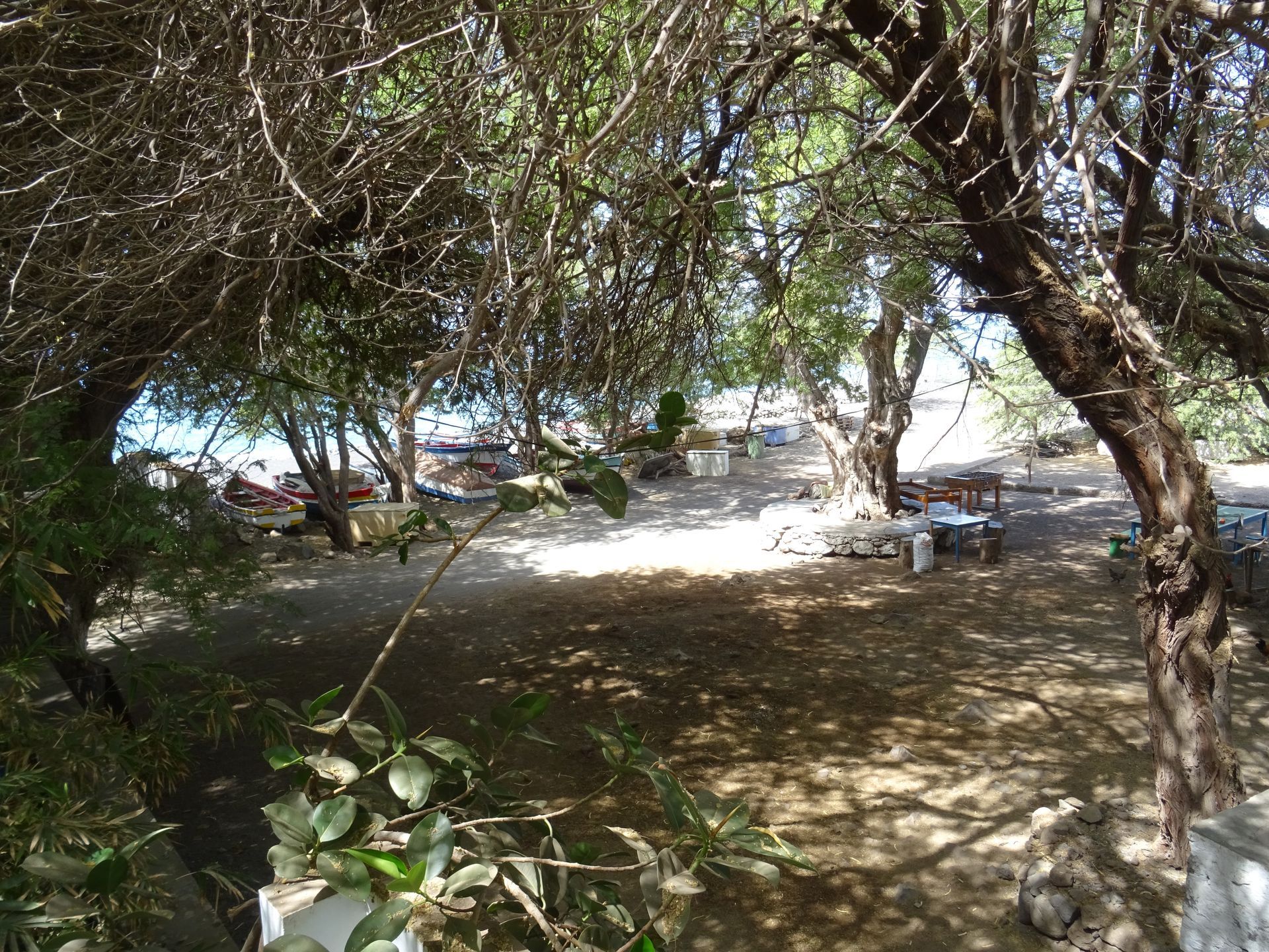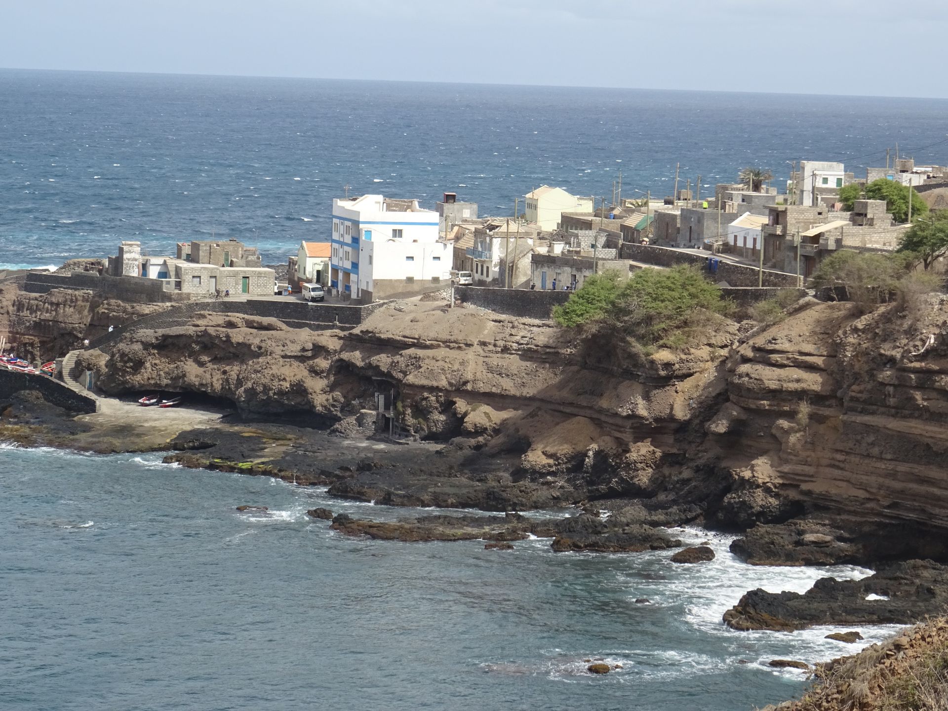 Während wir am Strand den Wellen zusehen, kommen Einheimische den Weg herunter, der an unserer Unterkunft vorbeiführt. Sie gehen an uns vorbei, laufen an der Küste weiter und verschwinden dann hinter einer Felswand. Ich bin neugierig und wir trennen uns. Claudia geht den Weg hinauf zur Unterkunft, ich wende mich der entgegengesetzten Richtung zu und folge den Leuten. So gelange ich in den Küstenort Cruzinha. In einer felsigen Bucht liegen etliche bunte Fischerboote, dahinter finde ich die Bar Sonafish mit Restaurant. Leider kann ich drinnen niemanden entdecken, sonst würde ich mir was zu trinken holen und mich damit nach draußen setzen, um dem Treiben der Dorfbewohner zuzuschauen. So drehe ich einfach nur eine Runde zwischen den Häusern, beobachte Kinder, die ein paar Ziegen und Kühe vor sich hertreiben und ihren Durst im gleichen Wassertrog stillen, aus dem auch die Tiere trinken. Ein Blick in diesen Trog sagt mir, dass ich, wollte ich auch daraus trinken, mir mindestens eine Gastritis einhandeln würde. Wenn nicht sogar mehr!