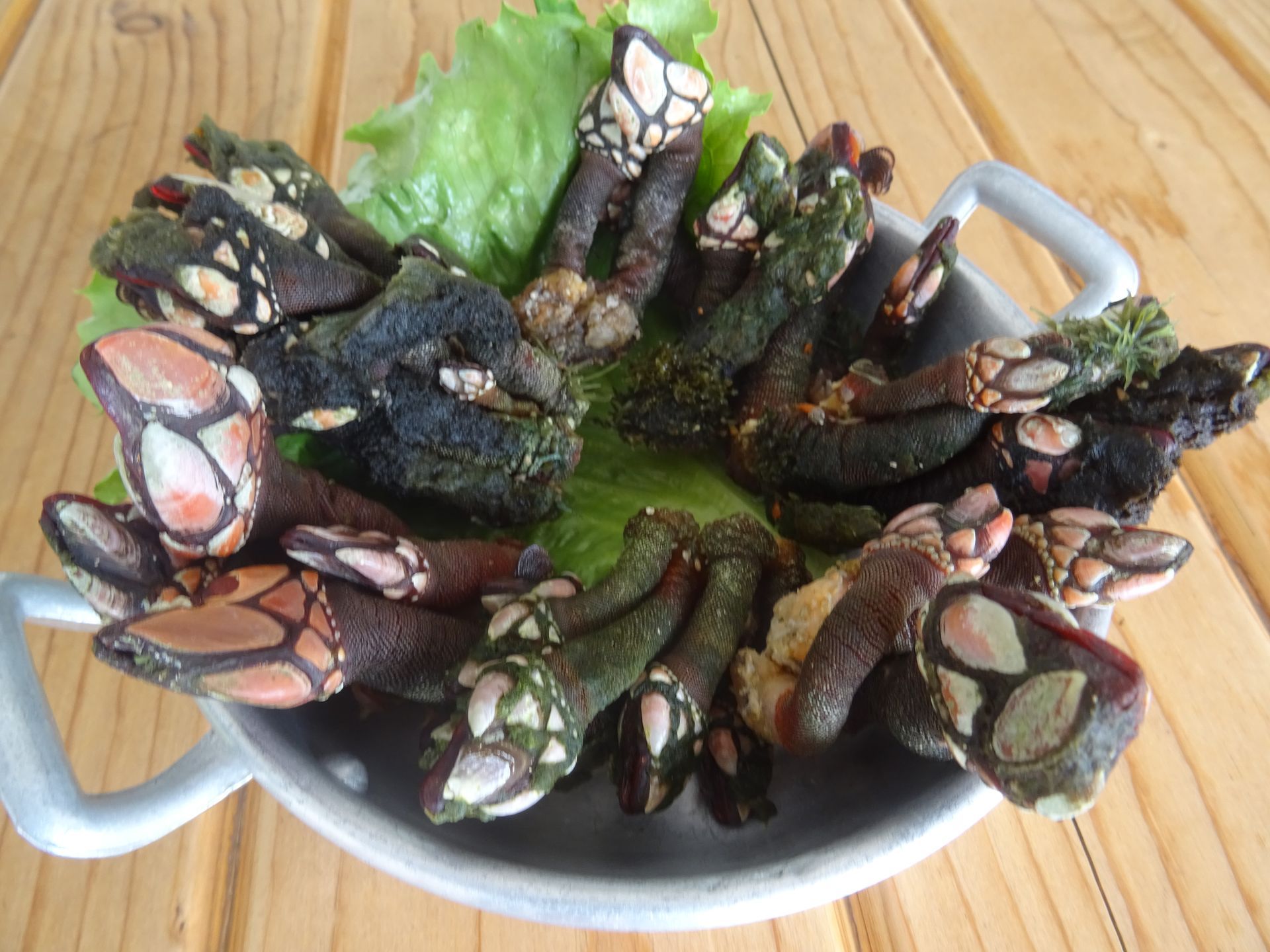 Claudia schläft und da ich sie nicht stören will, verbringe ich den Nachmittag dösend und schreibend im Garten und gehe später auf einen Kaffee ins Sozialhaus, wo Diane mir frische Percebes anbietet, die ein Fischer gebracht hat. Es muss demnach ein Fisch sein. Doch Diane sagt, sie heißen auch Entenmuscheln und gelten in Portugal als sündteure Delikatesse. Ich kenne auch keine Entenmuscheln und beschließe spontan, sie zu probieren. Was mir kurze Zeit darauf serviert wird, sieht aus wie Schildkrötenbeine und ich mache bei der jungen Frau, die Diane in der Küche hilft, erst einen Lehrgang, um zu lernen, wie man diese Dinger isst. Ich bekomme einen großen Schlabberlatz um den Hals gehängt und Diane schützt die Fenster neben dem Tisch mit einem Tuch. Offenbar wird das eine rechte Sauerei! Ich stelle mich ziemlich blöd dabei an, die Dinger aufzubrechen, um an das „Fleisch“ zu kommen. Es schmeckt nicht wirklich, doch ich esse alles auf und brauche danach dringend einen Schnaps.