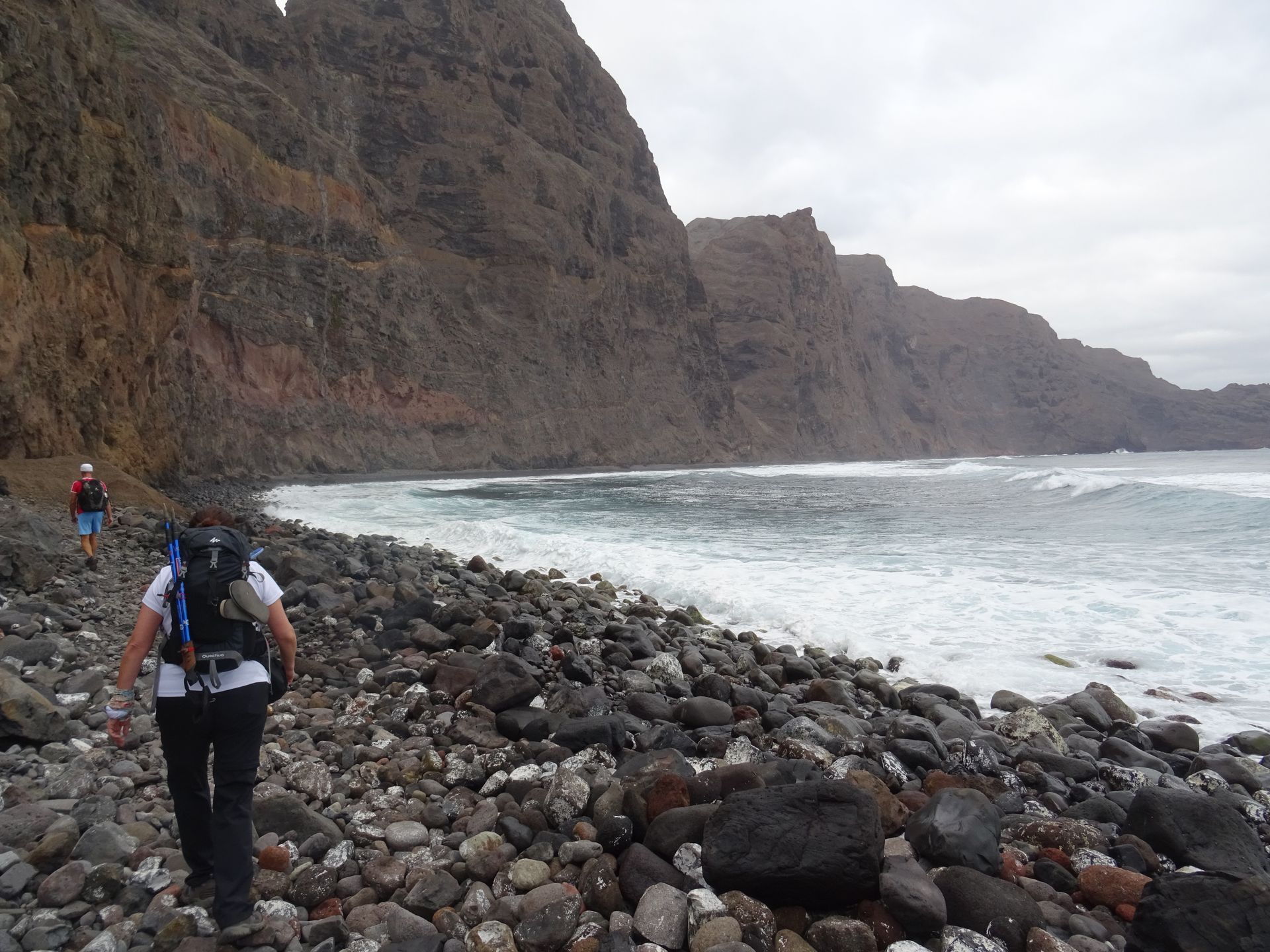 Es sind nicht viele Menschen auf diesem wunderschönen Weg unterwegs, ein paar geführte Gruppen, aber kaum Individual-Wanderer. Ich genieße die Zeit, die ich für mich allein habe. Und doch finde ich es schade, dass Claudia diese Tour nicht mitgemacht hat. Sie ist nicht wirklich schwierig und hätte ihr bestimmt gefallen. Als ich am Spätnachmittag am Kiesstrand unterhalb von Chã d´Igreja ankomme, sehe ich schon von weitem, dass Claudia dort auf einem Felsbrocken sitzt und ins Meer schaut. Ich geselle mich zu ihr und wir plaudern noch ein Weilchen, bevor wir gemeinsam zum Haus am Weg laufen.