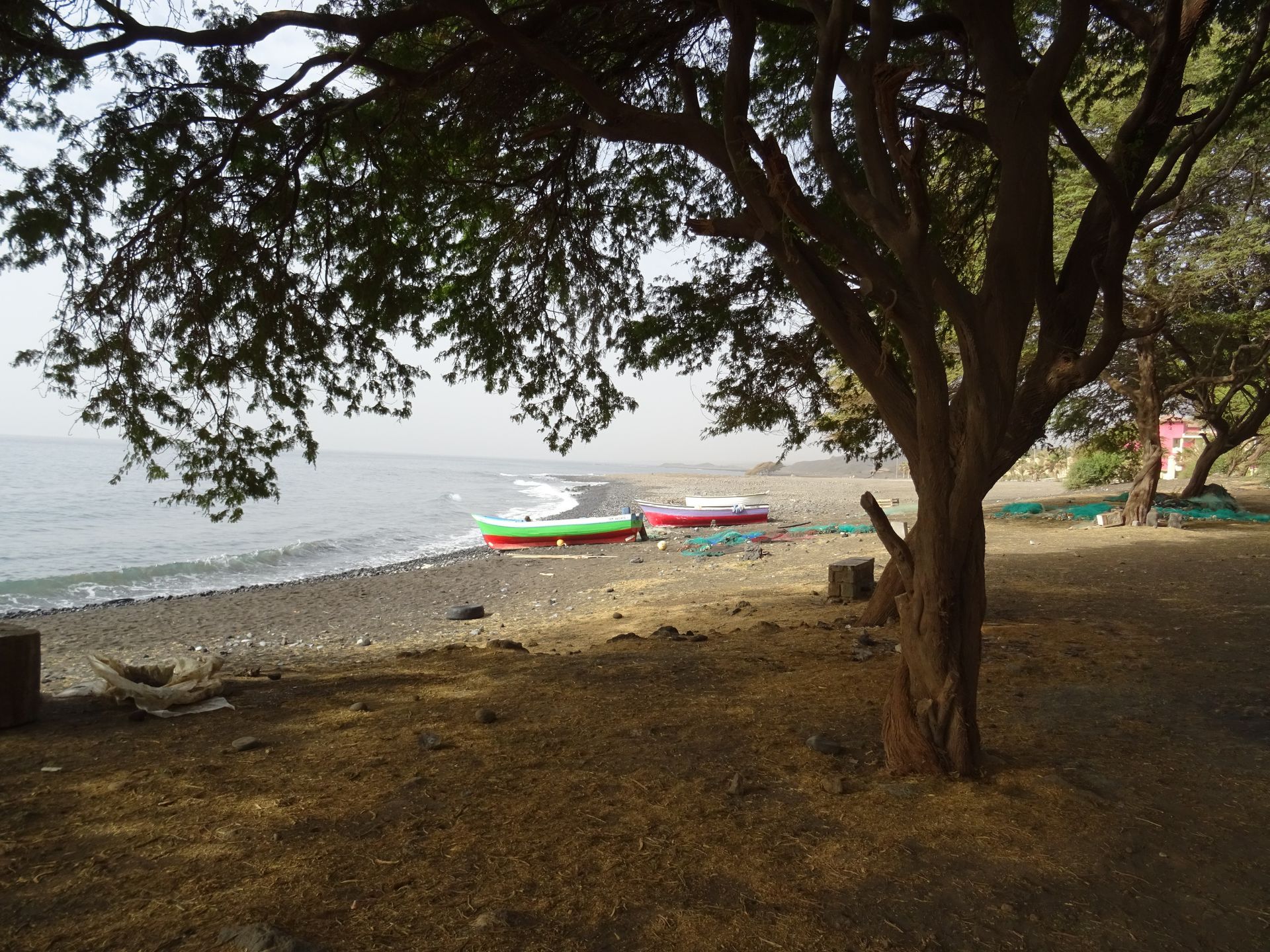 Dieser Strandabschnitt ist übrigens zu bestimmten Zeiten im Sommer gesperrt, weil hier die Riesenschildkröten ihre Eier ablegen und die jungen Schlidkröten dann schlüpfen. Dann helfen die Bewohner von Tarrafal zusammen und sorgen dafür, dass die kleinen Dinger den Weg ins Meer finden.
