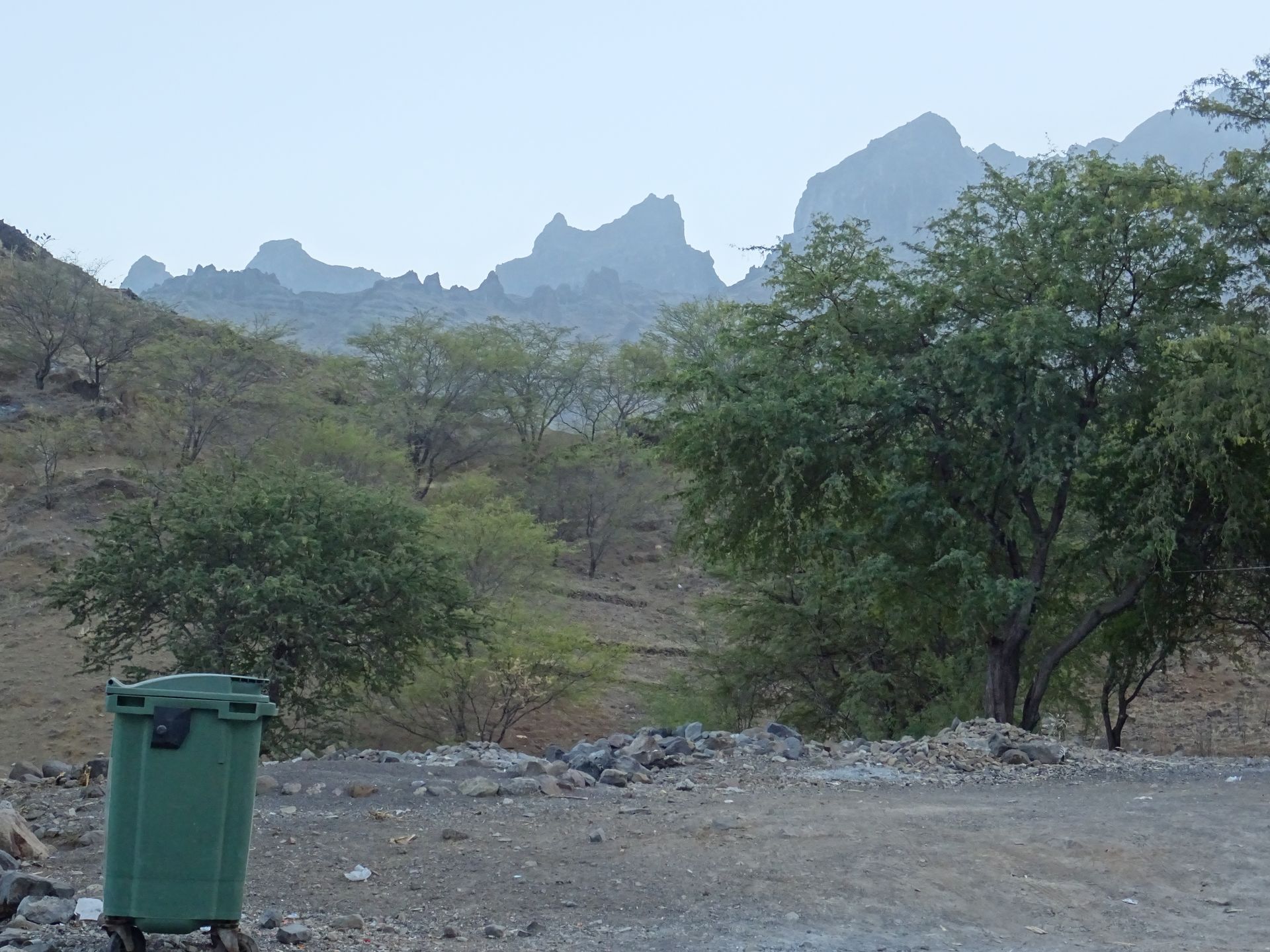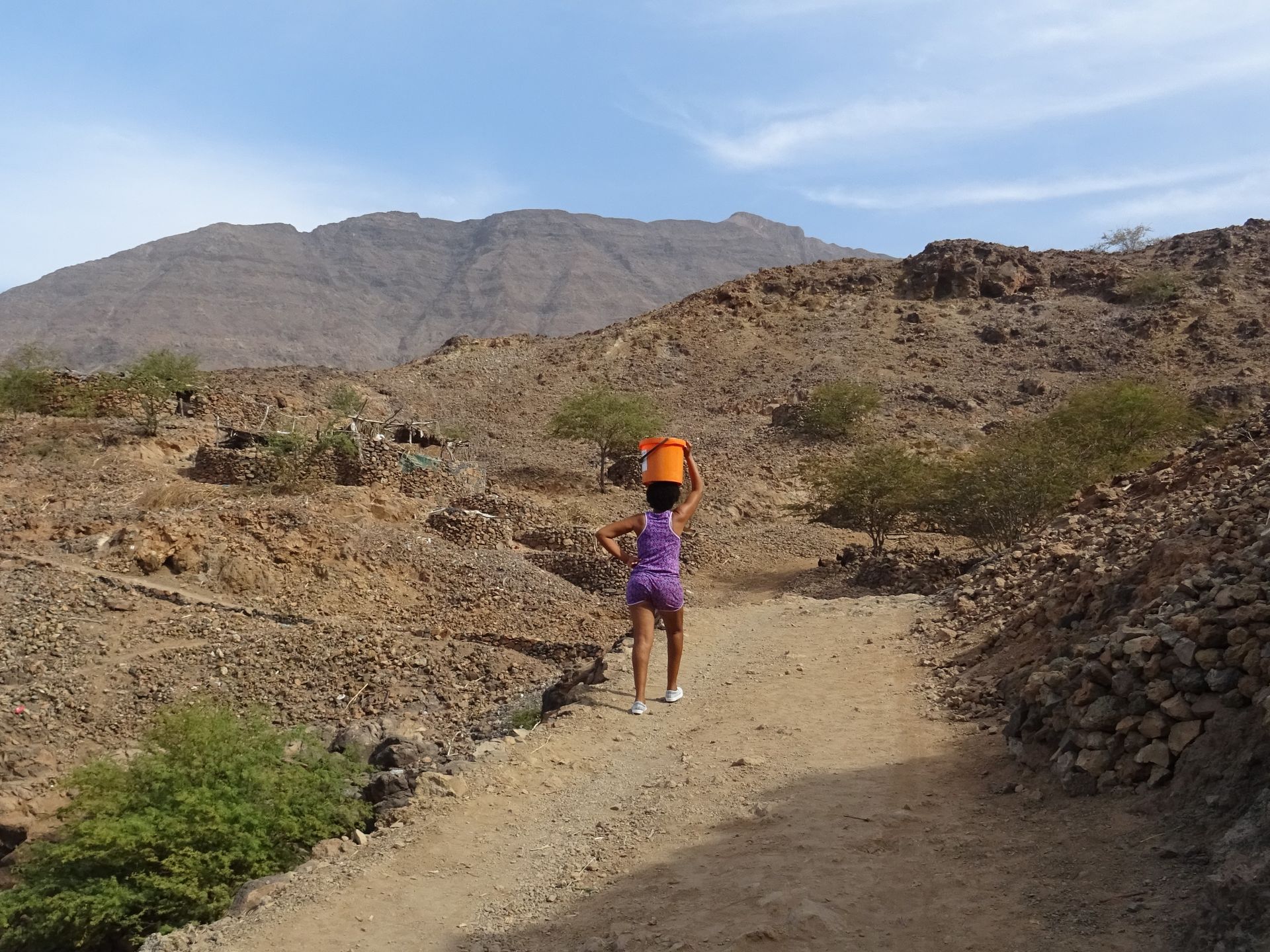 Am Hafen werden wir von zwei Männern abgeholt, der eine ist der Taxifahrer, der andere ist ein Bote von Diane und Marcus, bei denen wir den ersten Teil unseres Urlaubs gebucht haben. Sie fragen, ob wir noch Wasser brauchen, denn wir werden heute gleich mit einer ausgedehnten Wanderung beginnen und Wasser ist das vorherrschende Thema der Kapverdischen Inseln. Das sollen wir während unseres Aufenthalts hier tag-täglich noch erfahren. Wenn man den Klimawandel irgendwo spürt, dann hier. Die Kap Verden liegen mitten in der Sahel-Zone.