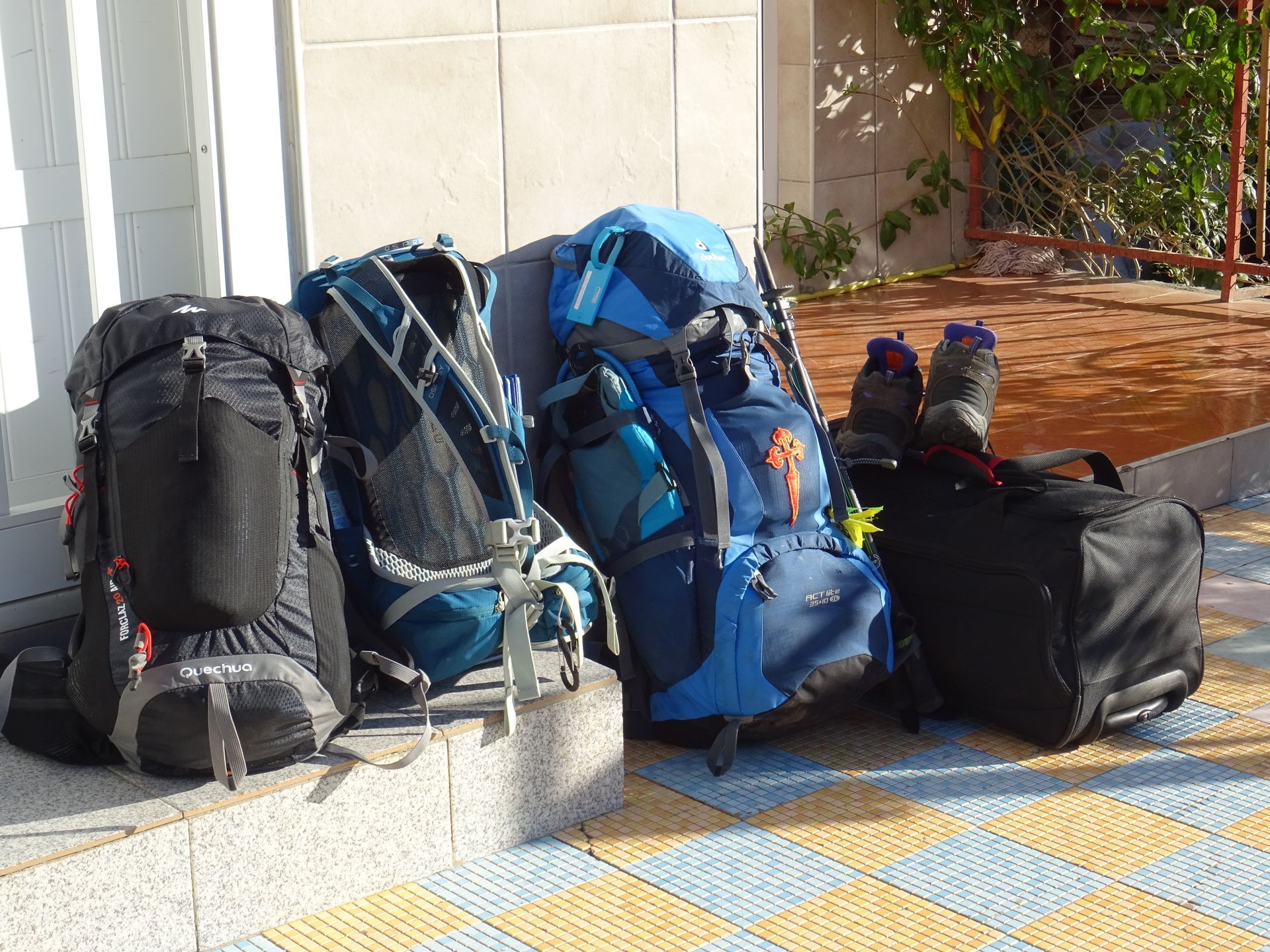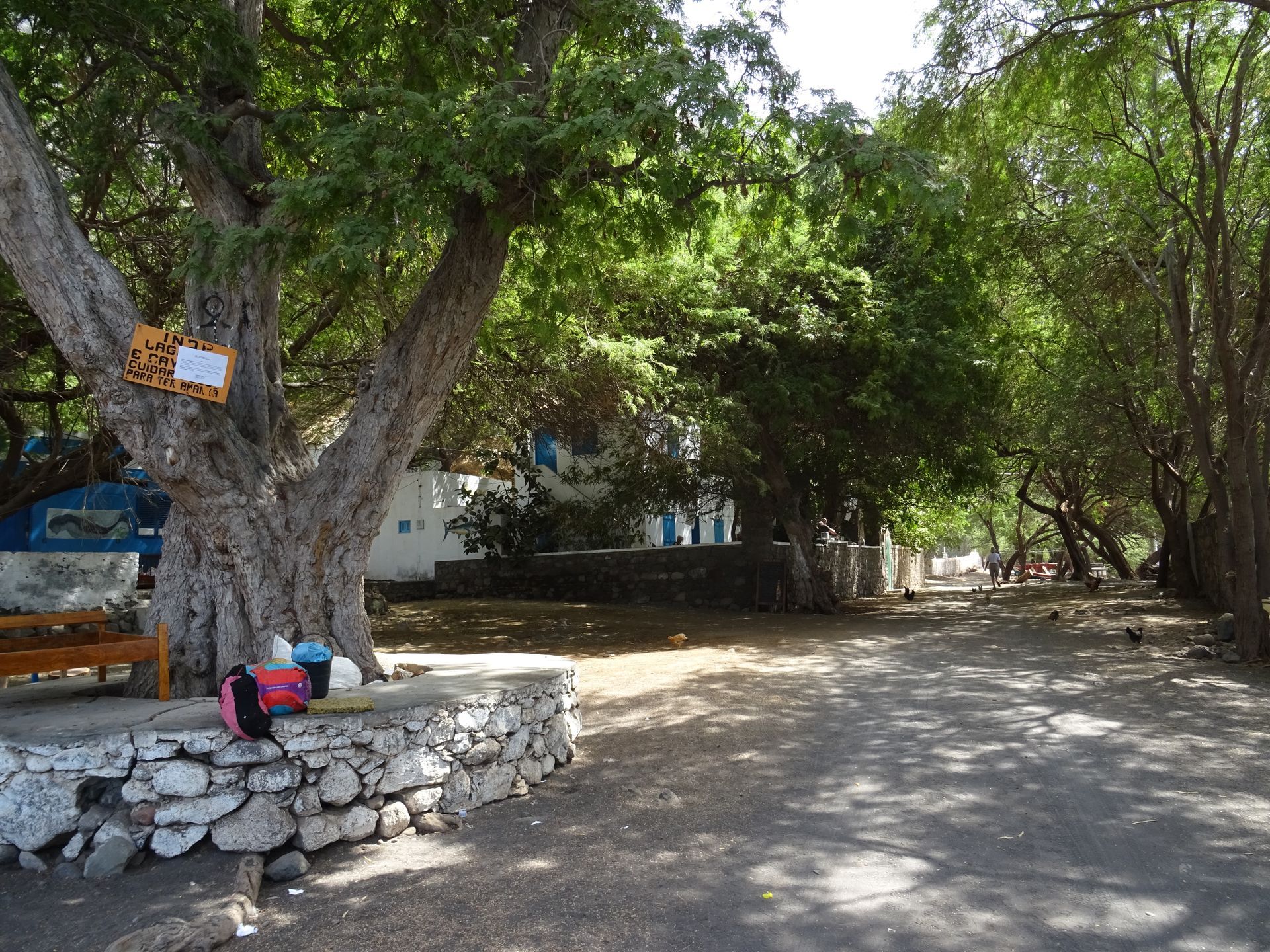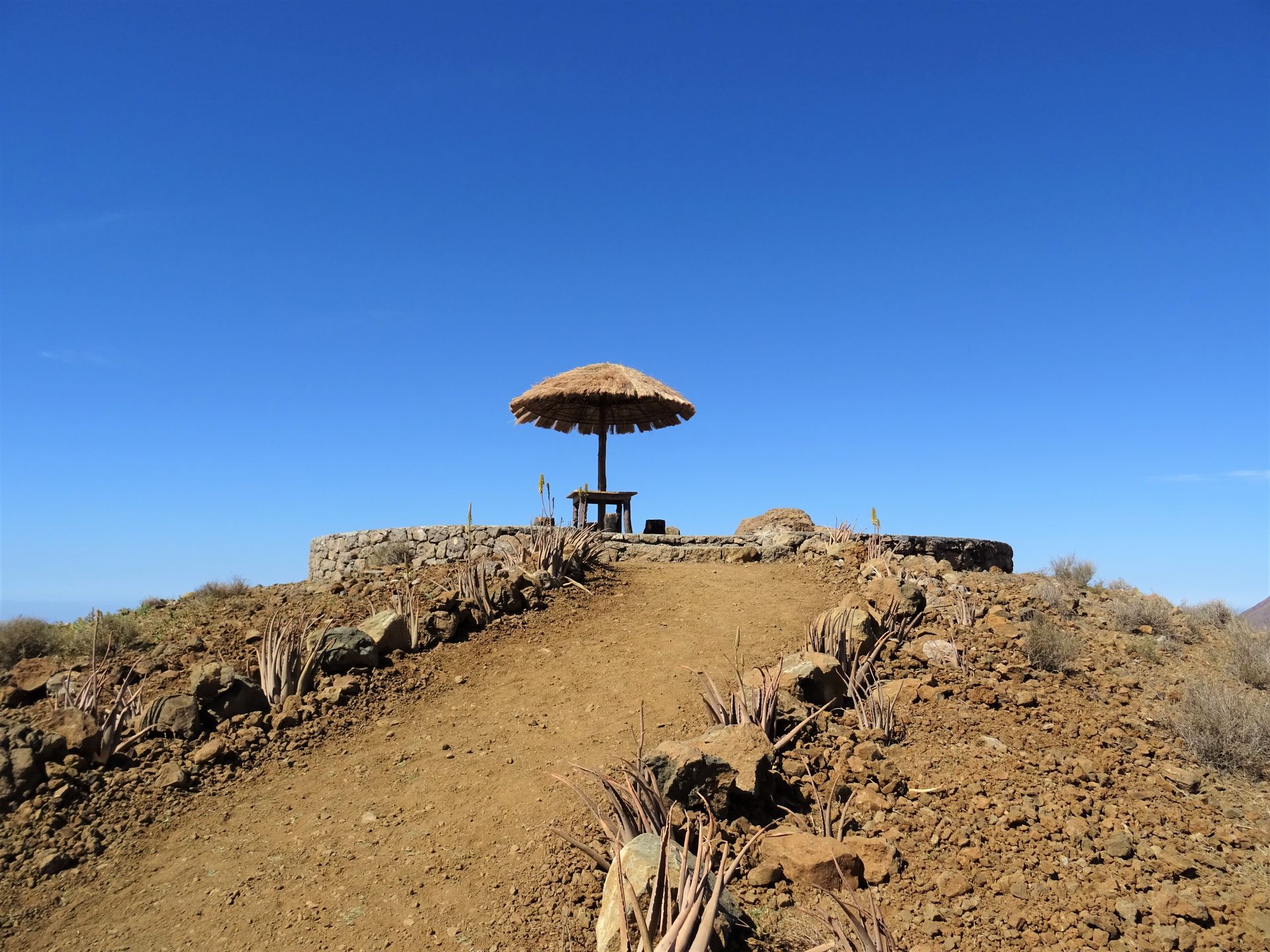 Ab 09:30 Uhr sitzen wir mit unserem Gepäck in bester Inselmanier draußen vor der Tür und warten. Die drei Österreicher, die wir gestern Abend noch kennenlernten, verlassen kurz darauf das Haus und wandern mit ihren großen Rucksäcken die Straße hinauf. Sie wollen nach Norte und haben heute noch 1600 Höhenmeter in der prallen Südhang-Sonne vor sich. Also ich wäre da spätestens um 04:30 Uhr aufgebrochen, nicht erst kurz vor zehn. Aber jedem das Seine!