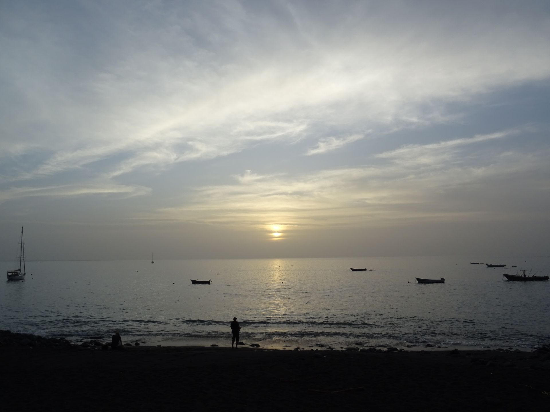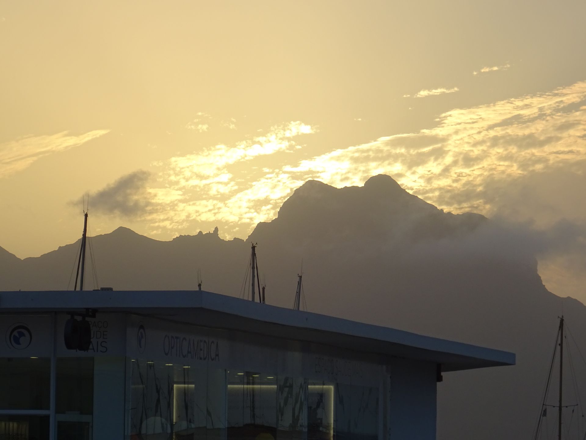 Über uns ragen in zwei Reihen Bergketten auf. Hier muss es sich wohl um die Bordeira de Norte handeln, in die uns Marcus morgen hatte schicken wollen. Gut, dass wir uns da anders entschieden haben! Wir werden morgen mit dem Aluguer nach Porto Novo fahren und uns diese Stadt etwas genauer ansehen. Nach der Umbuchung haben wir dafür nämlich nächste Woche keine Zeit mehr.