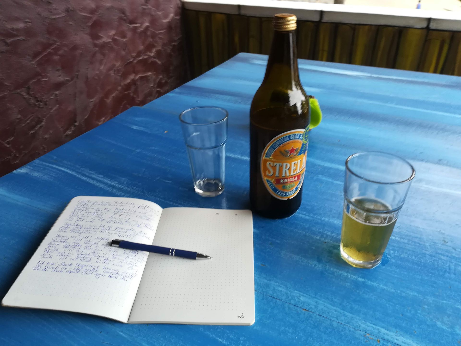 Nach dem Duschen schläft Claudia erst einmal eine gute Stunde und ich hole mir unten ein Bier, das es nur in Literflaschen gibt und deutlich stärker ist als unser Bier zuhause. Damit lasse ich mich auf der Terrasse nieder und beginne mit meinem Tagebuch. Als Claudia später zu mir kommt, um mir mit meiner großen Flasche Bier zu helfen, sieht sie schon wieder besser aus. Sie kann sich keinen Reim darauf machen, was sie am Nachmittag so aus den Latschen gekippt hat.