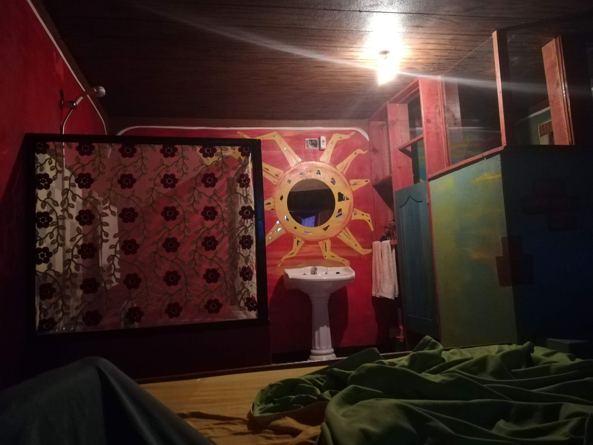 In der „Black Mamba“ werden wir von Liane empfangen, einer temperamentvollen, rothaarigen Italienerin, die dieses Hippie-Hotel betreibt. Wir bekommen ein sehr schönes, sehr buntes Zimmer in diesem verschachtelten Gebäude, bei dem man manche Zimmer nur über Leitern erreicht. Wir gelangen zu unserem Zimmer zum Glück über eine ganz normale Treppe, die zur vorderen Dachterrasse und von da aus zu diversen Zimmern führt. Dusche und WC sind direkt im Zimmer und nur durch eine halbhohe Pendeltüre vom Zimmer abgetrennt. Claudia weist mich gleich an, dass ich das Zimmer zu verlassen habe, wenn sie aufs Klo muss. WLAN gibt es nur draußen auf der Terrasse und unten im Lokal. Und Liane hat offenbar einen Hass auf ihren Ex, denn das Passwort lautet: KILLBILL!