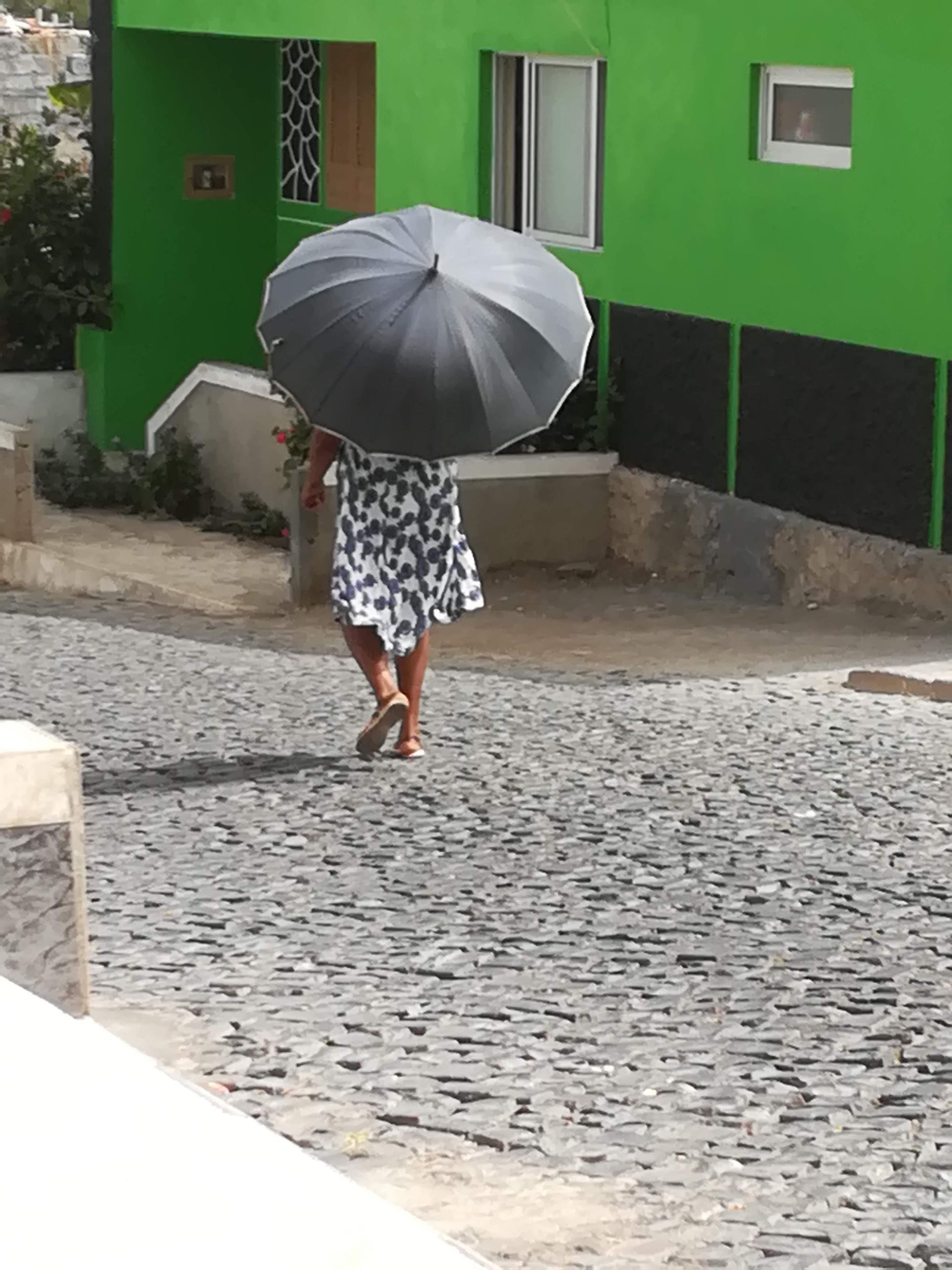 Eine ältere Dame, schick gekleidet, verabschiedet sich gleich darauf gesten- und wortreich von Senhor Adalbert, wuchtet geschickt ihren Gepäckkorb auf den Kopf und tritt barfuß den Weg nach Chã d´Igreja an. Sie will noch vor Einbruch der Dunkelheit im Höllental ankommen. Das sind keine drei Stunden mehr! Wir haben für die ganze Strecke acht Stunden gebraucht, also vom Höllental bis hierher gute sieben! Mit Schuhen und gut zwanzig Jahre jünger als die einheimische Frau! Irgendwas machen wir falsch!