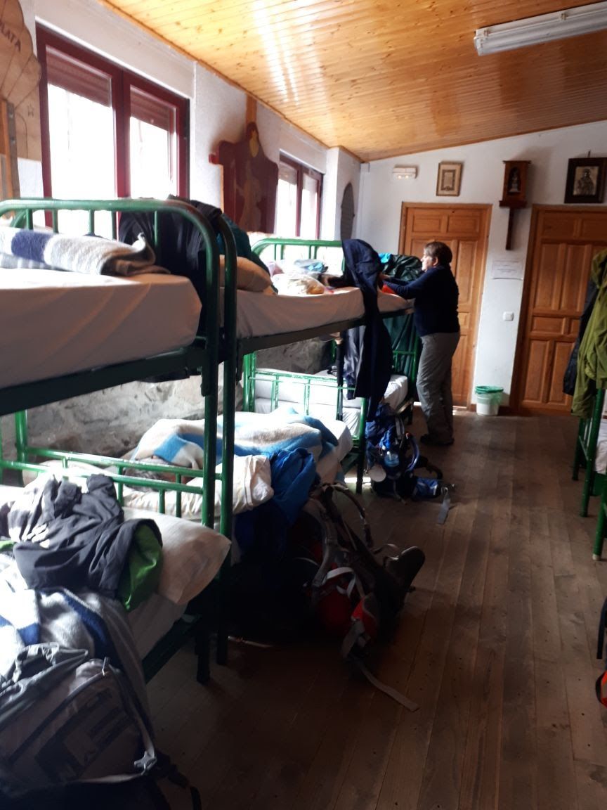 Abends essen wir alle gemeinsam in der Herberge, dann suchen wir unsere Pritschen auf. Wir teilen uns unseren Schlafraum mit dem jungen, spanischen Pärchen. Die beiden sind auf Hochzeitsreise. Die anderen sind alle im zweiten Schlafraum untergebracht. Der Wetterbericht hatte übrigens recht: es hat den ganzen Nachmittag über geregnet.