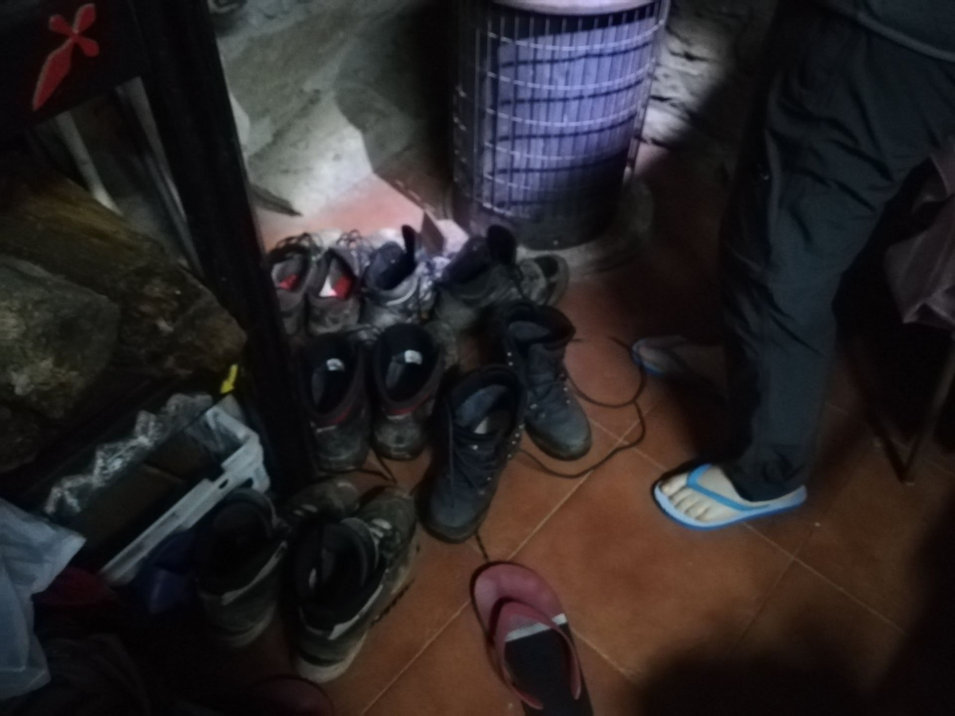 Das Wasser in den Duschräumen ist tatsächlich kalt und ich entschließe mich zur Katzenwäsche. Die Klamotten werden auch nur kurz durchs kalte Wasser gezogen und bevor wir ins Dorf gehen, um nach einer Bar zu suchen, in der wir uns aufwärmen können, spanne ich meine Wäscheleine über den Ofen und hänge unsere Wäsche zum Trocknen auf. Als wir eine Stunde später wieder zurückkommen, hat jemand unsere Wäsche abgenommen und auf verschiedene Bettpfosten verteilt. Auf meiner Leine hängen jetzt Männerunterhosen, Socken und ein Männerhemd. Ich stelle jedem, der fragt, gerne die Wäscheleine zur Verfügung, die ich auf allen Wanderungen im Rucksack dabeihabe. Aber ungefragt einfach meine noch feuchte Wäsche abnehmen und die eigene draufhängen – das geht gar nicht. Gerade als ich die fremde Wäsche von meiner Leine nehme, kommt deren Besitzer in den Raum, sieht, was ich da mache, und beschwert sich lautstark, dass der Ofen für alle da ist. Ich bin natürlich nicht so rücksichtslos, den Ofen die ganze Zeit zu blockieren und lasse meine Wäsche gern anderswo resttrocknen. Das erkläre ich ihm auch. Aber auch, dass dies meine Leine ist, die ich jetzt an mein Bett spanne, damit ich meine Wäsche dort aufhängen kann. Er kann seine Wäsche jetzt ja ans Ofenrohr hängen oder auf die Herdplatte legen. Ich spanne meine Leine dann sogar zwischen mehreren Betten auf, lange genug ist sie ja, und jeder der Bettenbewohner darf seine Wäsche draufhängen.