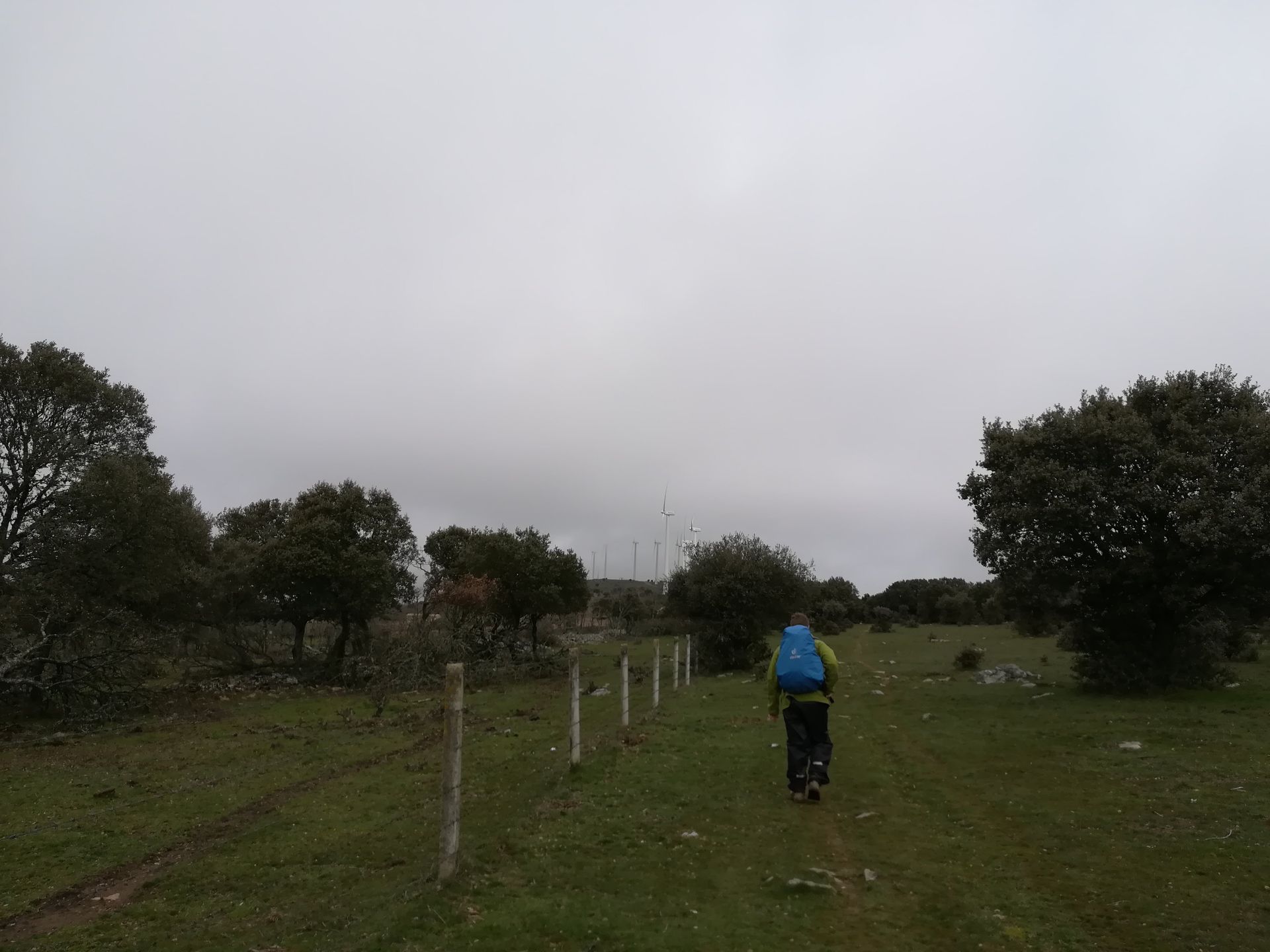 Der Weg zieht sich heute, was bei 28 km aber auch keine von uns beiden wirklich erstaunt. Am Nachmittag wird das Wetter auch besser und bei Sonnenschein und angenehmen Temperaturen ziehen wir durch eine wunderschöne Heidelandschaft. Dabei wandern wir an etlichen Viehweiden vorbei, allesamt mit Maschendraht eingezäunt. Das Vieh auf diesen Weiden wird stets von mehreren großen Herdenschutzhunden bewacht, und spätestens jetzt zweifle ich nicht mehr daran, dass das, was Roswitha gestern gesehen hat, tatsächlich ein Wolf war.