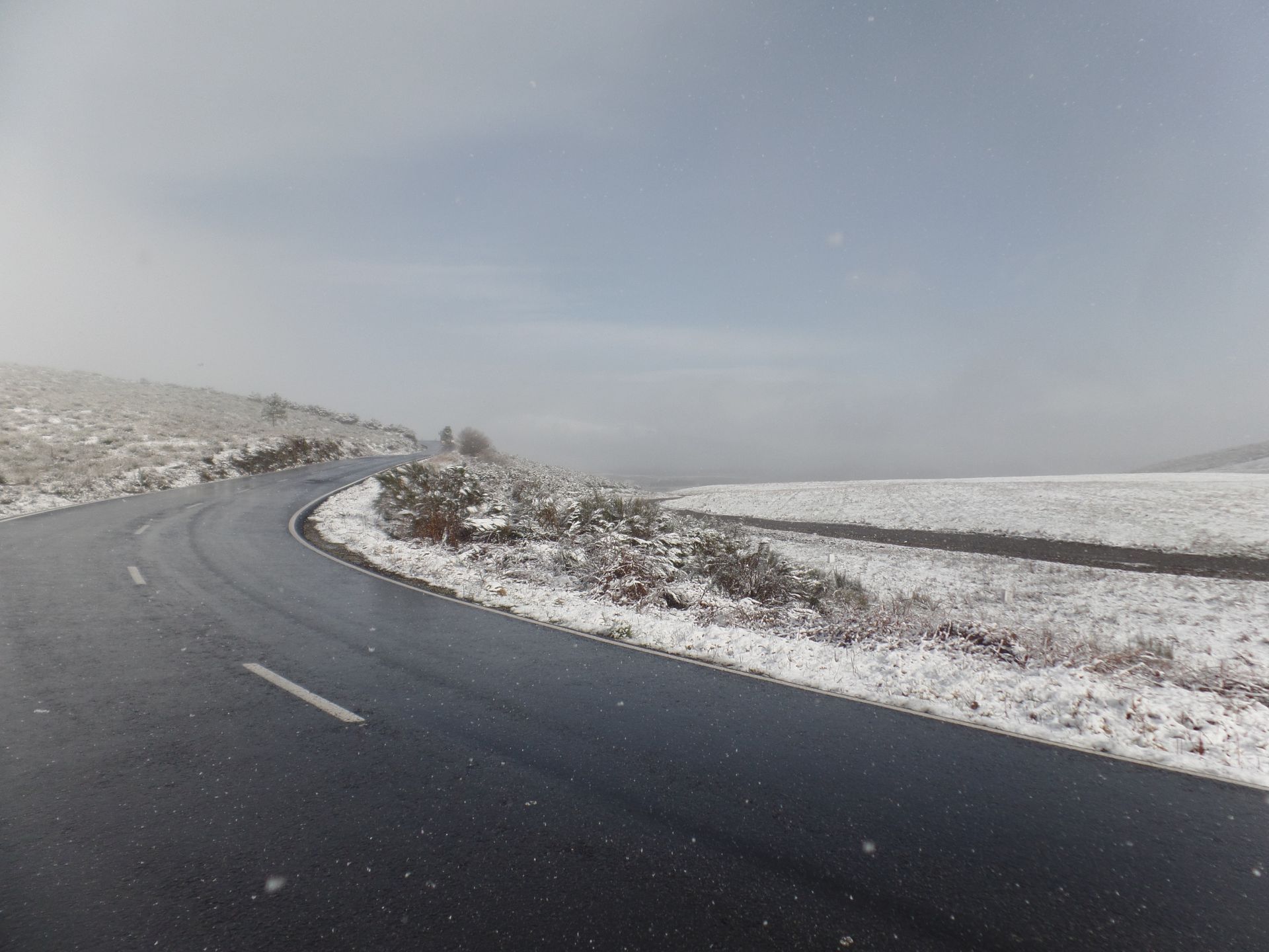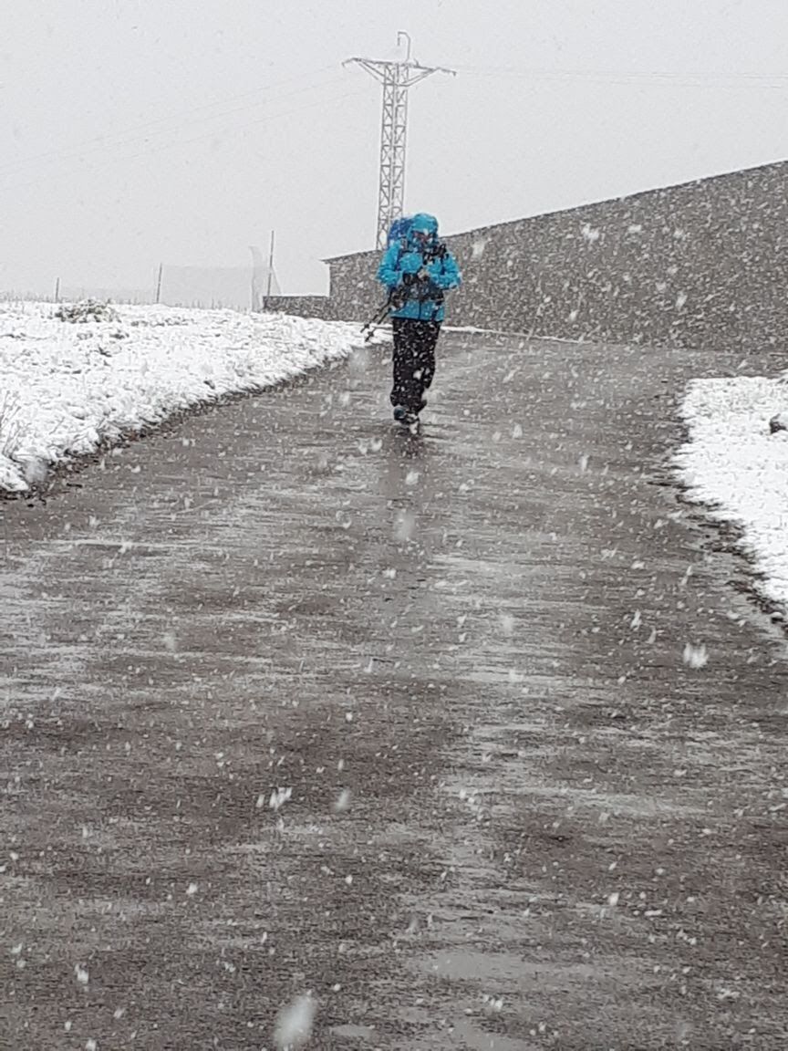 Wir wachen gegen 7 Uhr auf, ganz ohne Bisse oder Stiche. Um 7:30 Uhr gibt es Frühstück, danach packen wir unsere Siebensachen zusammen. Als wir das Haus verlassen, finden wir draußen eine geschlossene Schneedecke vor. Das habe ich in Spanien auch noch nicht erlebt. Dass es im April viel regnen kann, weiß ich. Aber Schnee? Vor drei Jahren hatten wir um die gleiche Zeit 40°C. Allerdings im Süden, in Andalusien.