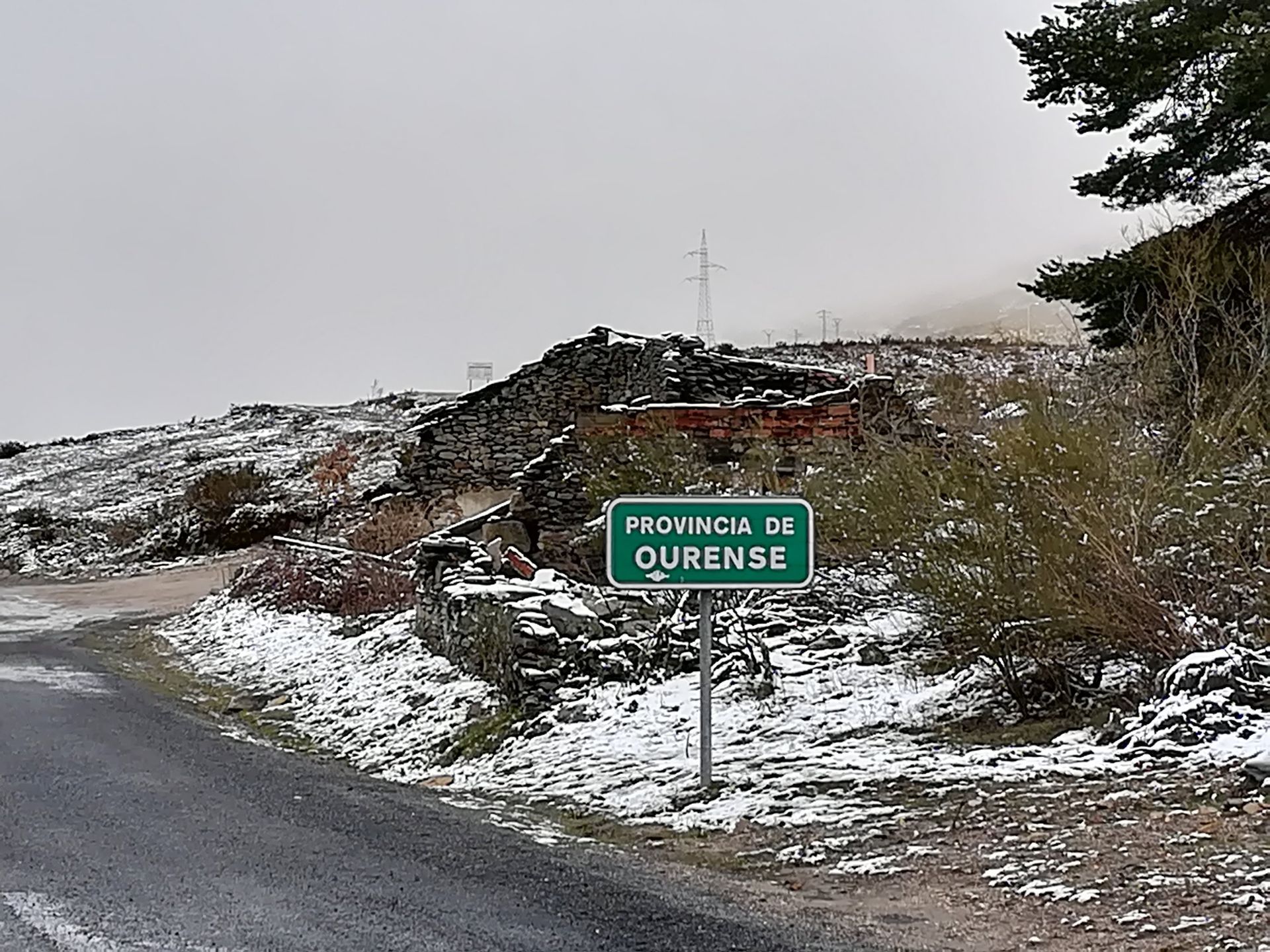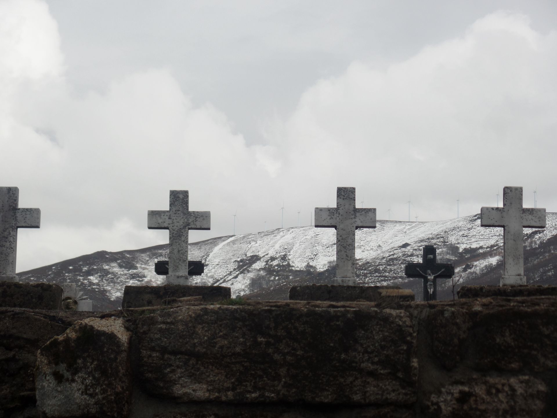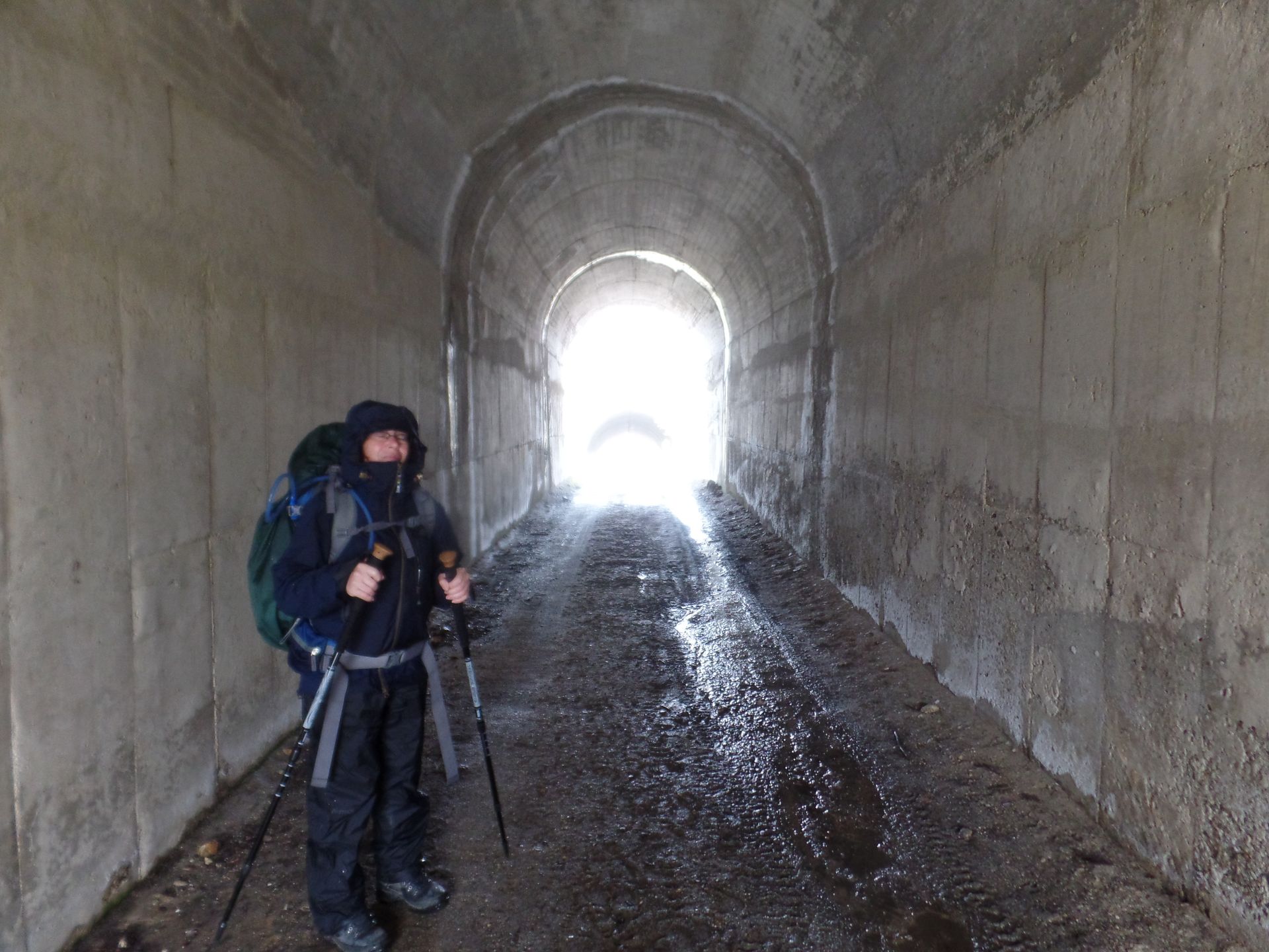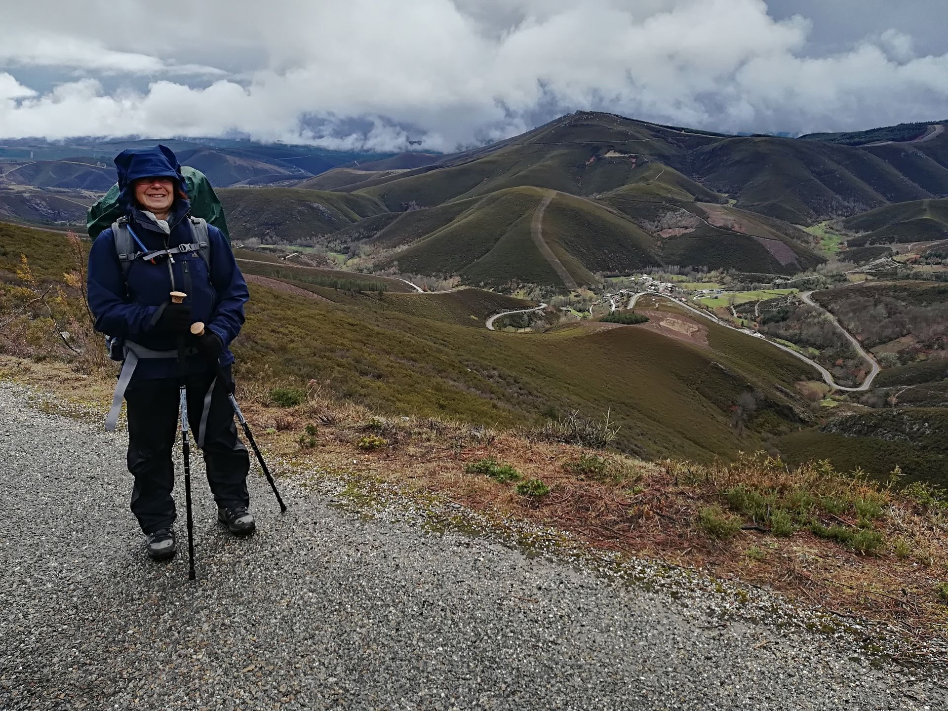 Eine ganze Woche sind wir jetzt schon unterwegs und es ist immer noch kalt und regnerisch. Für die Strecke bis zum Pass hinauf brauchen wir gute zwei Stunden und überholen dabei die Französin, die am Morgen zusammen mit uns die Herberge verlassen hat, aber ohne Frühstück gleich losgelaufen ist. Kurz vor dem Pass müssen wir durch einen Tunnel und als wir auf der bergzugewandten Seite wieder herauskommen, trauen wir unseren Augen nicht. Es schneit! Wir sind völlig durchfroren und da es sowieso schon auf Mittag zugeht, kehren wir im Hotel Padornelo oben am Pass ein und gönnen uns ein Mittagessen. Die Französin schließt sich uns an und es kommt eine angeregte Unterhaltung zustande. Als wir später wieder aufbrechen, verlieren wir sie aber irgendwie und sollen sie an diesem Tag auch nicht noch einmal sehen.