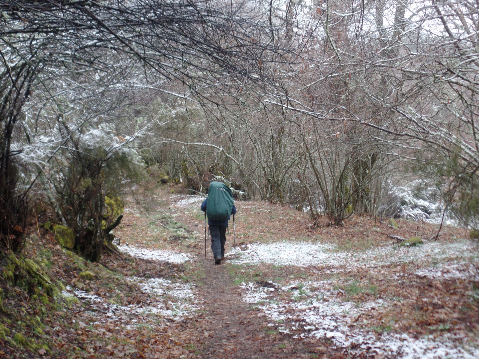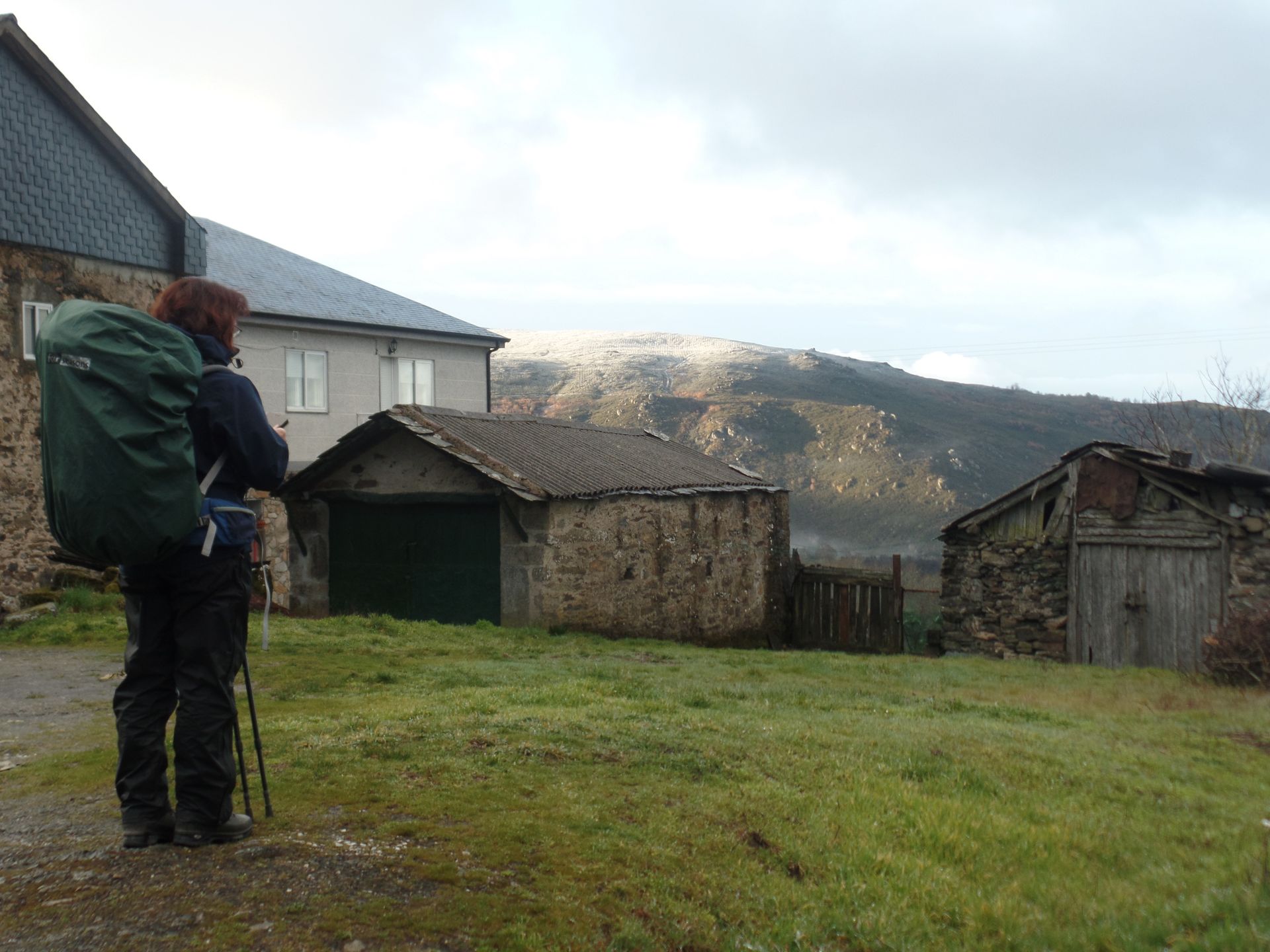 Der Abstieg verläuft zunächst noch ein Stück auf der N525, verlässt diese aber bald und führt durch eine wunderschöne Landschaft. Es schneit immer weiter, weshalb heute erstmals die Handschuhe zum Einsatz kommen. Bereits um 13:45 Uhr beenden wir unsere heutige Wanderung im Dorf Lubián. Ich habe hier in einer Pension ein Zimmer reserviert und bin bei diesem Wetter froh, dass die Etappe so kurz ist. Anstrengend genug war sie ja mit der Pass-Überquerung.
