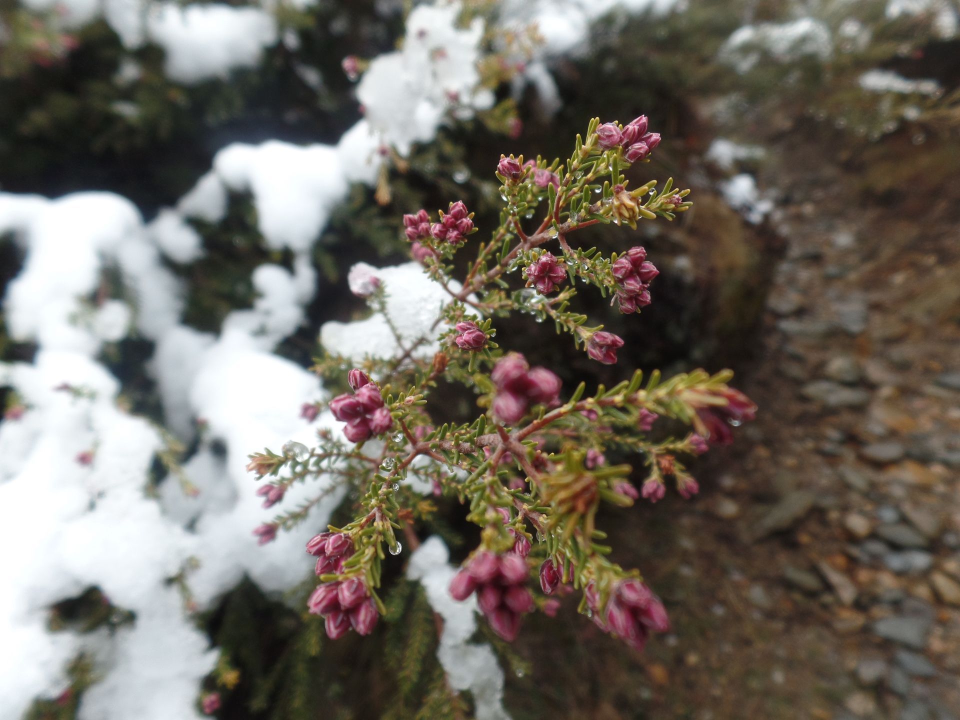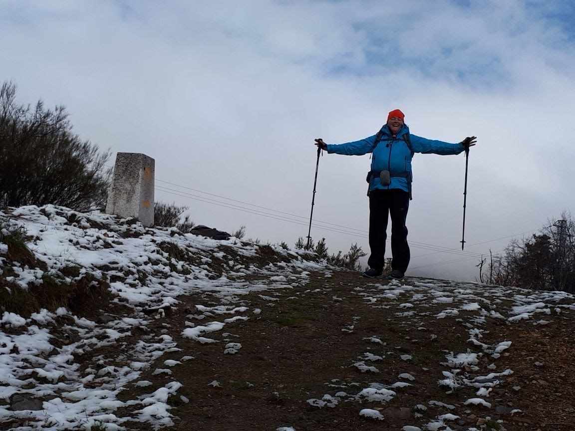 Der Weg hinab zur Kirche Tuiza ist aufgeweicht und rutschig, doch der Aufstieg zum 1260 m hoch gelegenen Pass A Canda führt uns durch eine traumhafte Winterlandschaft. Um uns herum ist der Ginster, Thymian und Rosmarin kurz vor der Blüte. Die Knospen sehen so aus als würden sie jeden Moment aufbrechen, was sie bei dieser Kälte sicher nicht tun werden. Schade, als wir im letzten Jahr mit dem Zug durch diese Gegend hier kamen, leuchteten die Berghänge blau, violett und gelb und ich hatte gehofft, jetzt durch diese Blütenpracht wandern zu können. Aber Schnee ist auch was Schönes und man schwitzt nicht so stark!