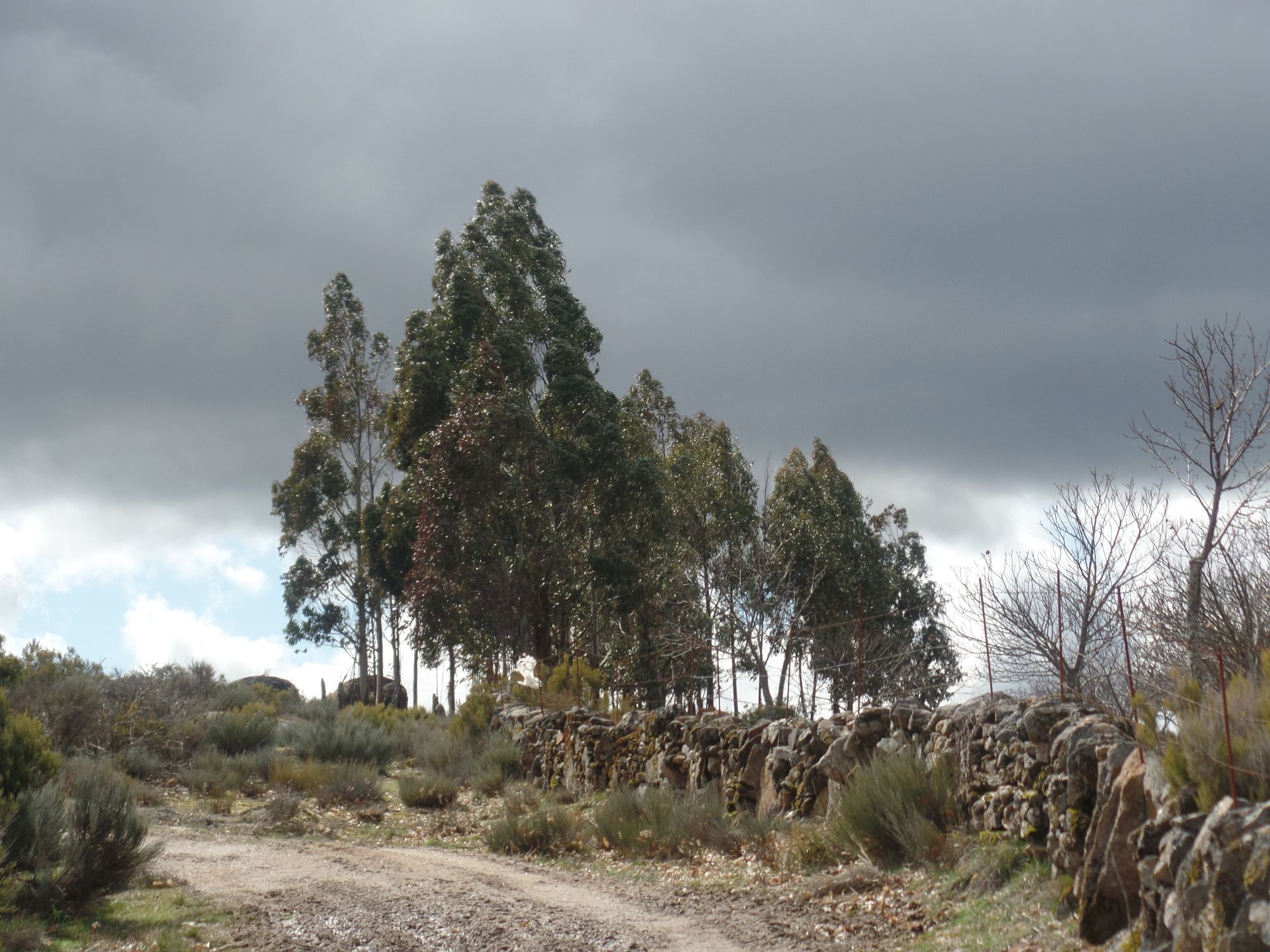 In der Ferne taucht ein Bushäuschen auf und wir freuen uns auf eine Pause unter dem schützenden Dach. Doch leider stellen wir enttäuscht fest, dass dieses Dach sehr löchrig ist und am Boden das Wasser kniehoch steht. So ziehen wir weiter durch eine Ansammlung halb verfallener und doch teils bewohnter Häuser. Es ist eine trostlose Gegend, durch die wir hier wandern. Doch dann reißt plötzlich die Wolkendecke auf und er liegt direkt vor uns: der Stausee. Muss das ein Anblick sein, wenn hier alles blüht! Die Hügel sind übersät mit Sträuchern aller Art: Ginster, Rosmarin, Heidekraut, Thymian, Salbei, und dazwischen immer wieder Mimosen. Schade, dass uns diese Blütenpracht versagt bleibt!