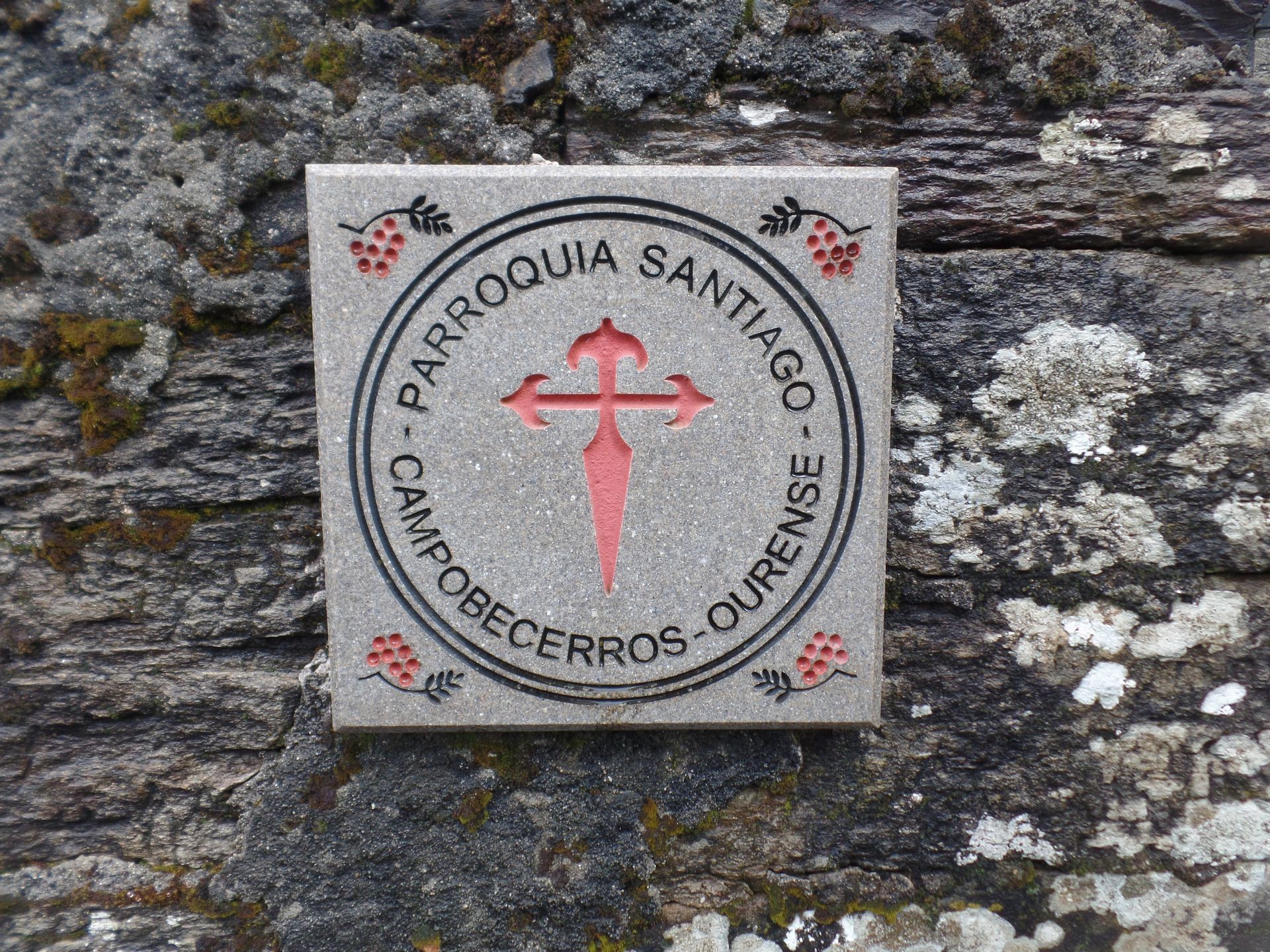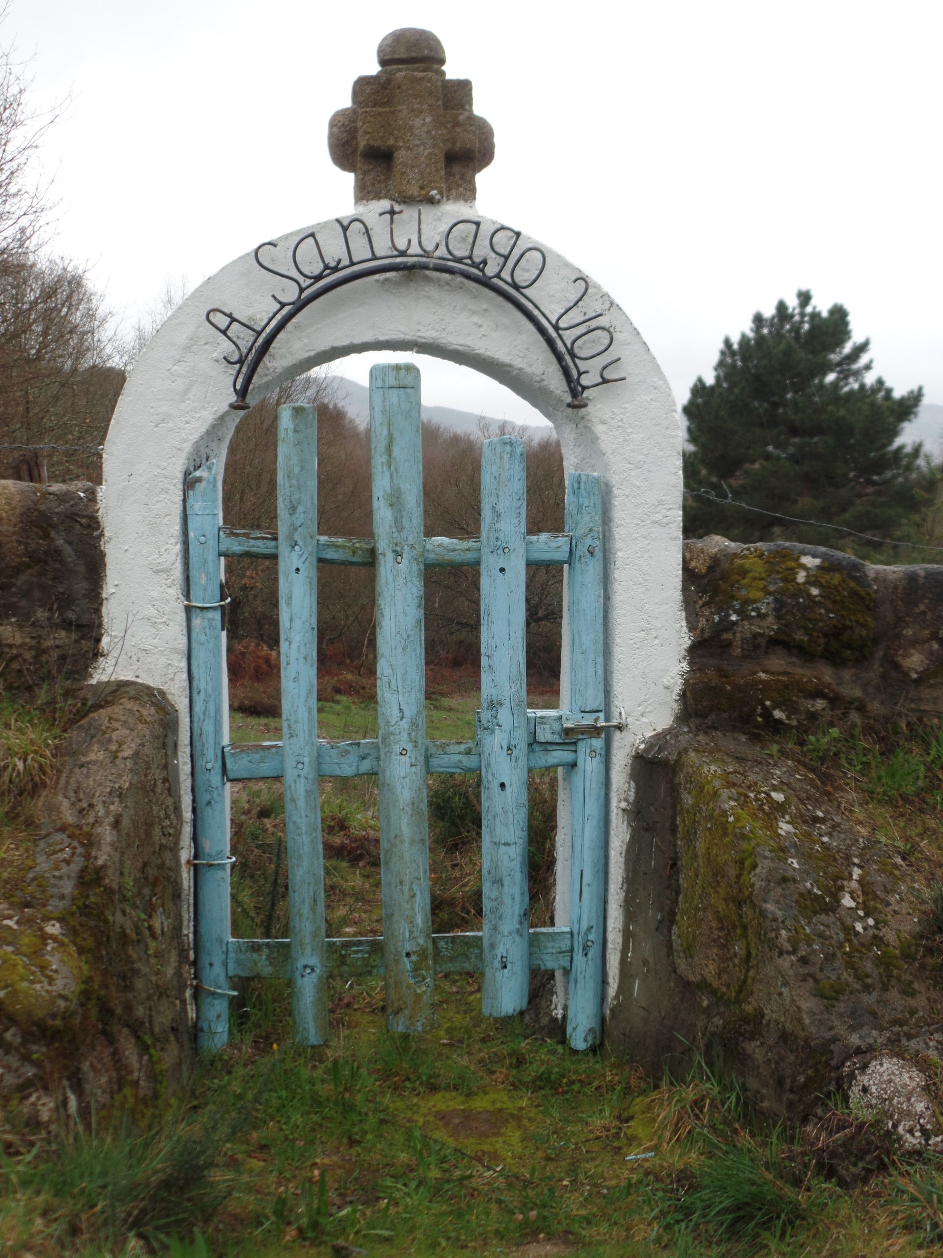 Der Wirt und der Taxifahrer diskutieren gerade, zu welchem Weg sie uns ab hier raten sollen. Die Straße ist auch auf den nächsten Kilometern sehr unübersichtlich, die Wald- und Feldwege, über die der Jakobsweg nun wieder verläuft, sind dagegen vom vielen Regen aufgeweicht. Wir haben uns aber schon für die Feldwege entschieden. Das heißt eigentlich: ich habe entschieden! Wir verabschieden uns, während Brian noch immer die Muschelinschriften studiert, und bereits nach wenigen Schritten ist das kleine Dorf hinter uns im Nebel verschwunden.