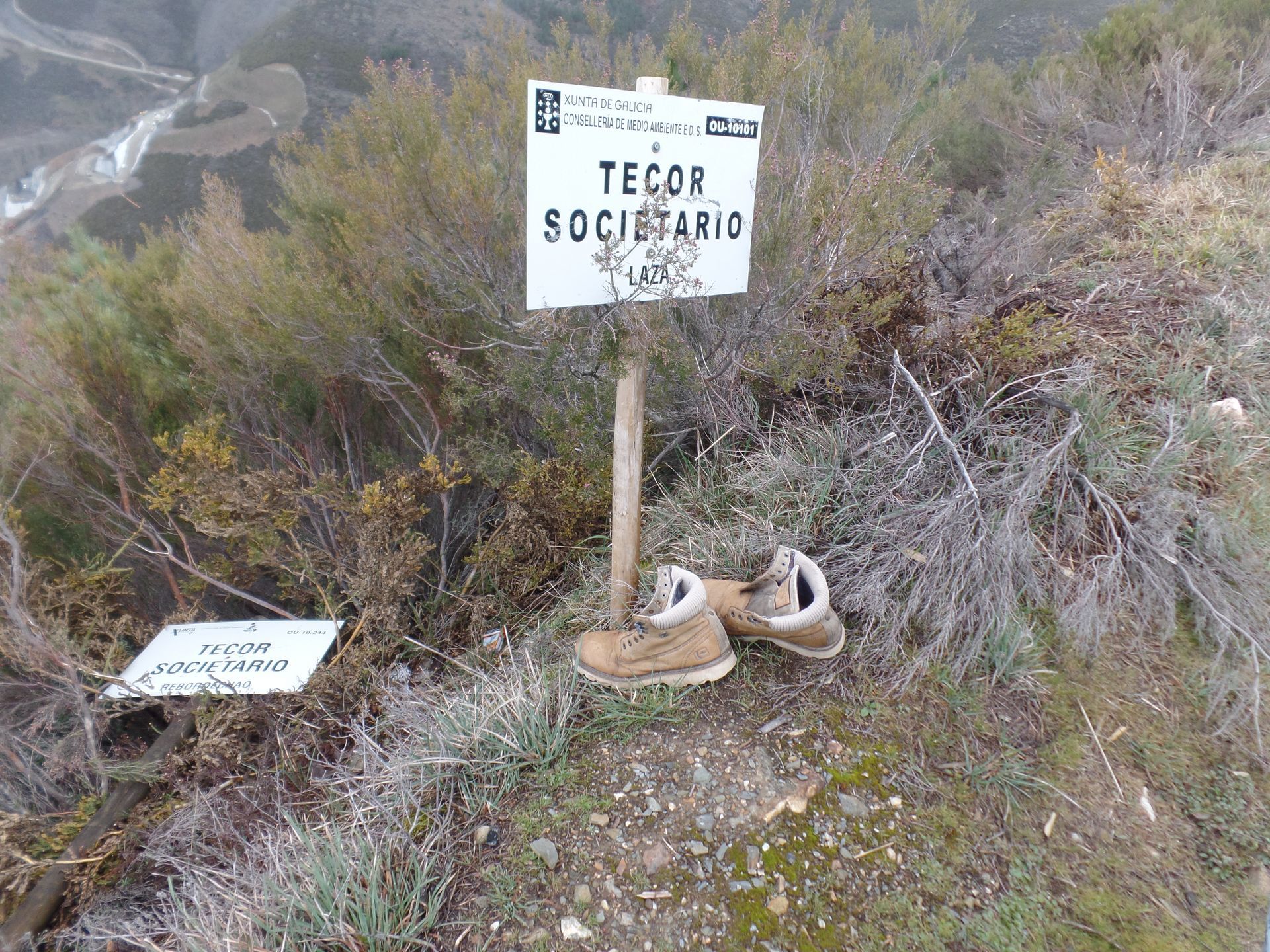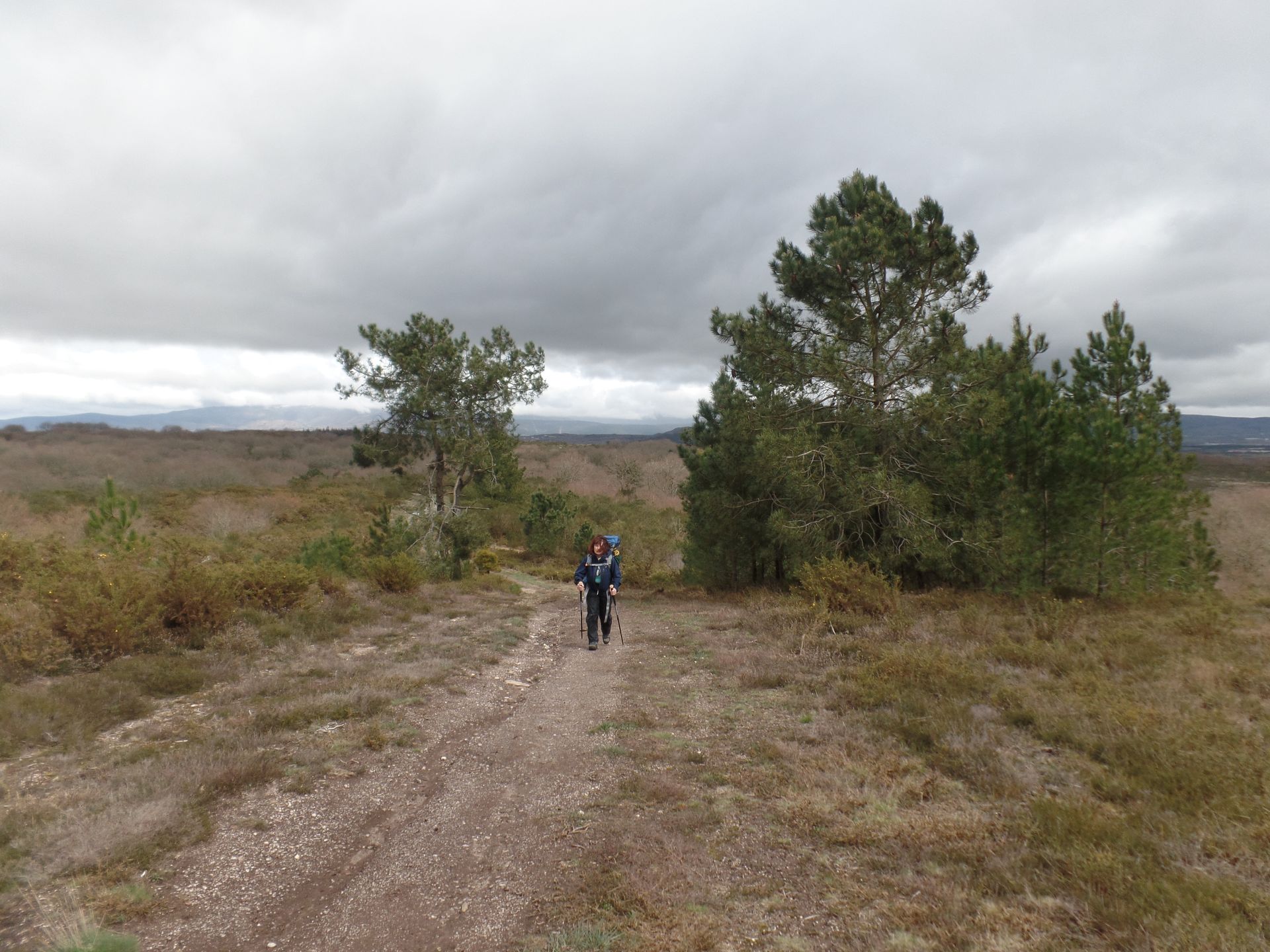 Als wir den Fuß des Pico Dueño erreichen hört der Nieselregen auf, der uns schon seit Stunden begleitet, und wir finden ein halbwegs trockenes Plätzchen für eine ausgedehnte Mittagsrast. Wir sind inzwischen ordentlich hungrig und essen alles auf, was wir dabeihaben. Lediglich die Müsliriegel heben wir uns auf. Man weiß nie, was der Tag noch bringen wird. Während unserer Pause ziehen unsere drei Landsleute an uns vorbei, aber seit dem Aufenthalt in der Herberge Alba y Soraya grüßen sie nur noch wortkarg.