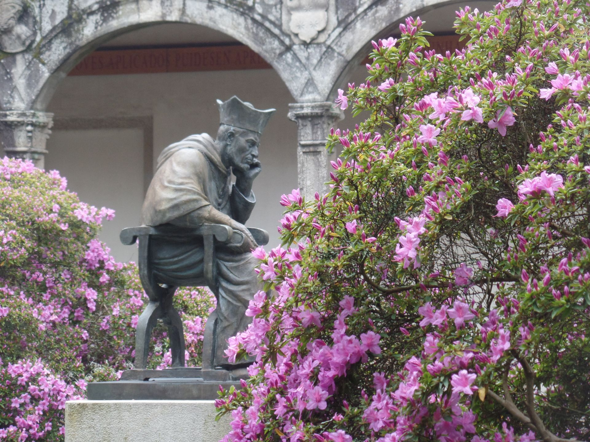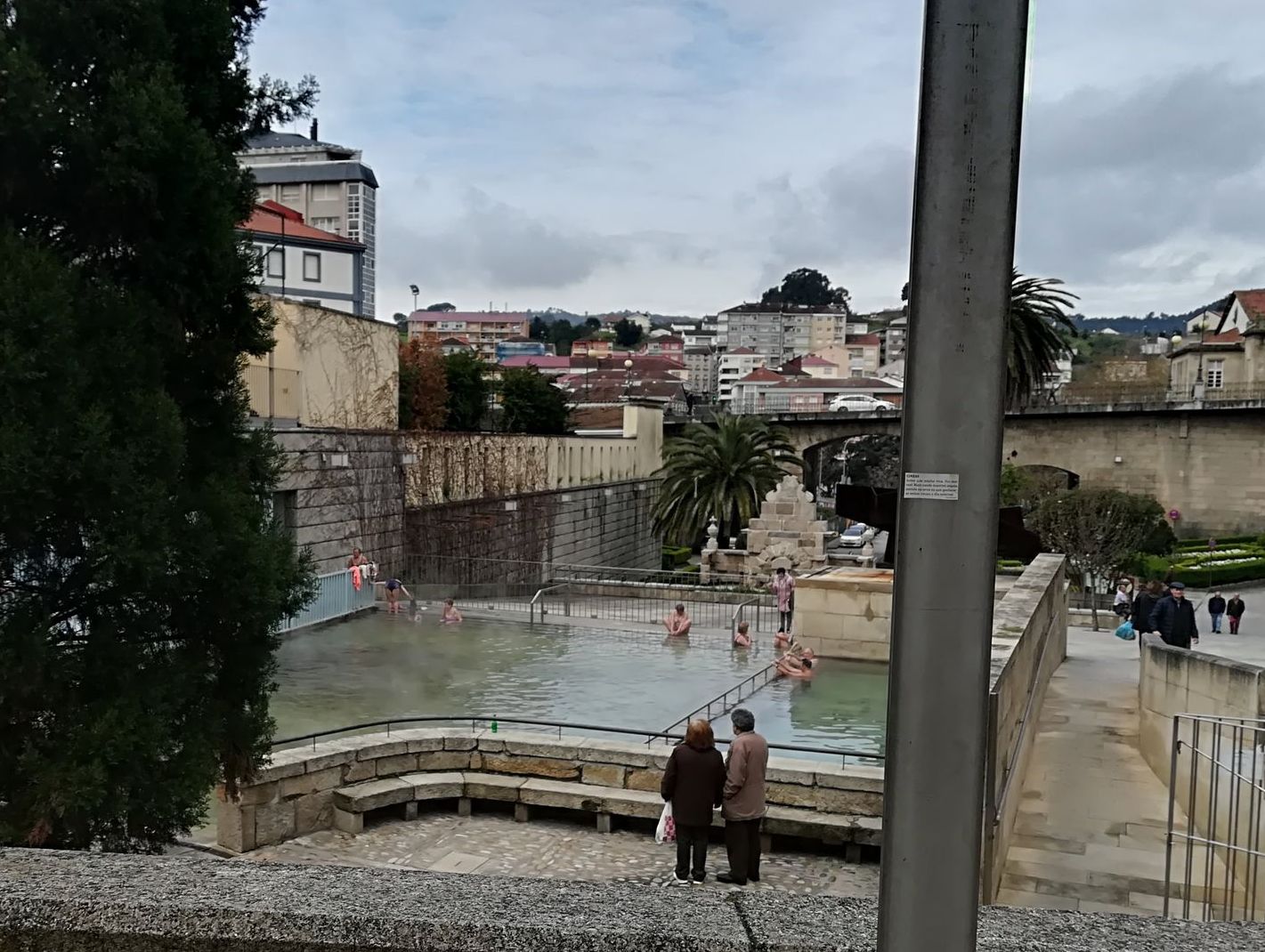 Während der zweieinhalbstündigen Busfahrt ändert sich das Landschaftsbild. Schneebedeckte Berge tauchen in der Ferne auf, die wir, nachdem wir die weite zentralspanische Ebene mit ihren riesigen Rinderweiden und Feldern hinter uns gelassen haben, bald erreichen und überqueren. Es ist sonnig und warm als wir unser Ziel erreichen. In der Herberge „Via de la Plata“ werden wir bereits erwartet. Ich habe dort für drei Personen in einem Vier-Bett-Zimmer reserviert und hoffe, dass kein vierter Pilger zu uns einquartiert wird. Die Herberge ist in einem sehr alten Gebäude untergebracht, das aber innen modernisiert ist. Florian kommt aus dem Staunen nicht mehr heraus, was man aus so einem alten Haus machen kann. Wir beziehen unser Zimmer und brechen sogleich zu einem ersten Rundgang durch das bei Spaniern immer noch beliebte alte Heilbad auf.