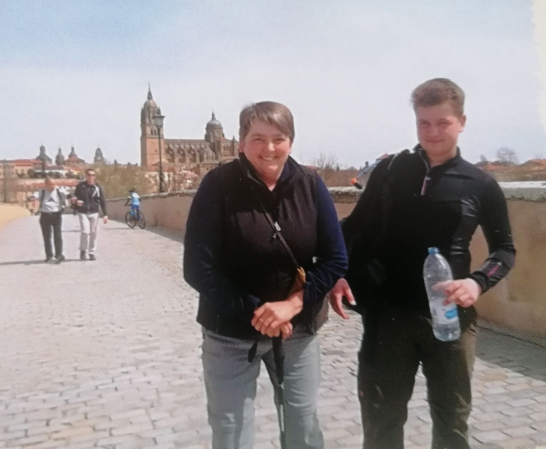 Am Flugplatz in Madrid haben wir eine gute Stunde Aufenthalt, bis unser Bus nach Salamanca abfährt. Ich nutze die Zeit, um Florian zu zeigen, wo er in fünf Tagen einchecken muss. Er ist zum ersten Mal allein unterwegs, aber das wird er schon schaffen. Im Bus steckt er sofort das Handy in die Ladebuchse und die Kopfhörer in die Ohren. Das unterscheidet eben die Jugend von uns beiden alten Damen. Roswitha, die genauso alt ist wie ich, ist mir in den paar Wochen der Vorbereitungen schon zur lieben Freundin geworden und ich freue mich auf die Wanderung mit ihr. Auch, dass Florian mich einmal zum Pilgern begleitet, bedeutet mir viel! Als wir den Großraum Madrid nach einiger Zeit hinter uns gelassen haben, packt Flo das Handy weg und betrachtet neugierig die Gegend. Ihm fallen die vielen zerfallenen Gebäude auf. Auch ganze Siedlungen gibt es, bei denen die Rohbauten fertiggestellt wurden, jetzt aber dem Zerfall überlassen werden. Die Landflucht ist groß in Spanien.