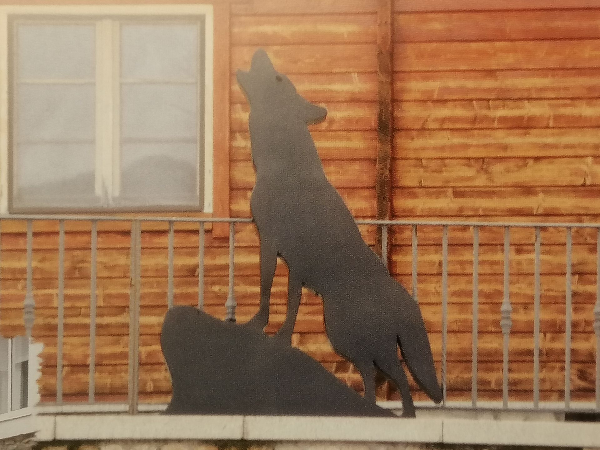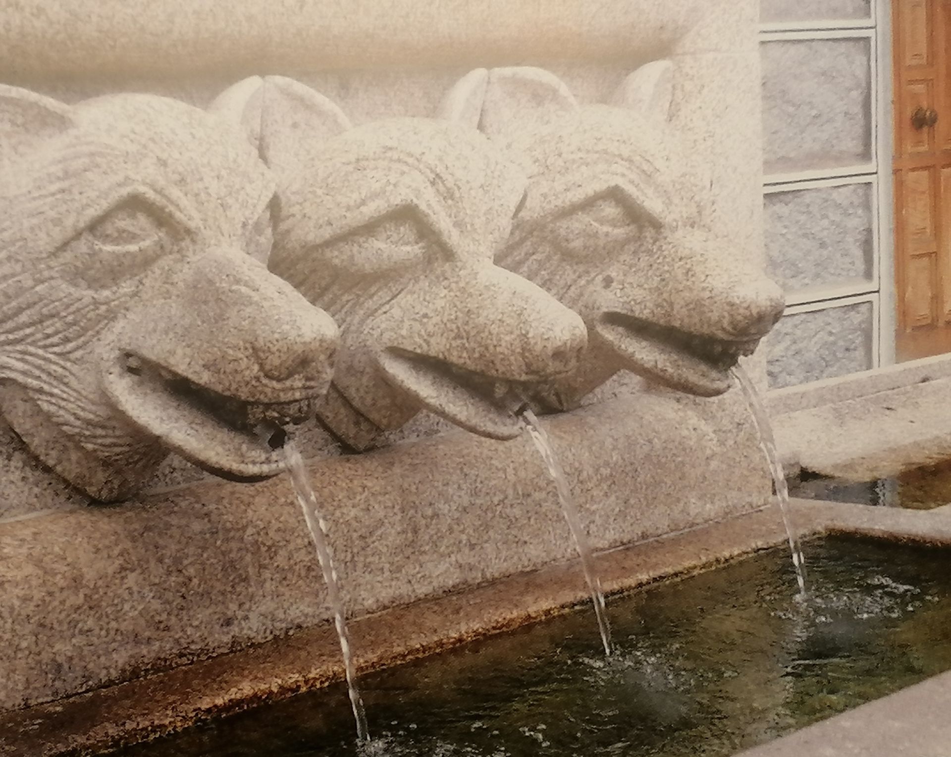 Im Wald, kurz bevor wir Lubián erreichen, sichtet Roswitha inmitten einer Herde halb verhungerter Rinder, ein Tier mit grauem Fell. Ich verstehe natürlich sofort, was sie glaubt, gesehen zu haben und mache mich lustig über den Wolf. Doch in Lubián angekommen, kommen mir, angesichts der vielen Skulpturen im Dorf, erste Zweifel. An jeder Ecke stehen steinerne Wölfe, jeden Gartenzaun schmückt eine Wolfs-Silhouette und am Dorfbrunnen speien gleich drei Wölfe Wasser in den Brunnentrog. Auch die Wirtin unserer Pension verweist auf die Herkunft des Namens dieses Dorfes: Lubián kommt von Lobo oder Lupus – der Wolf!